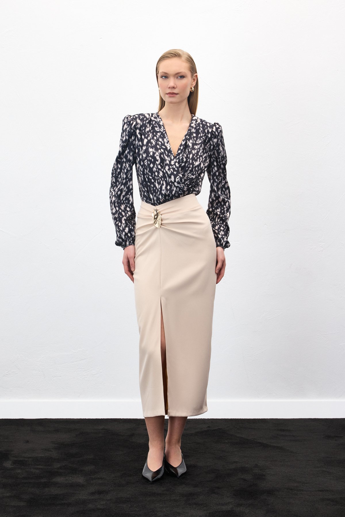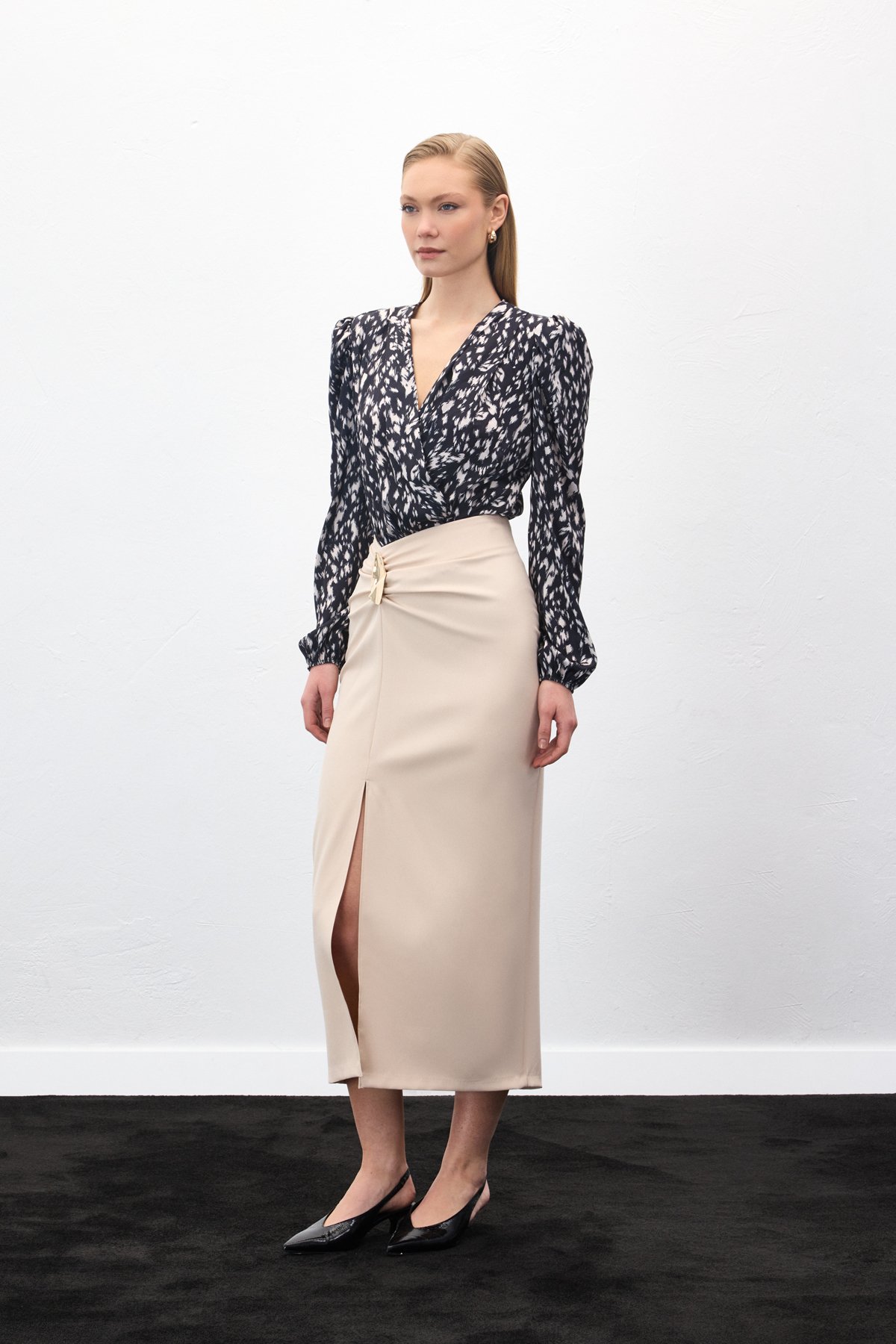 • 36 Beden : Boy : 95 - Bel : 35 - Basen : 49,7 - Yırtmaç Boyu : 48,5