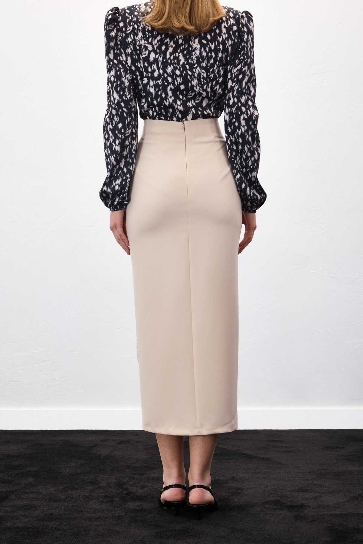 • 38 Beden : Boy : 95,5 - Bel : 37 - Basen : 51,7 - Yırtmaç Boyu : 48,5