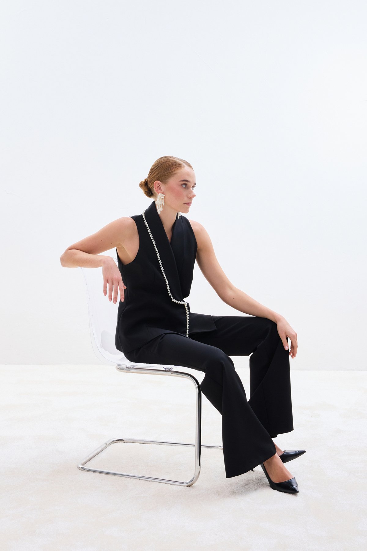 İnci Detaylı Yelek - Siyah