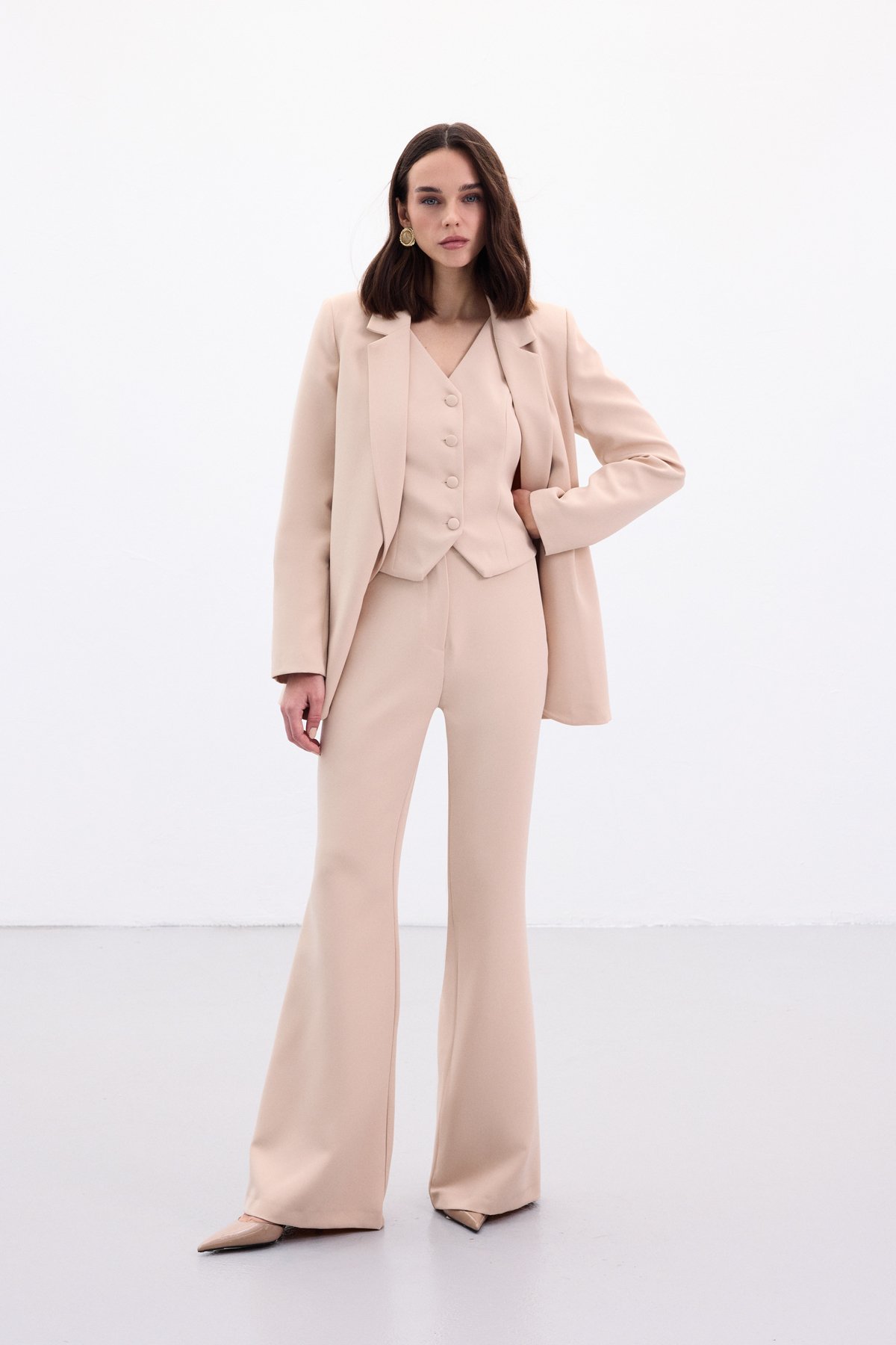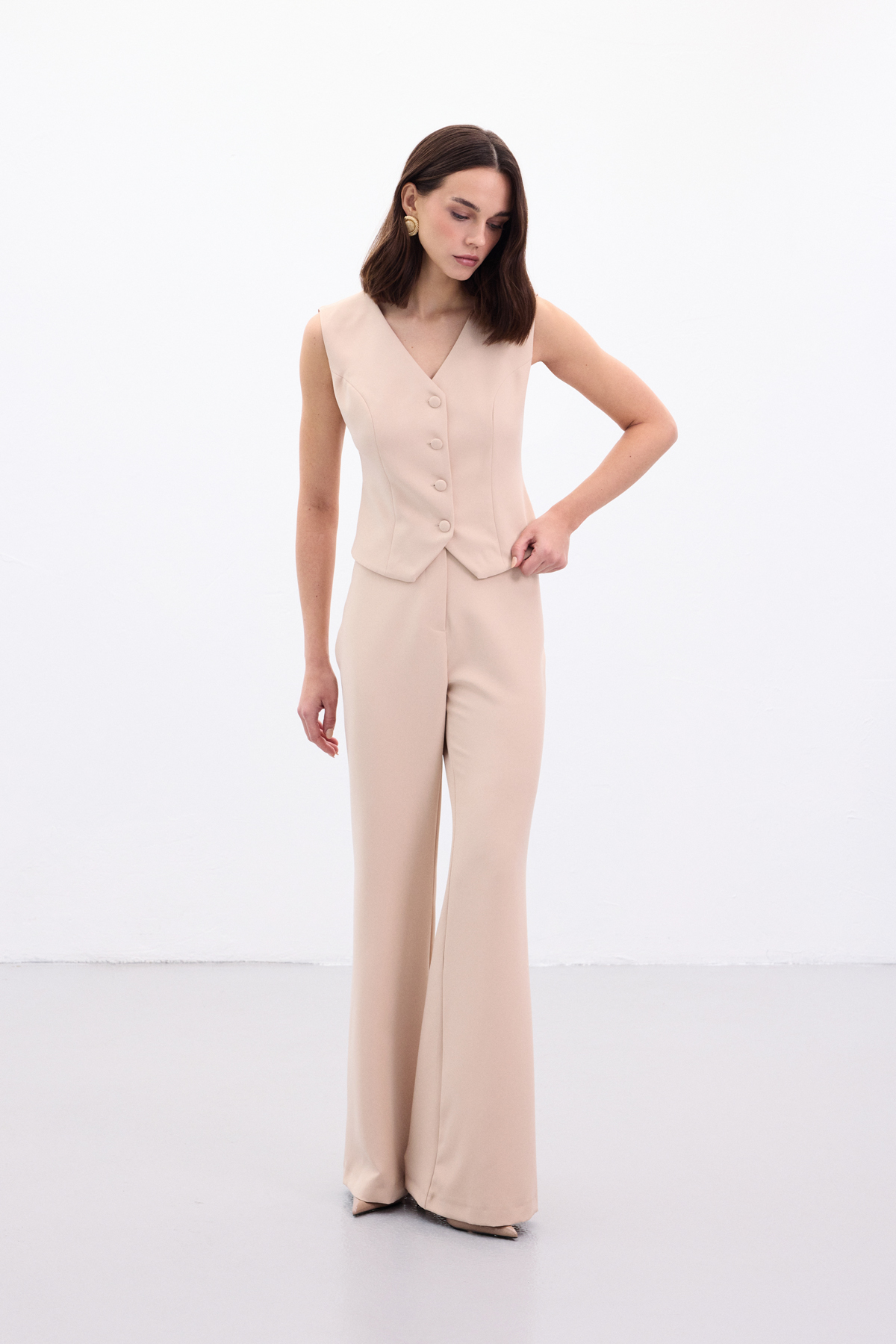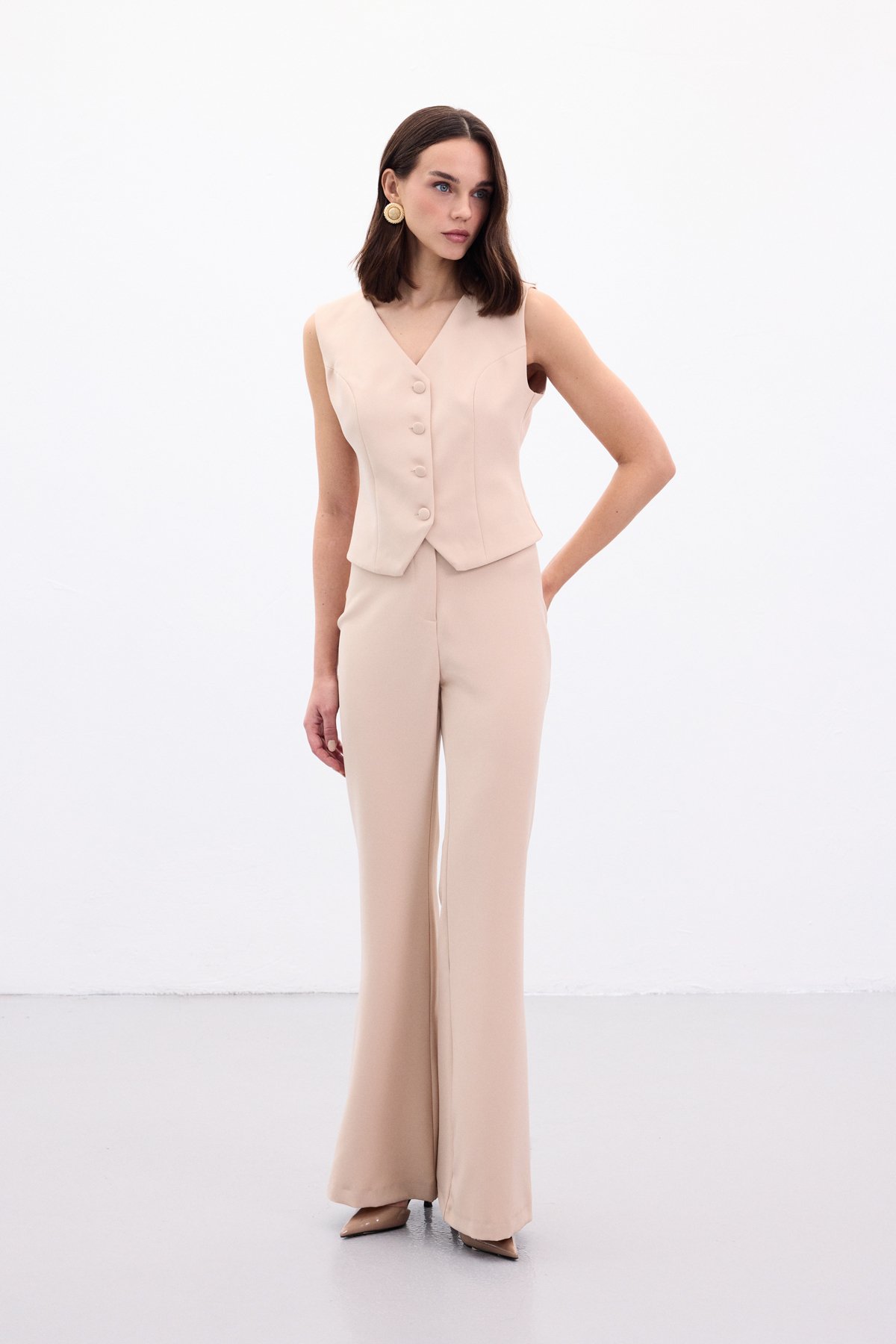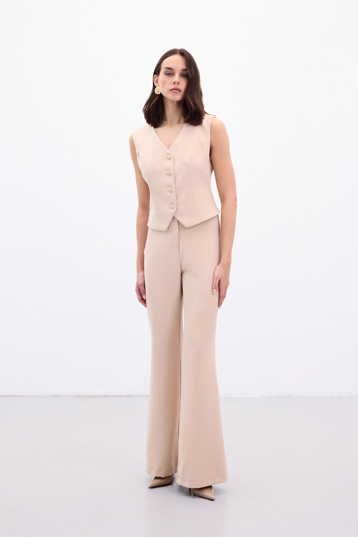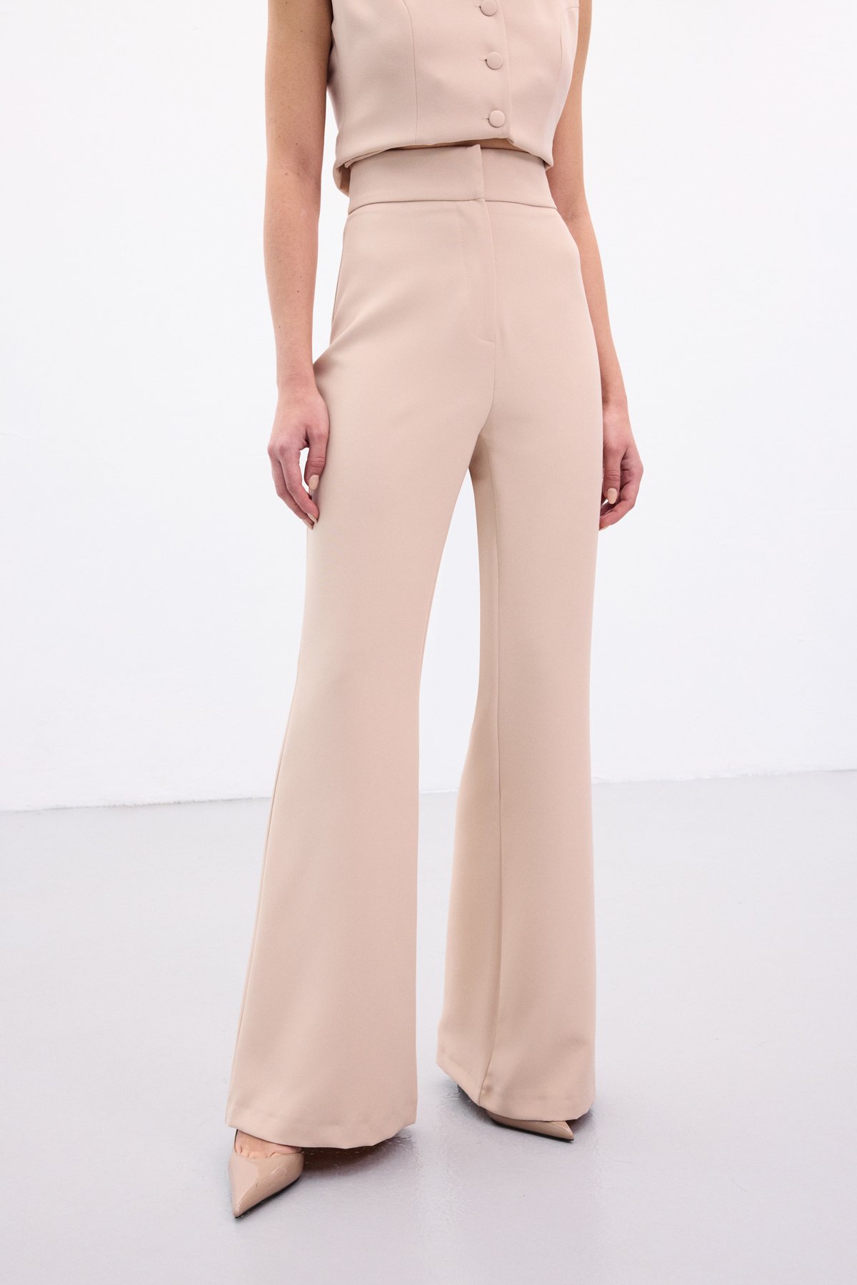 İspanyol Paça Pantolon - Bej