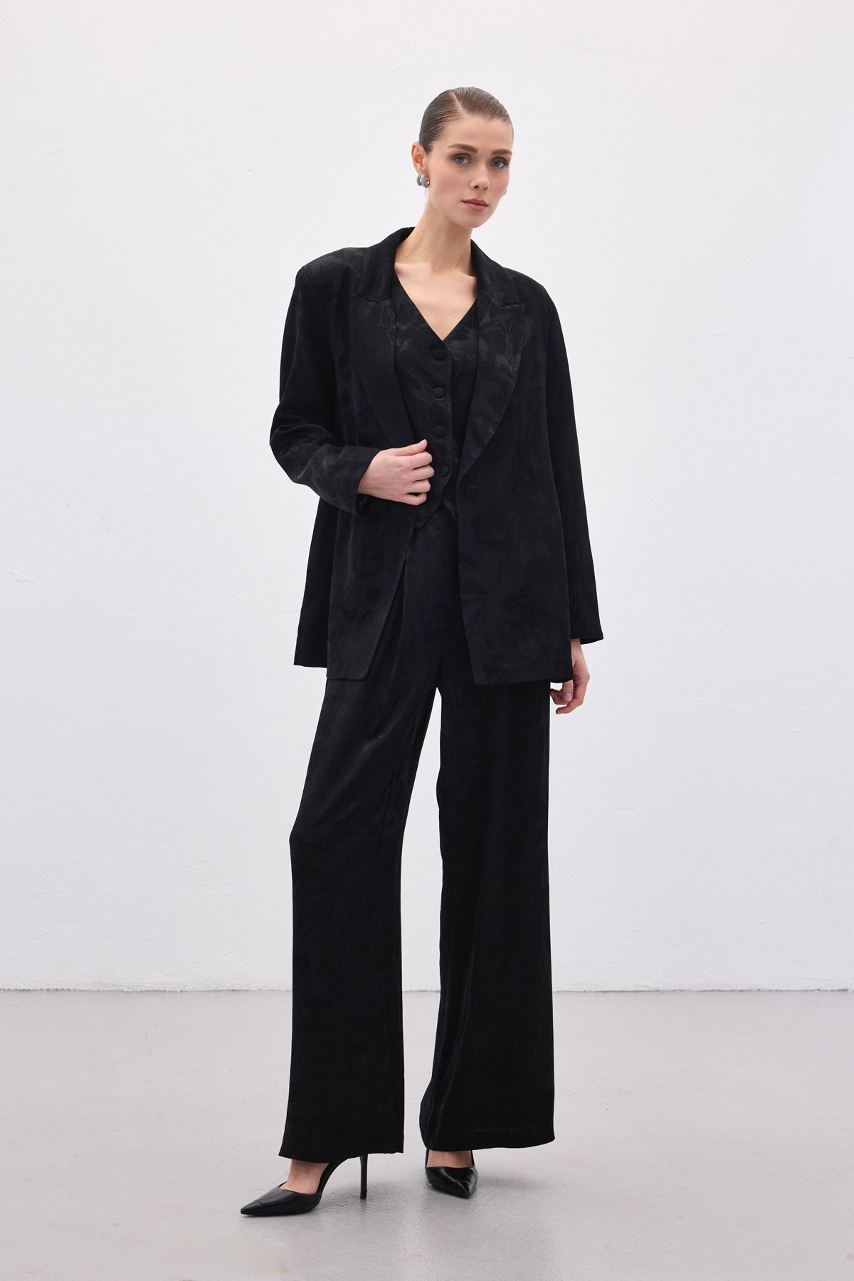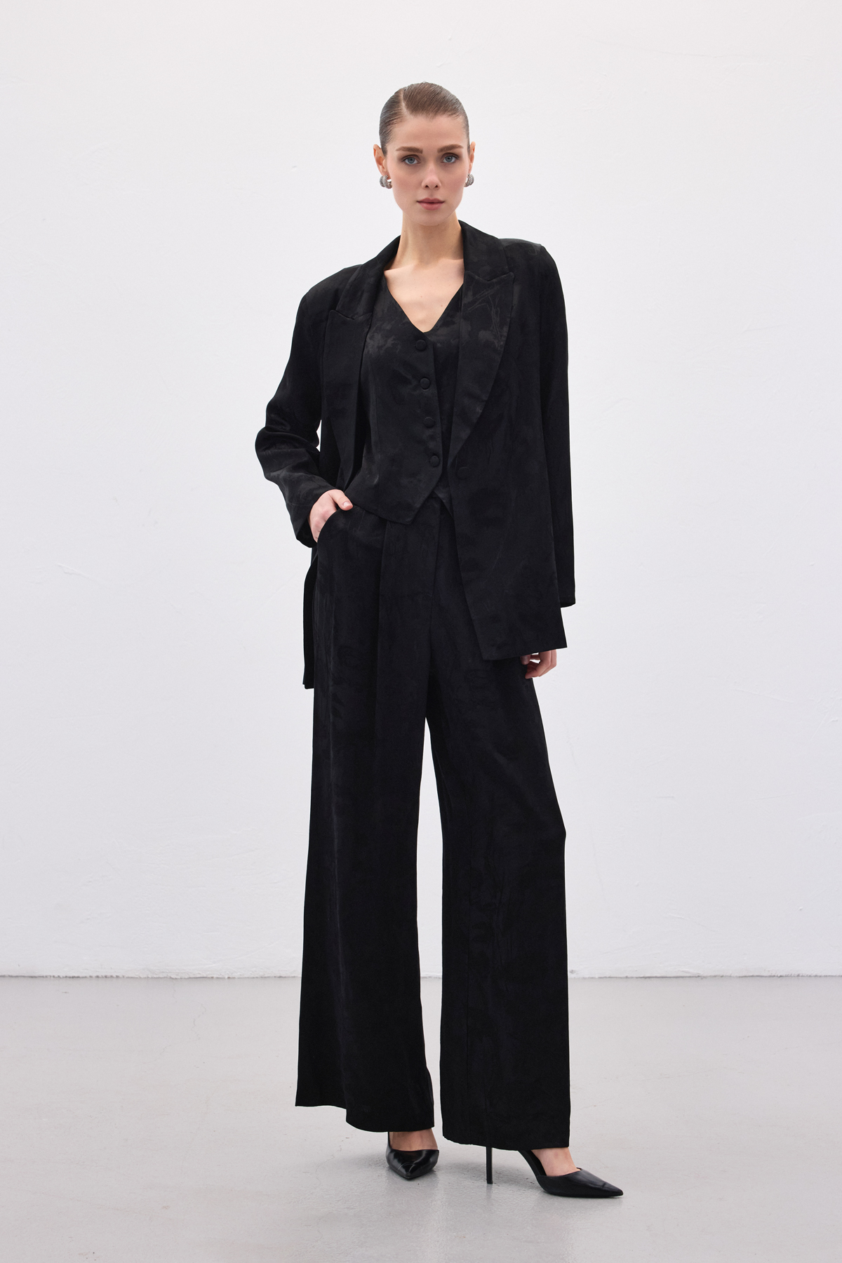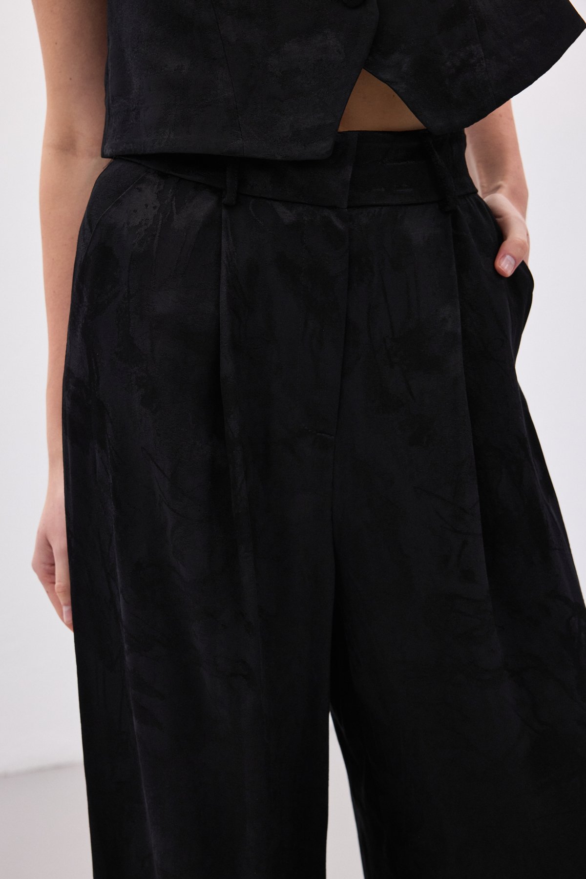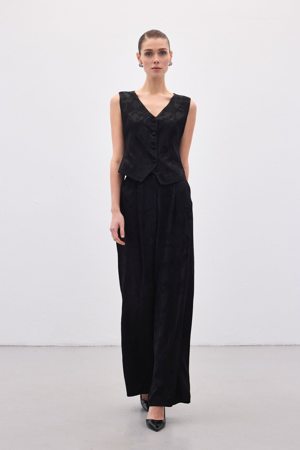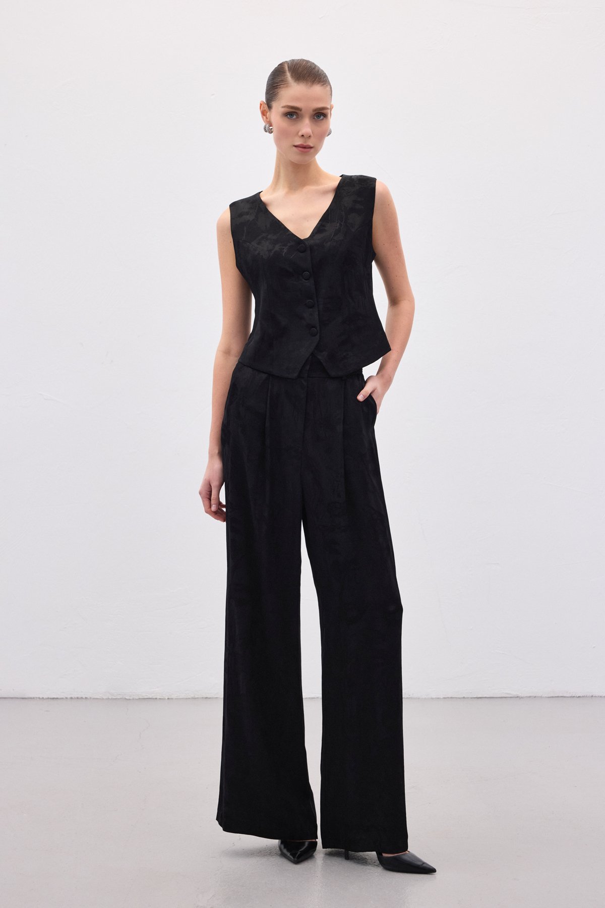 Jakarlı Bol Pantolon - Siyah
