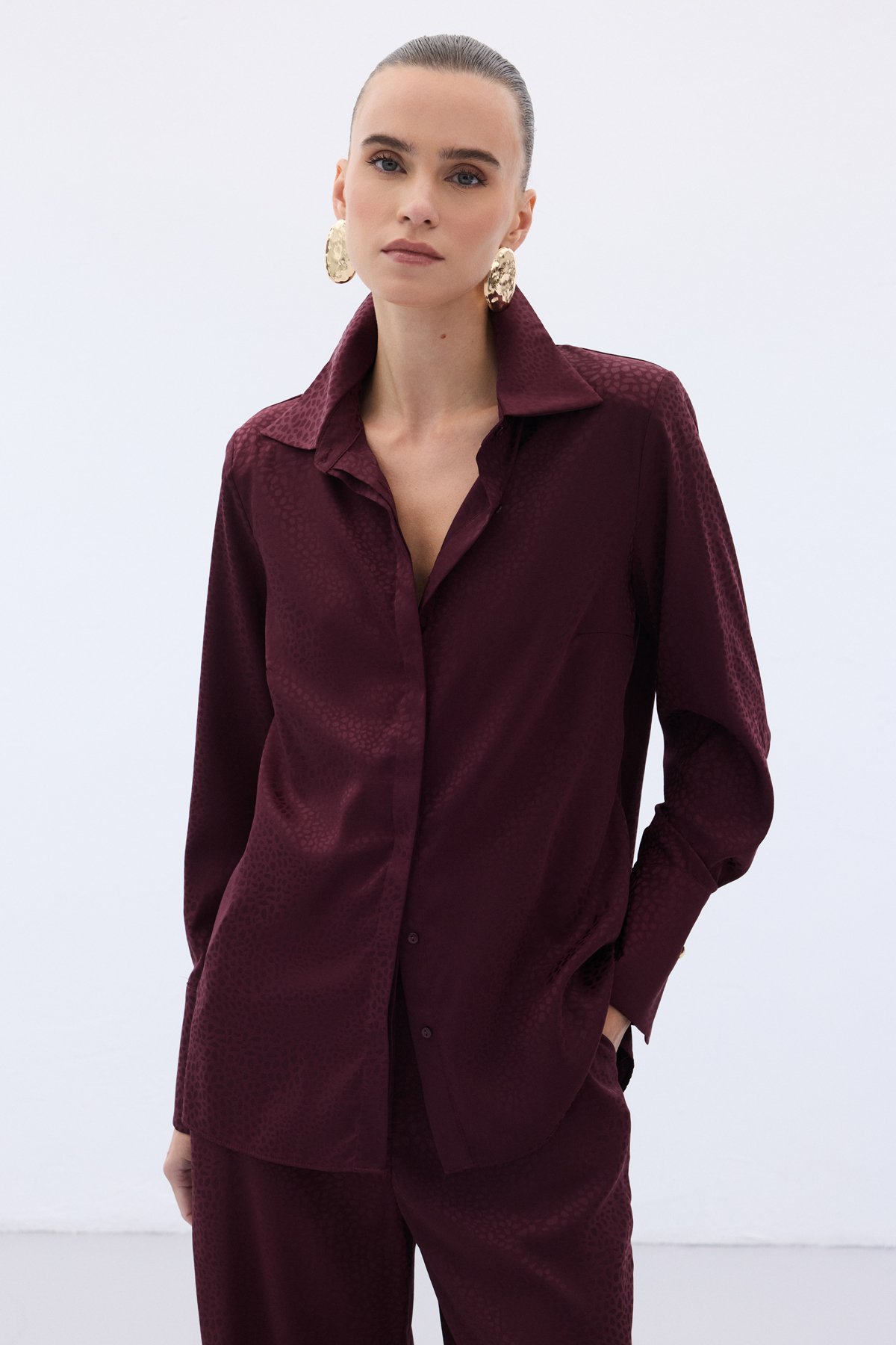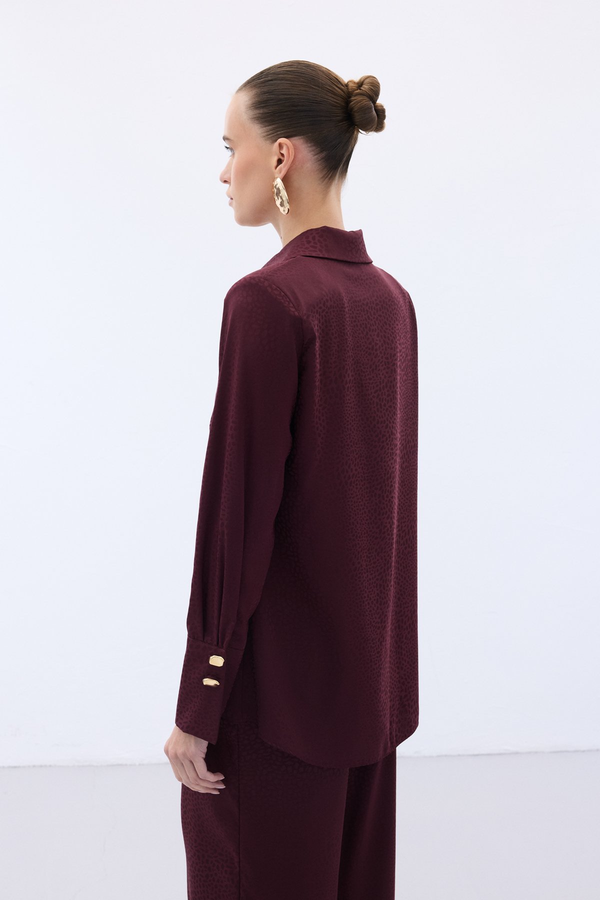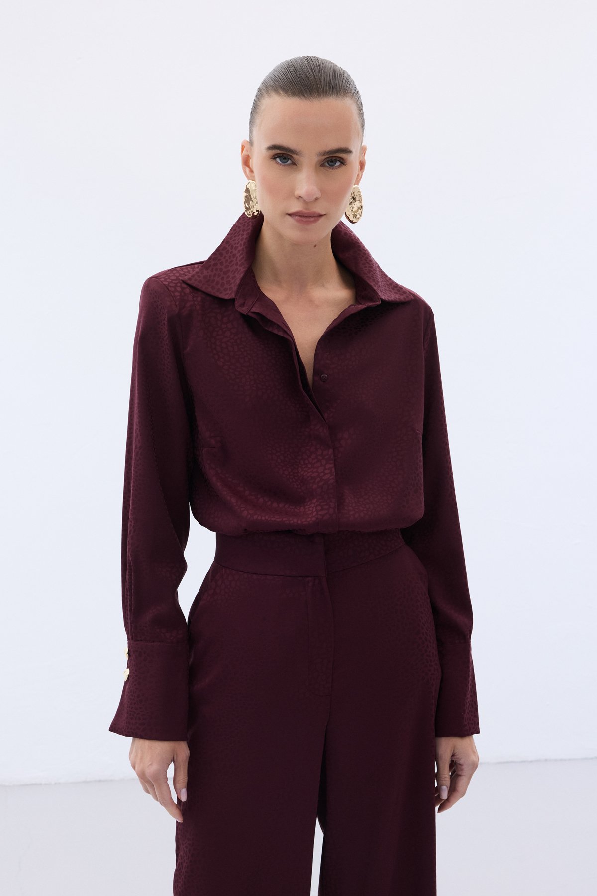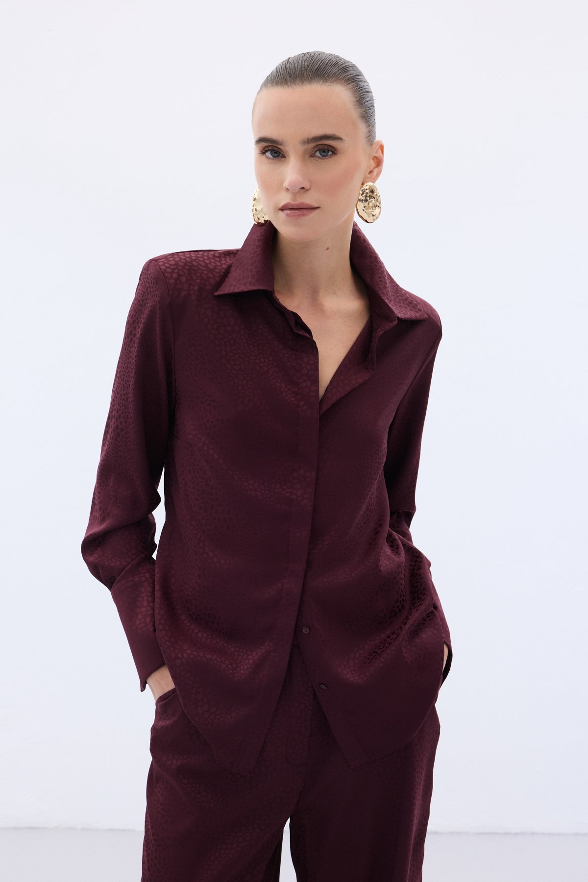 Jakarlı Düz Gömlek - Bordo
