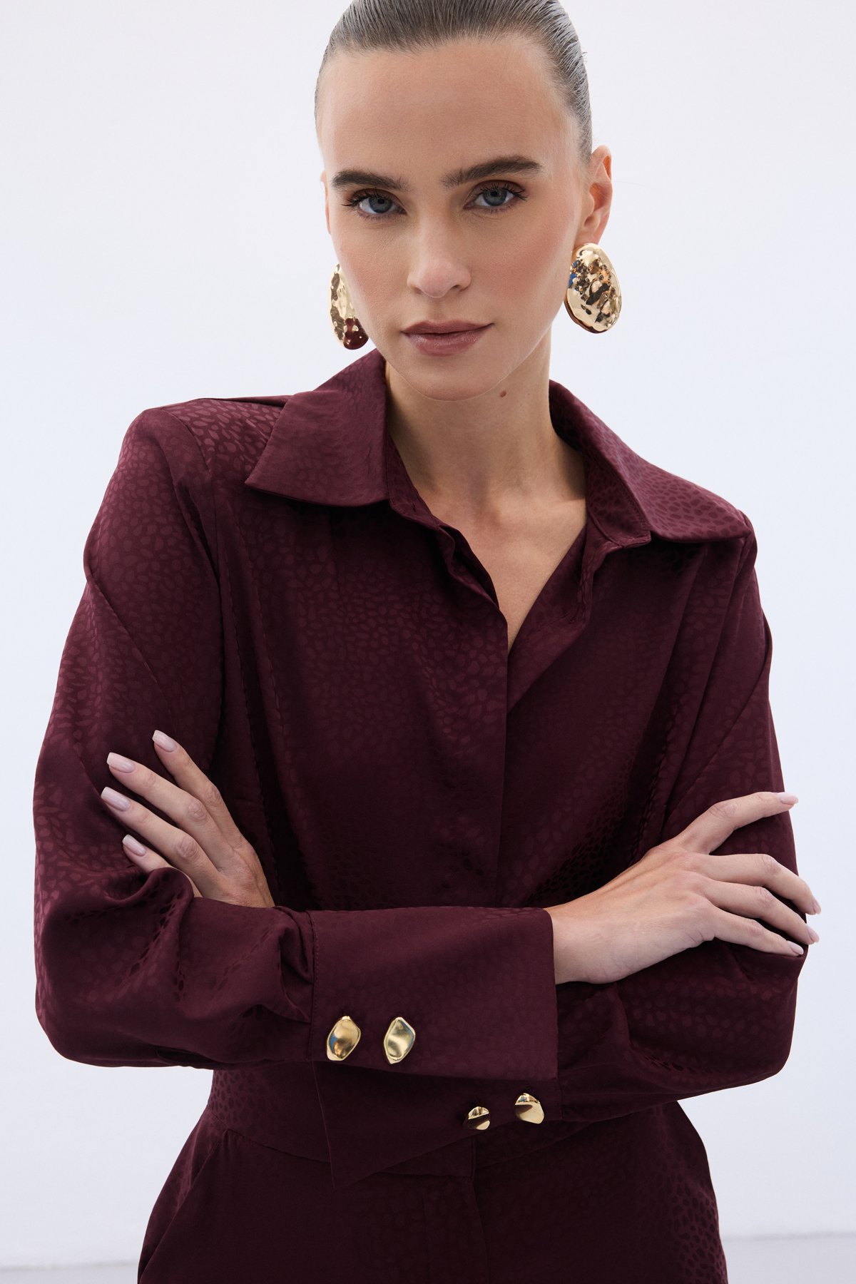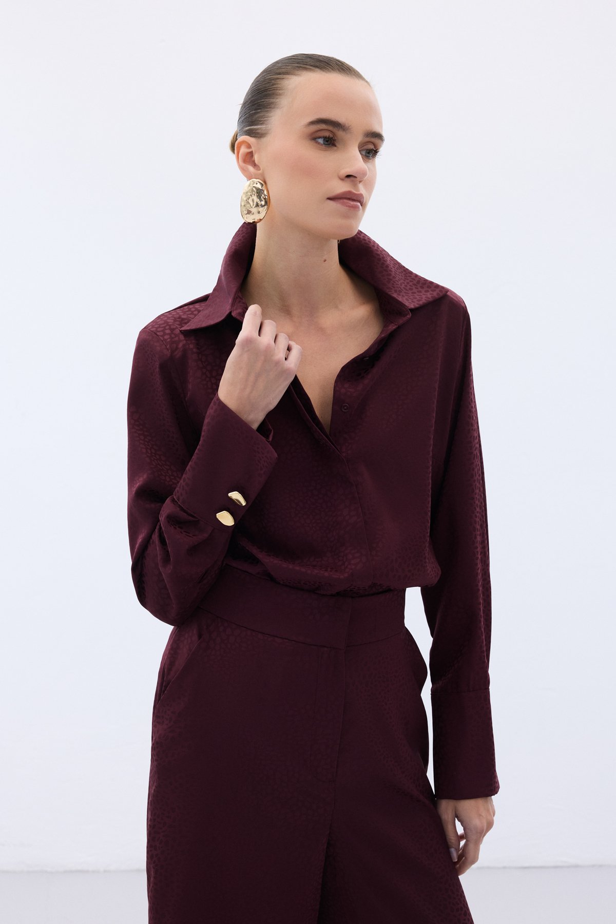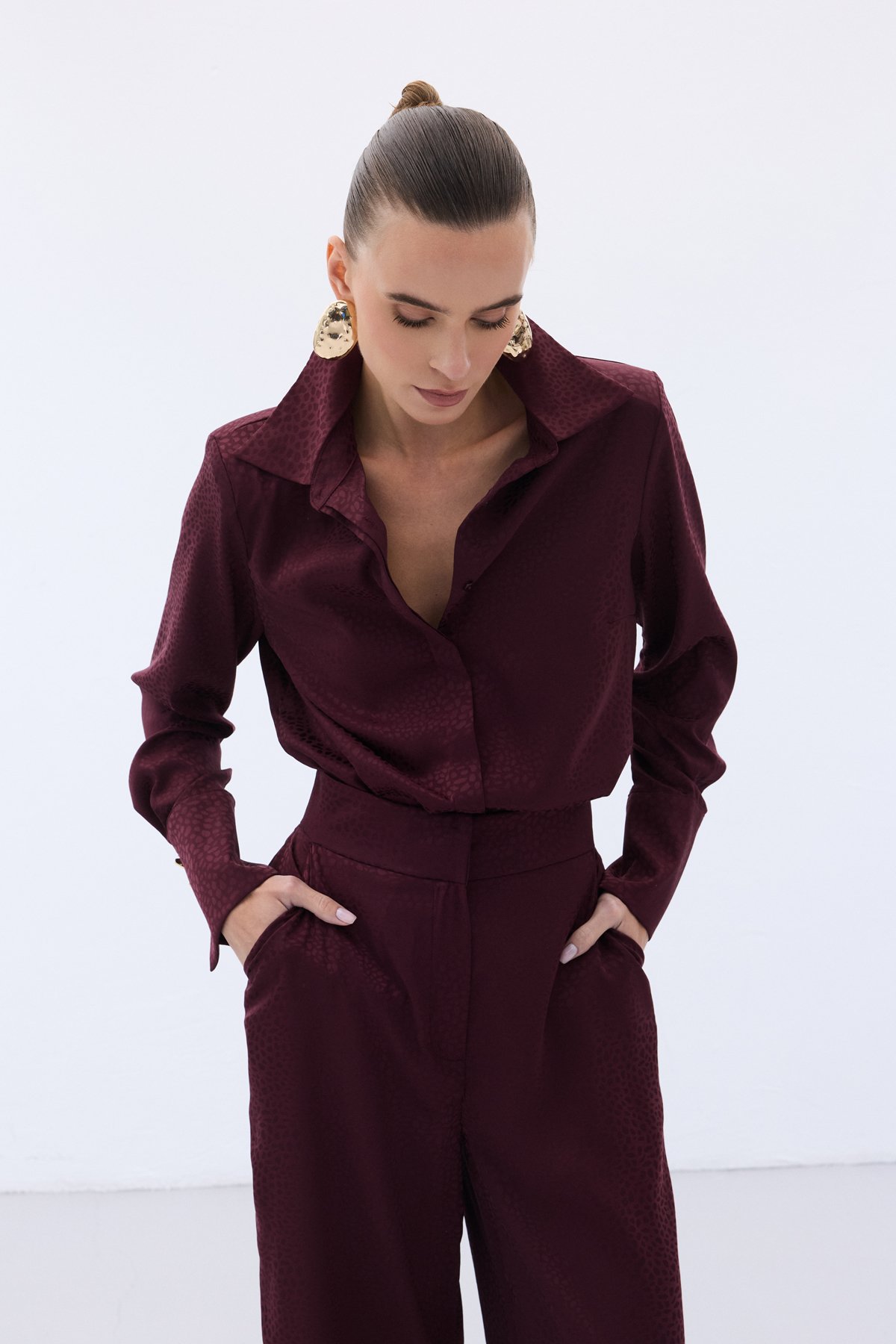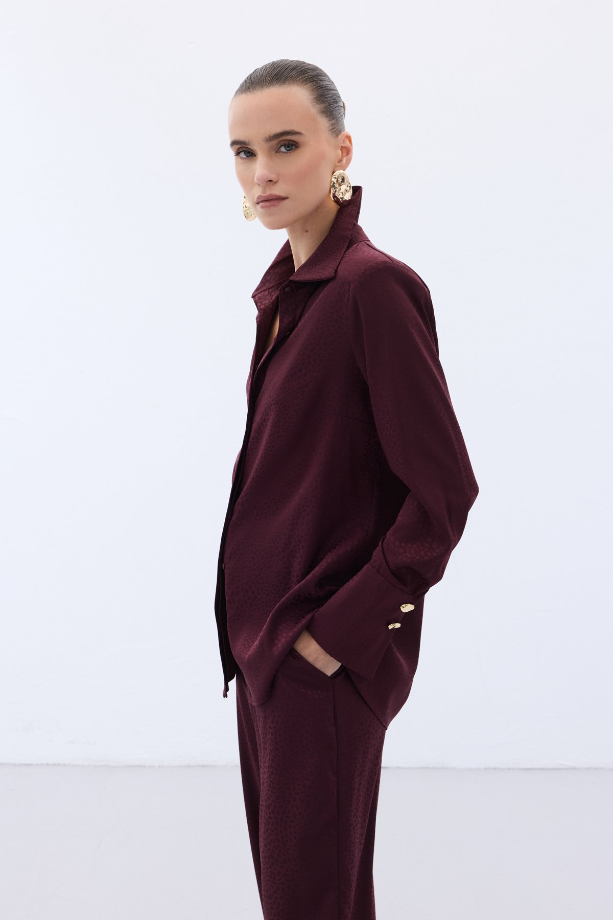 Jakarlı Düz Gömlek - Bordo