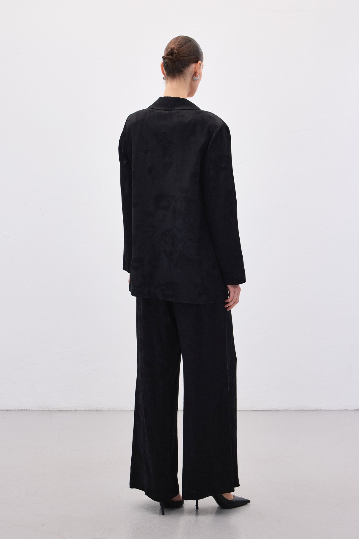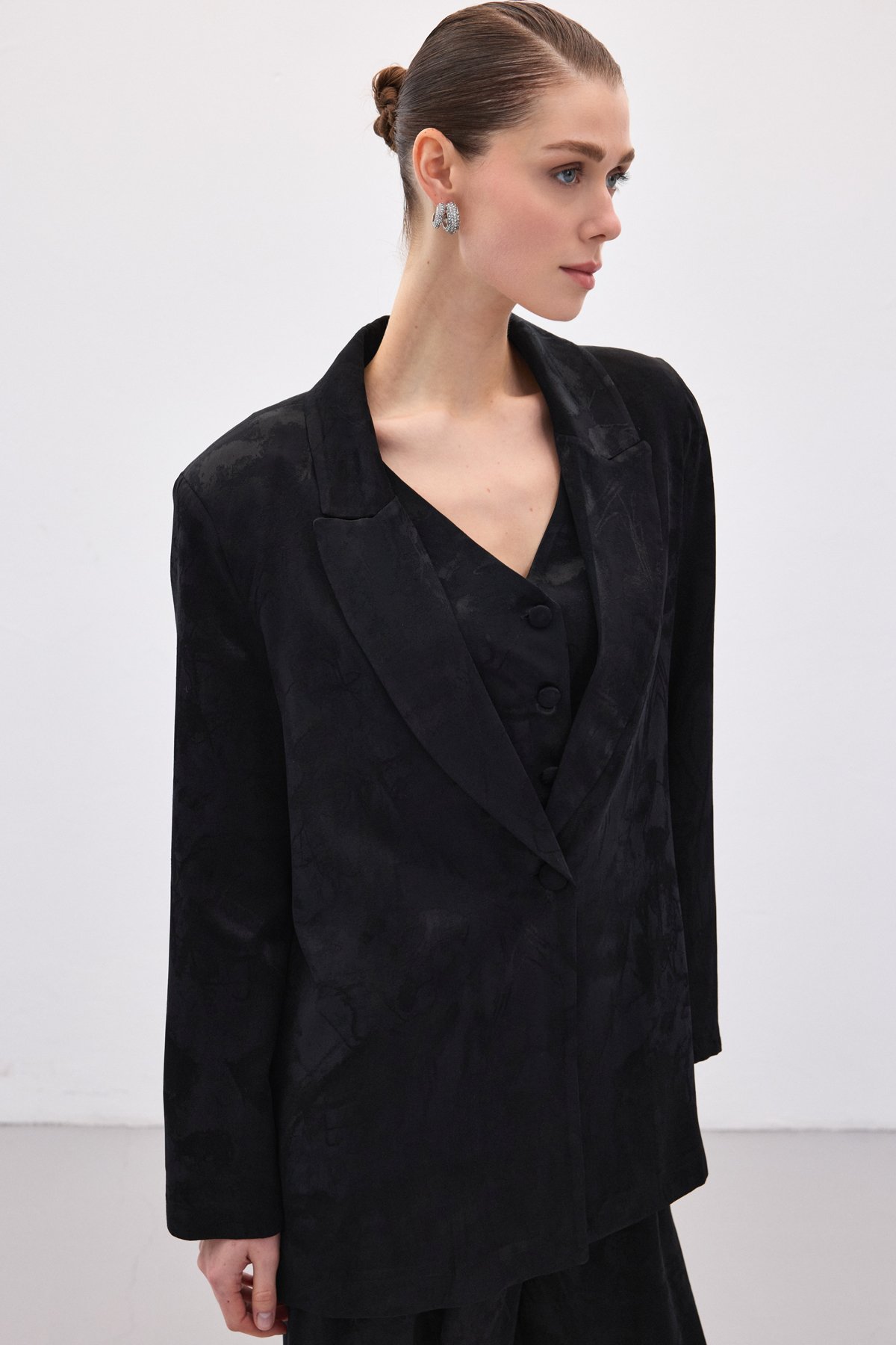 Jakarlı Uzun Ceket - Siyah