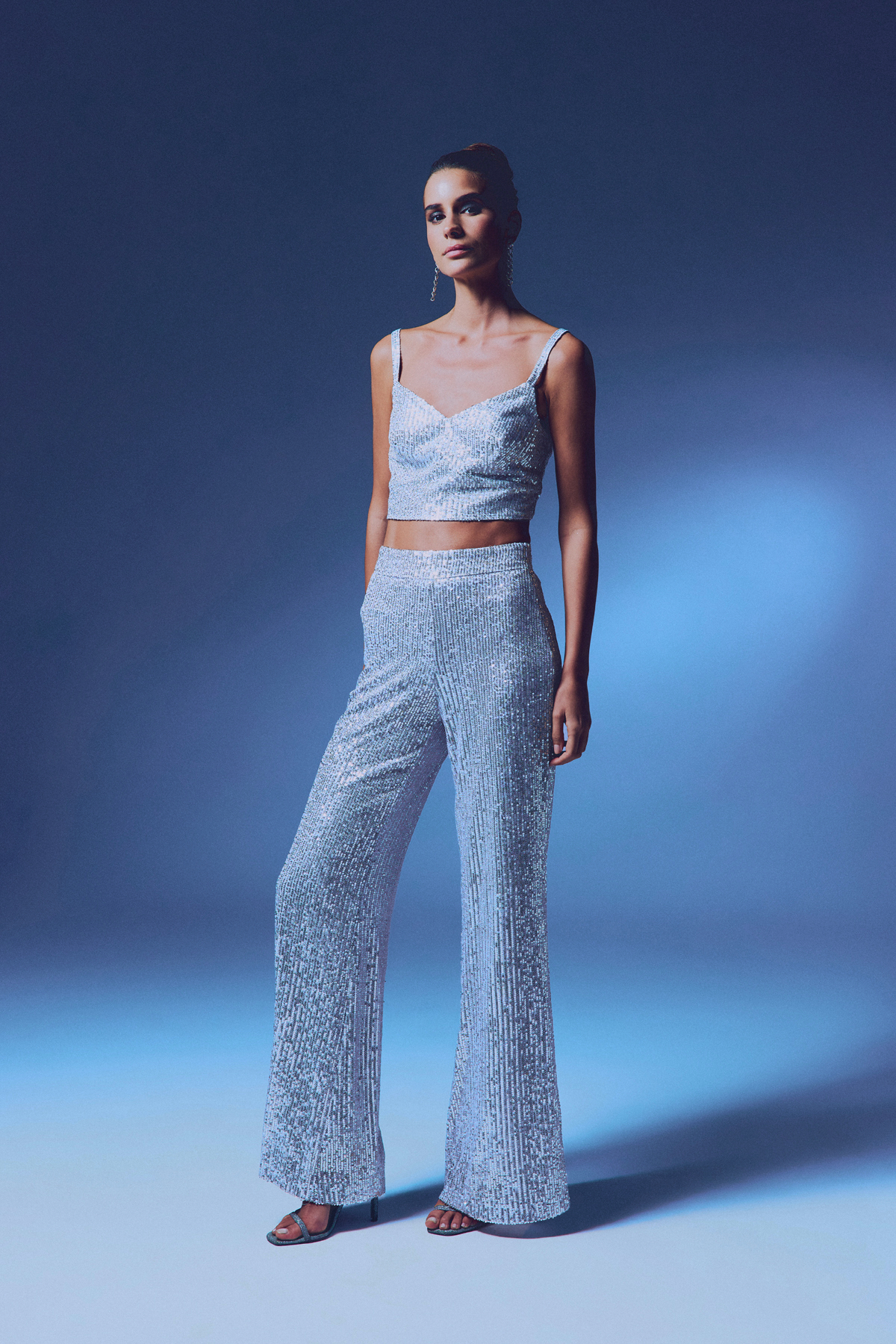 Kalın Askılı Payet Crop - Gri