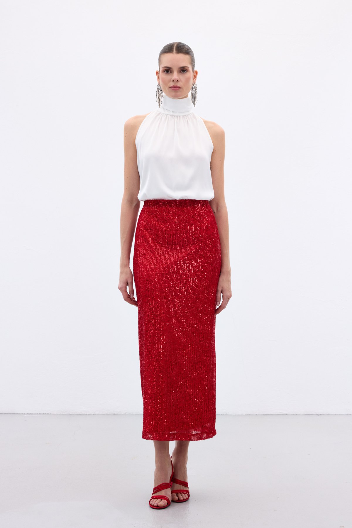 Karolin Midi Etek - Kırmızı
