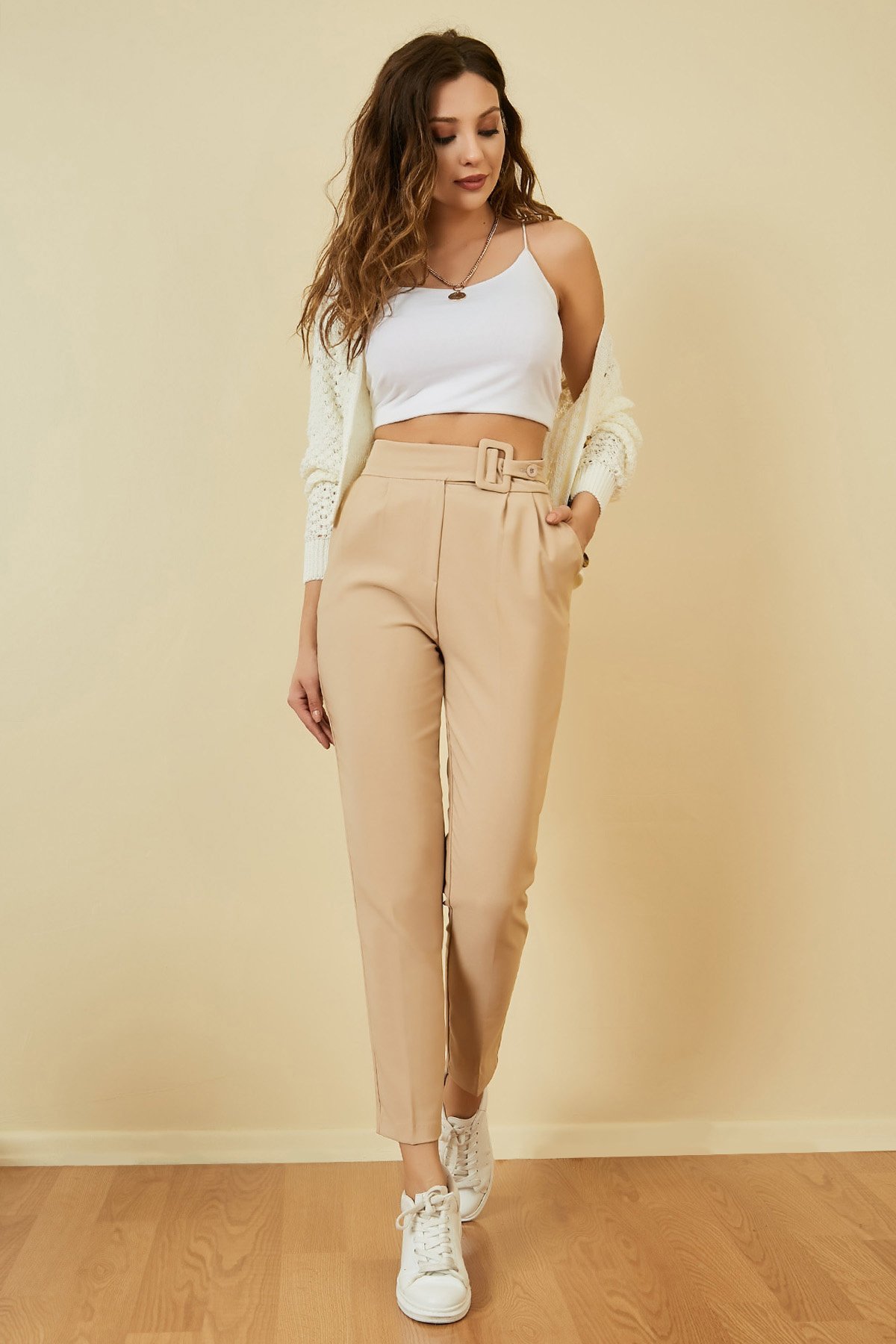 Düğme iliklemeli, fermuar kapama, çift cepli, bitişik kemer detaylı, tam kalıp pantolon.%80 Pamuk %20 PolyesterBoy Uzunluğu: 97 cmModelin Üzerindeki Ürün 36/S Bedendir.Modelin Ölçüleri:Boy:1,74, Göğüs:89, Bel:59, Kalça:93