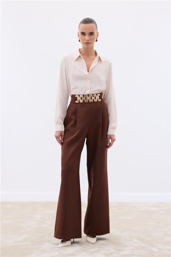 Kemerli Salaş Pantolon - Kahve