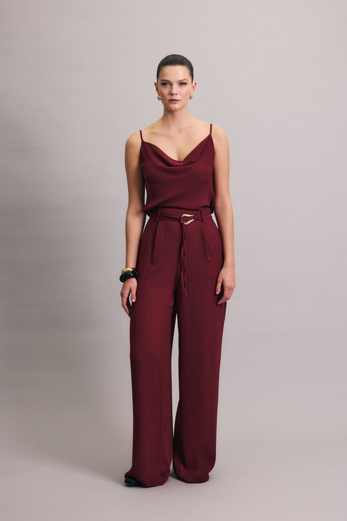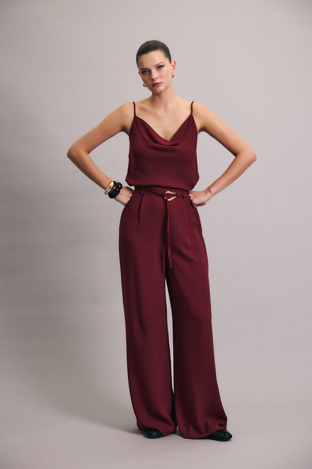 Kemerli Salaş Pantolon - Mürdüm