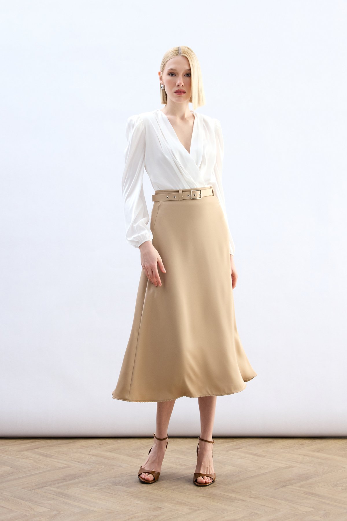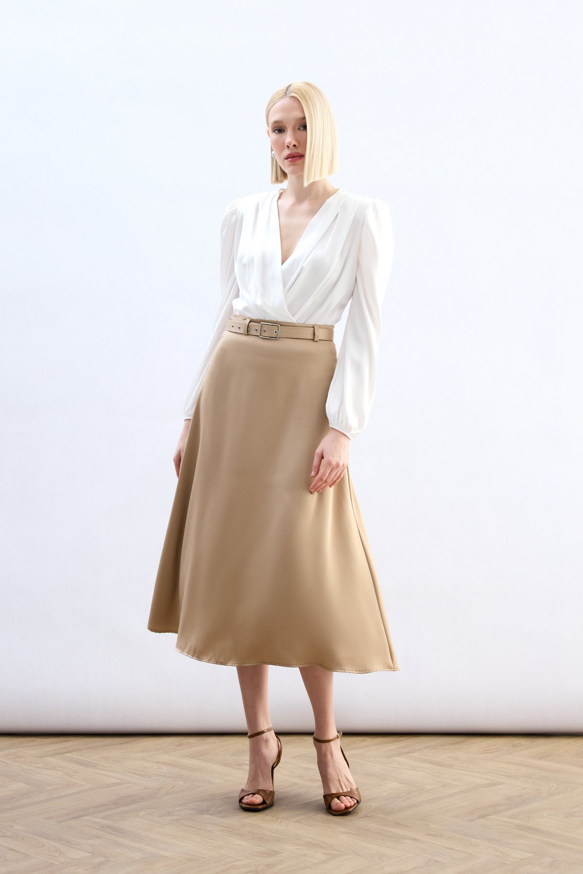 Kemerli Saten Etek - Camel