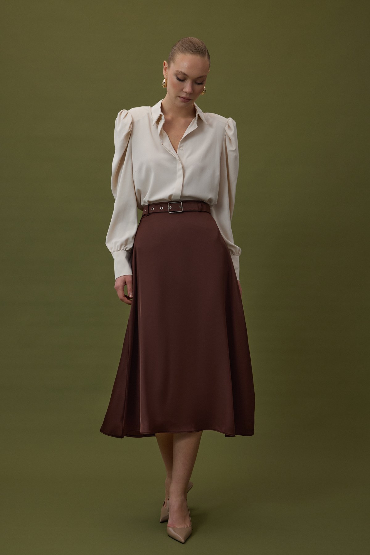 Kemerli Saten Etek - Kahve