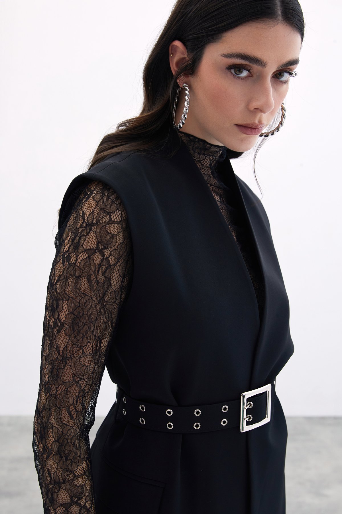 Kemerli Uzun Yelek - Siyah