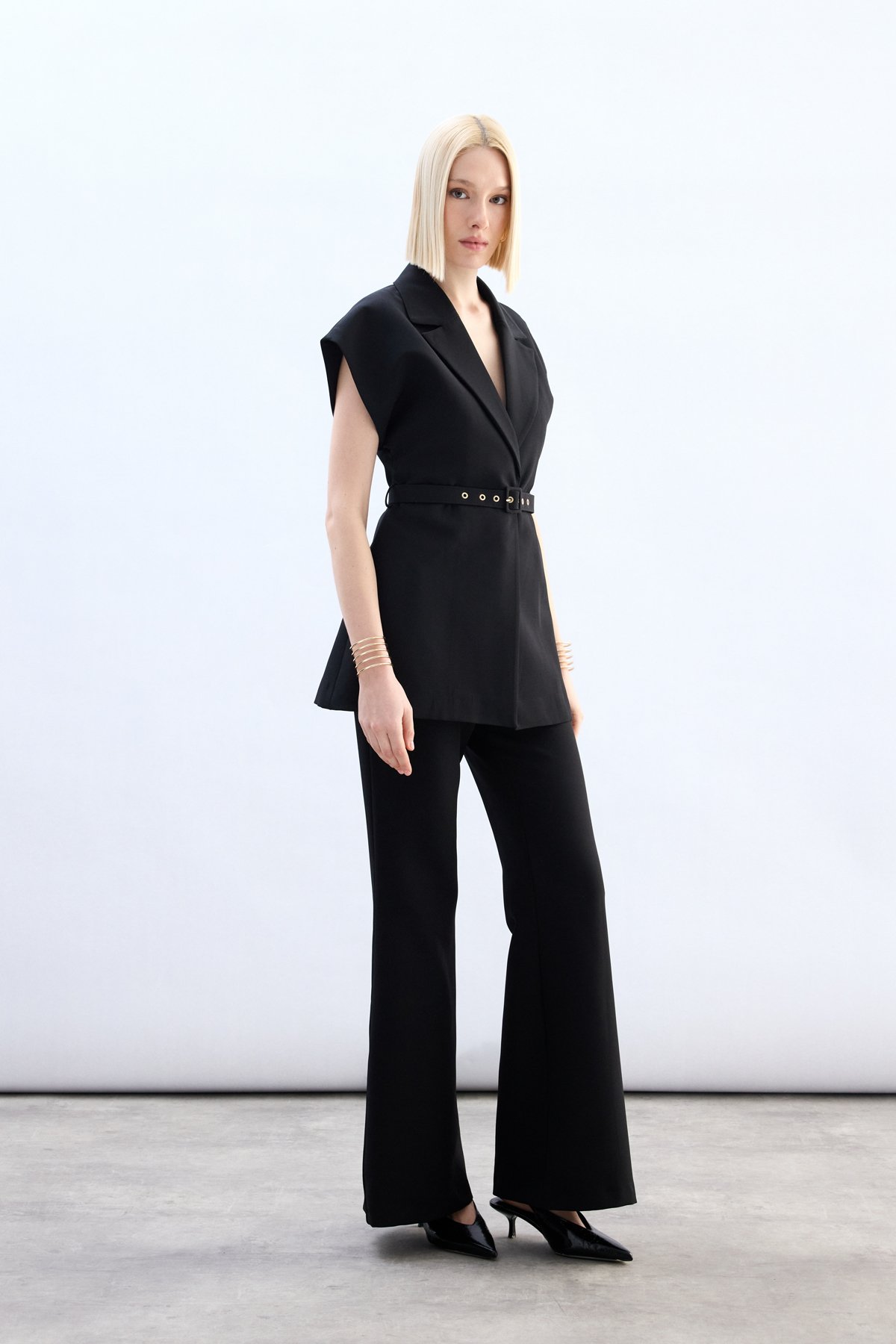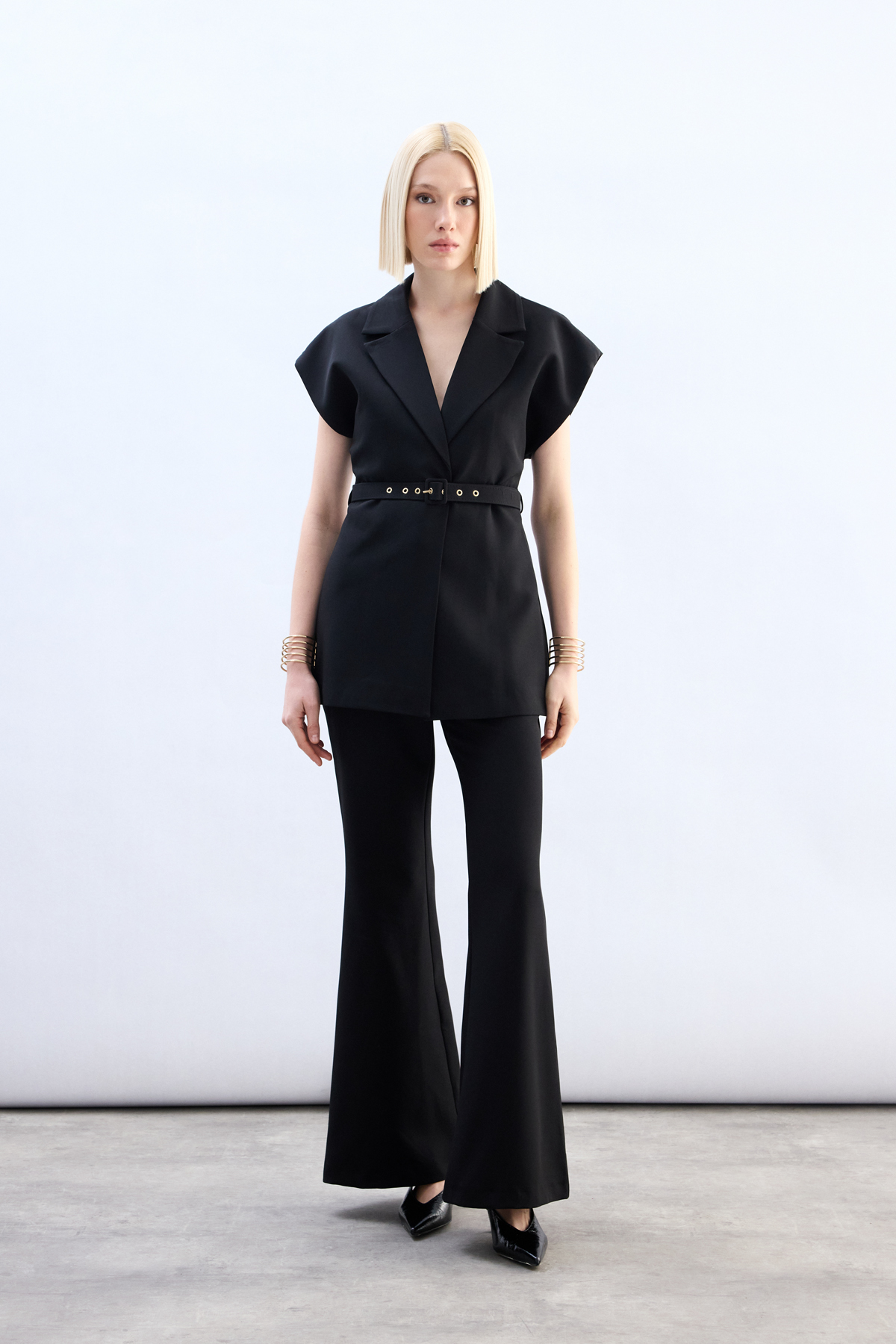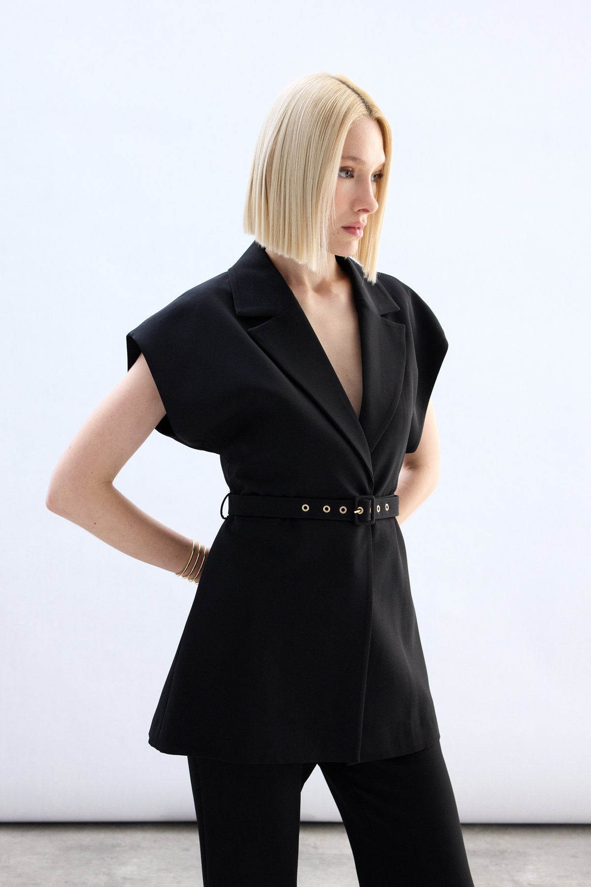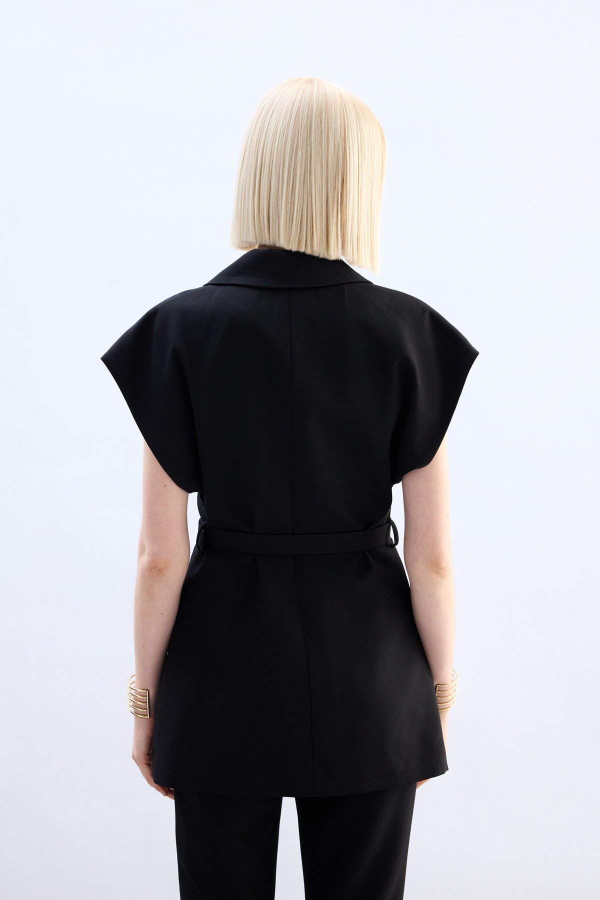Kemerli Uzun Yelek - Siyah