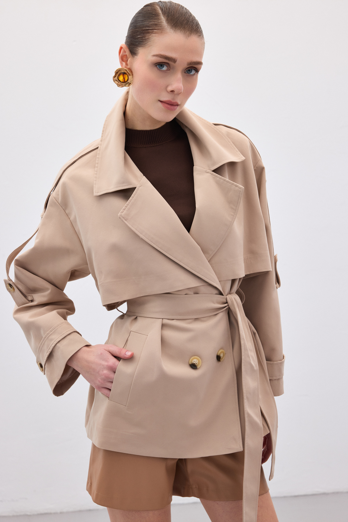 Kısa Trençkot - Bej