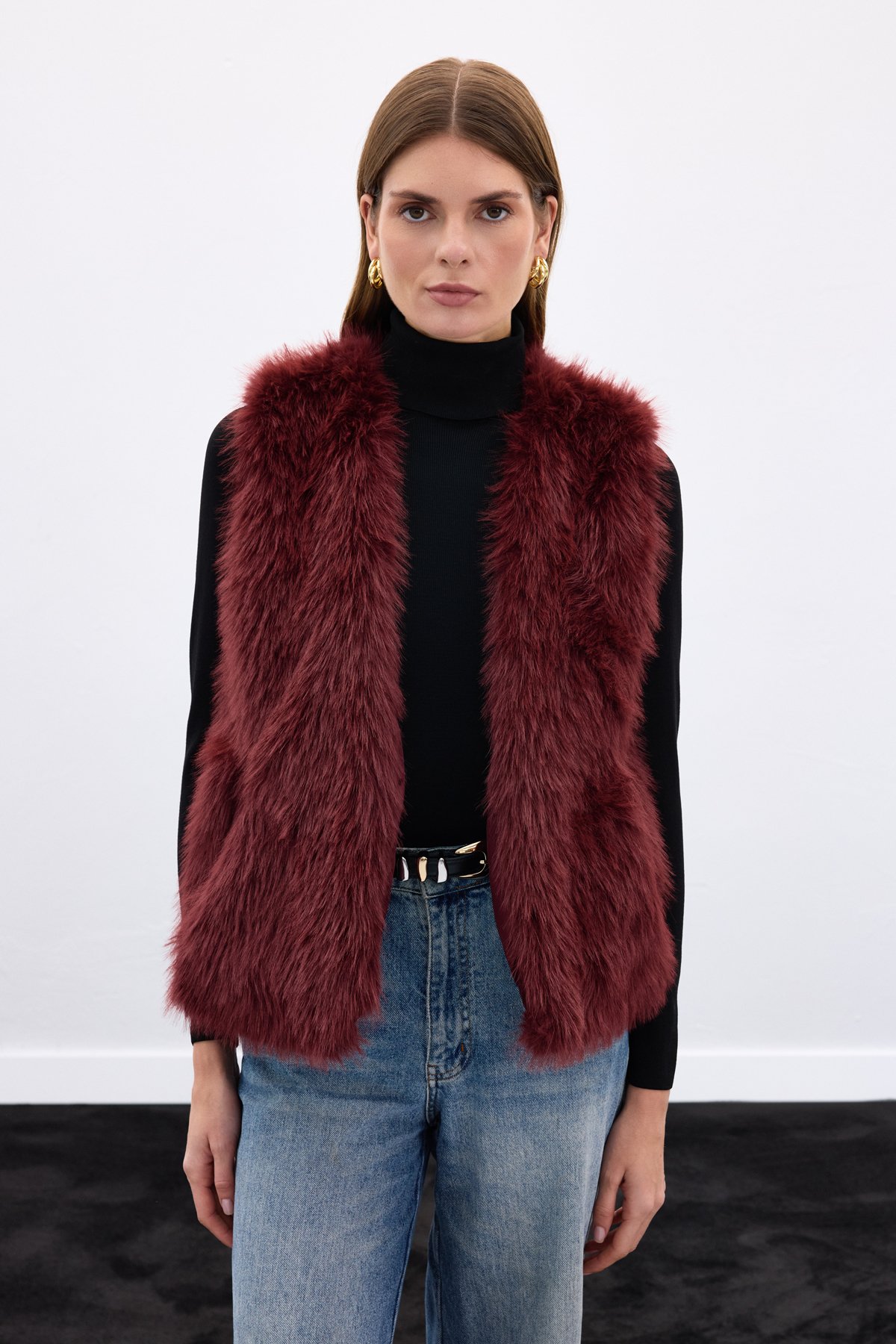 Kolsuz Uzun Yelek - Bordo