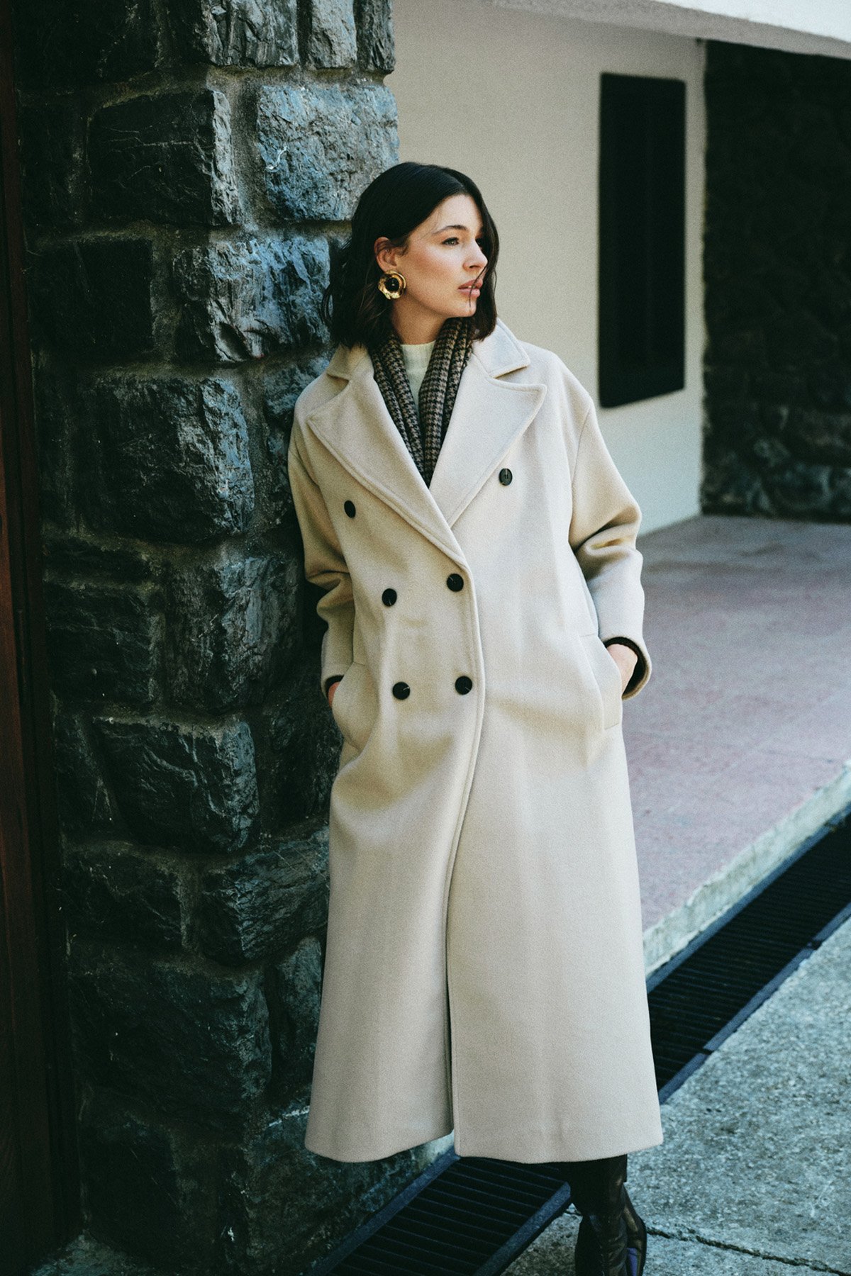 Kruvaze Uzun Kaban - Bej