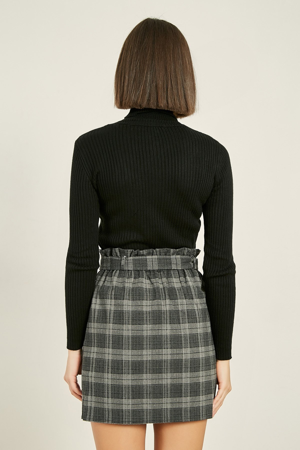 Yüksek-lastikli bel, kuşak detaylı, çift cepli, astarsız, ekoseli mini etek.Boy Uzunluğu: 46 cmNumune Bedeni: 36/S/1Modelin Ölçüleri:Boy:1,74, Göğüs:88, Bel:64, Kalça:94