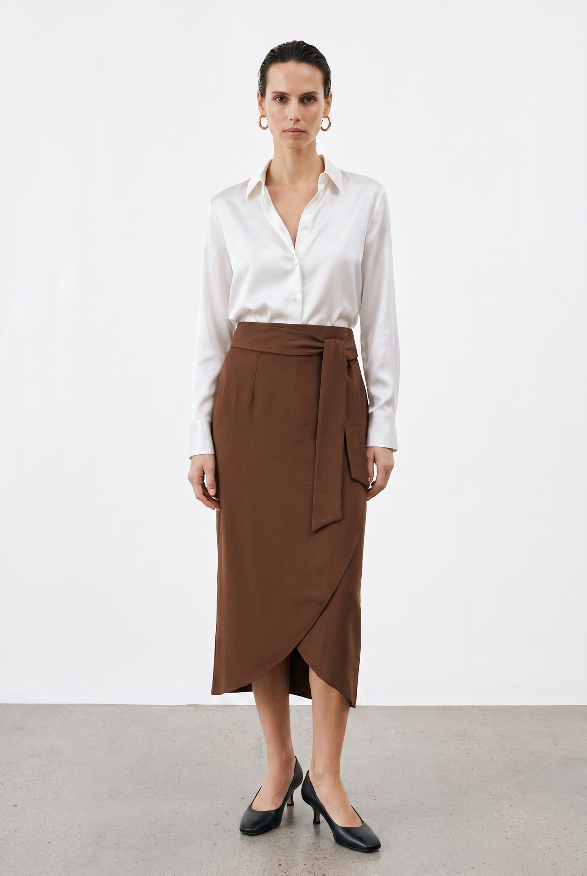 Kuşaklı Kalem Etek - Kahve