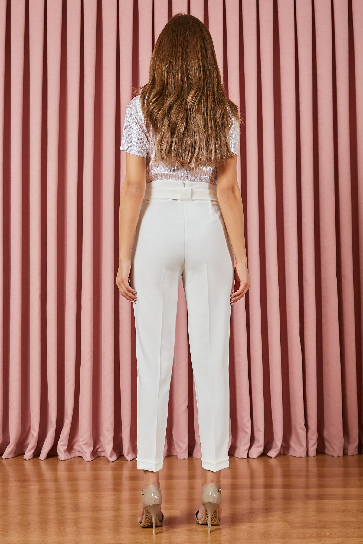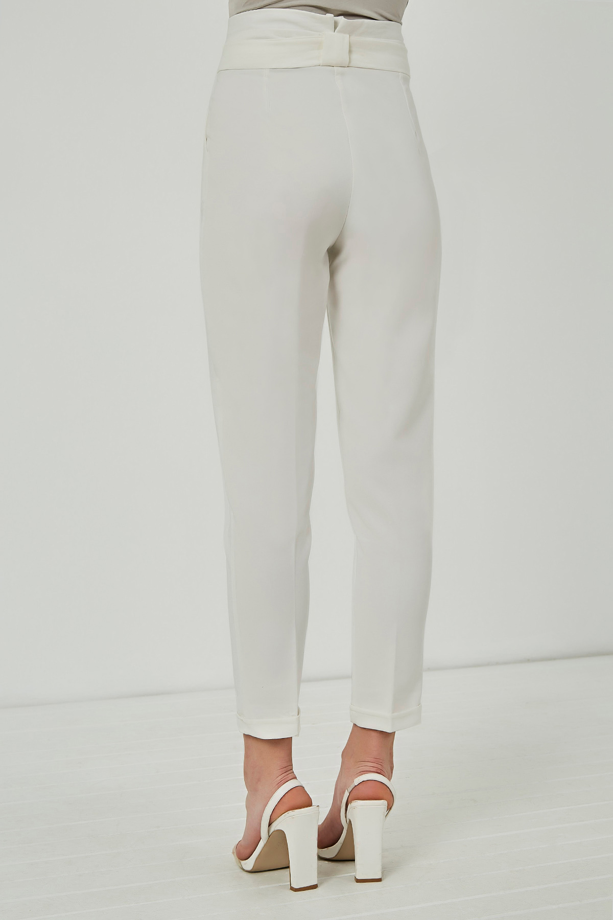 Yüksek bel, kuşak detaylı, ön fermuarlı, cepli, tam kalıp pantolon.%80 Pamuk %20 polyesterBoy Uzunluğu: 98cmModelin Üzerindeki Ürün 36/S Bedendir.Modelin Ölçüleri :Boy:1,74, Göğüs:89, Bel:59, Kalça:93