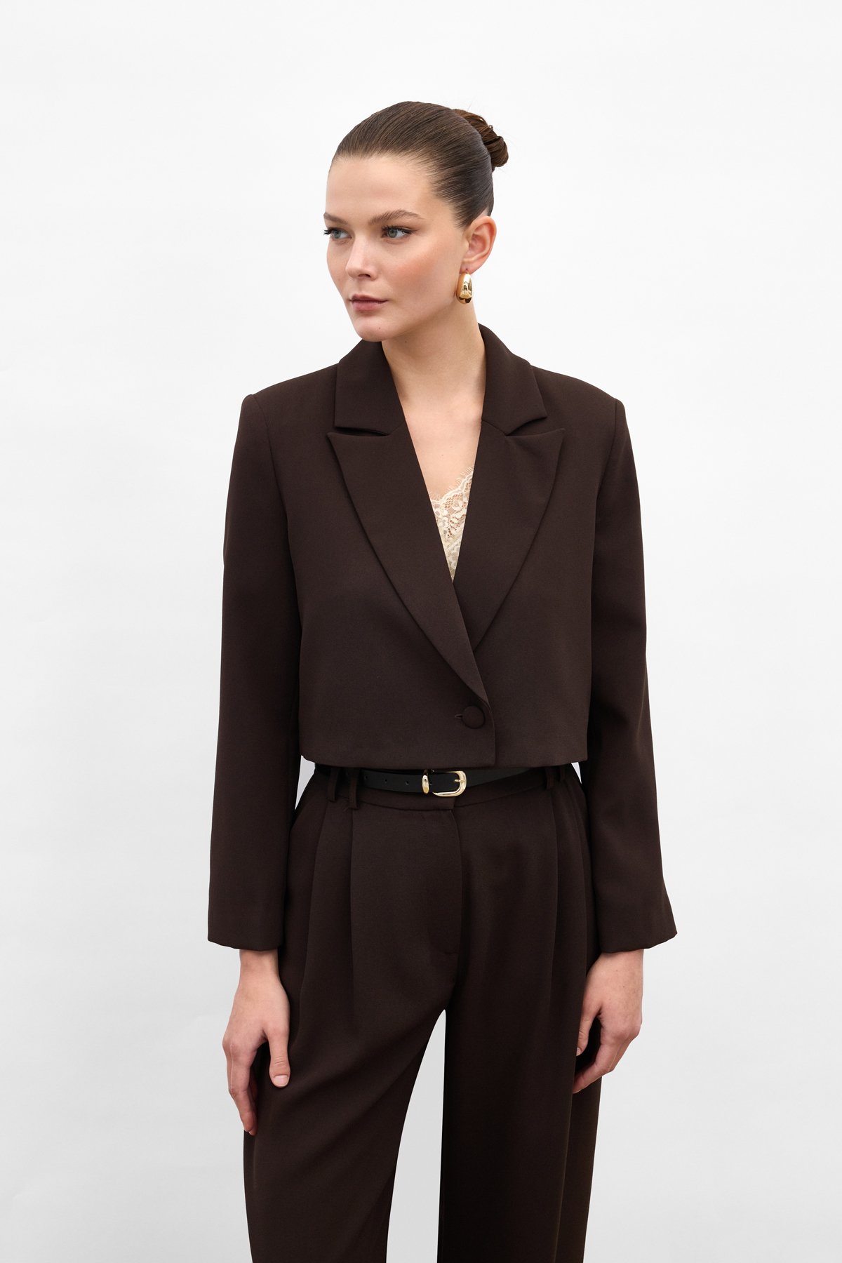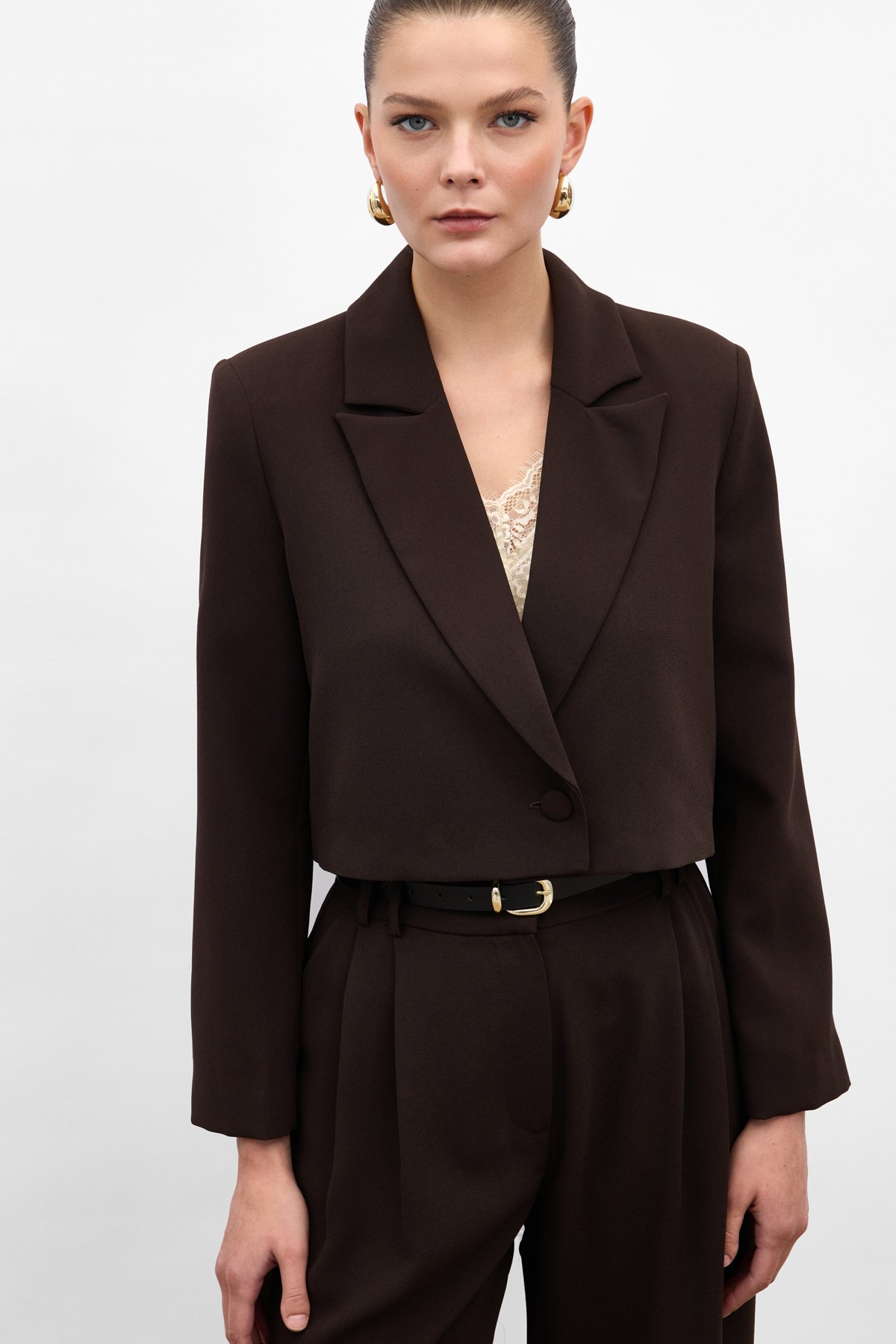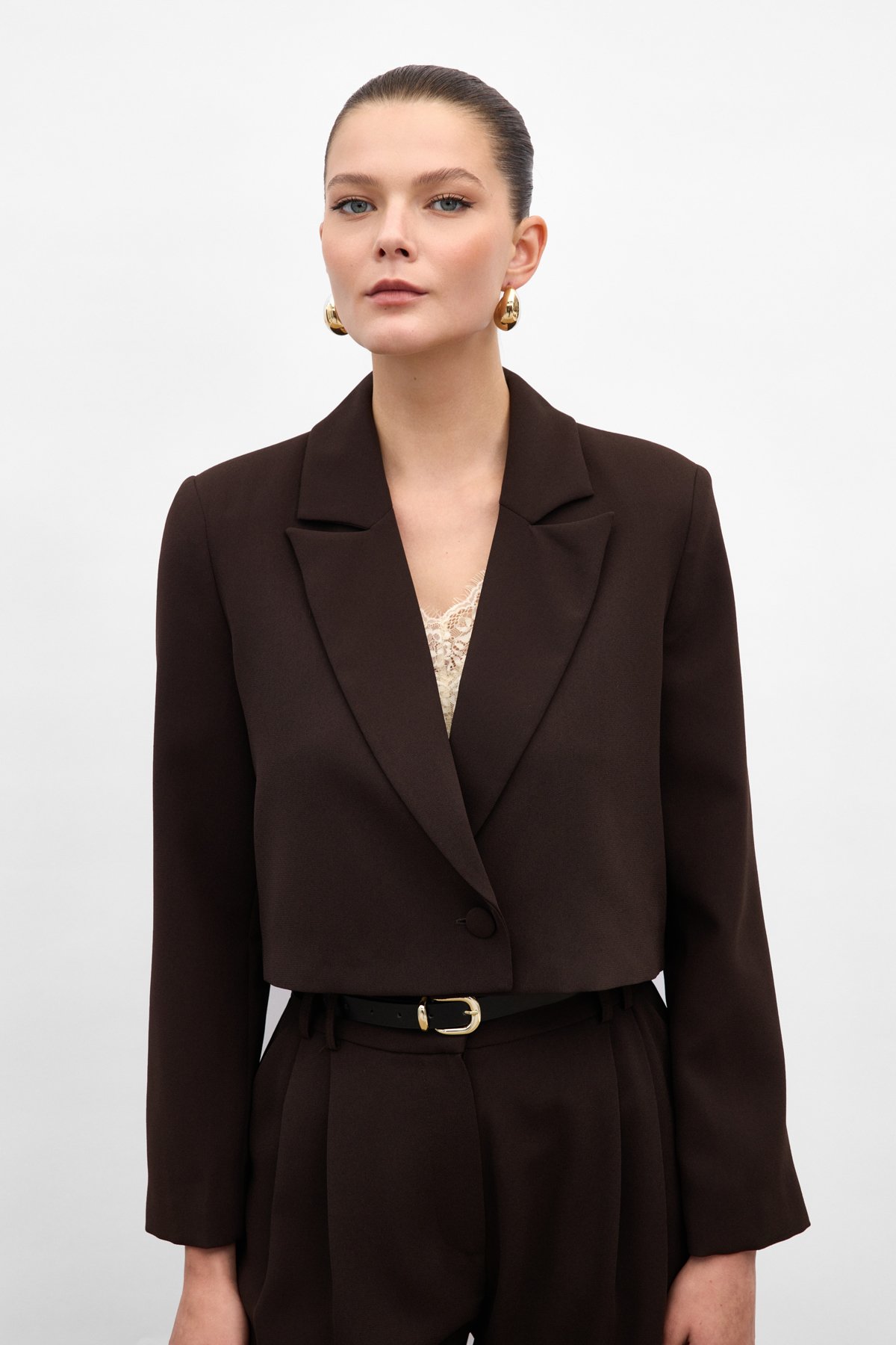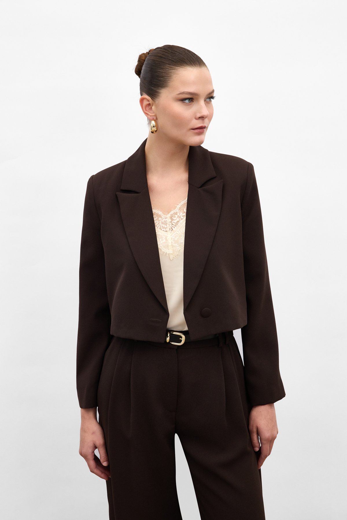 Luna Kısa Ceket - Kahve