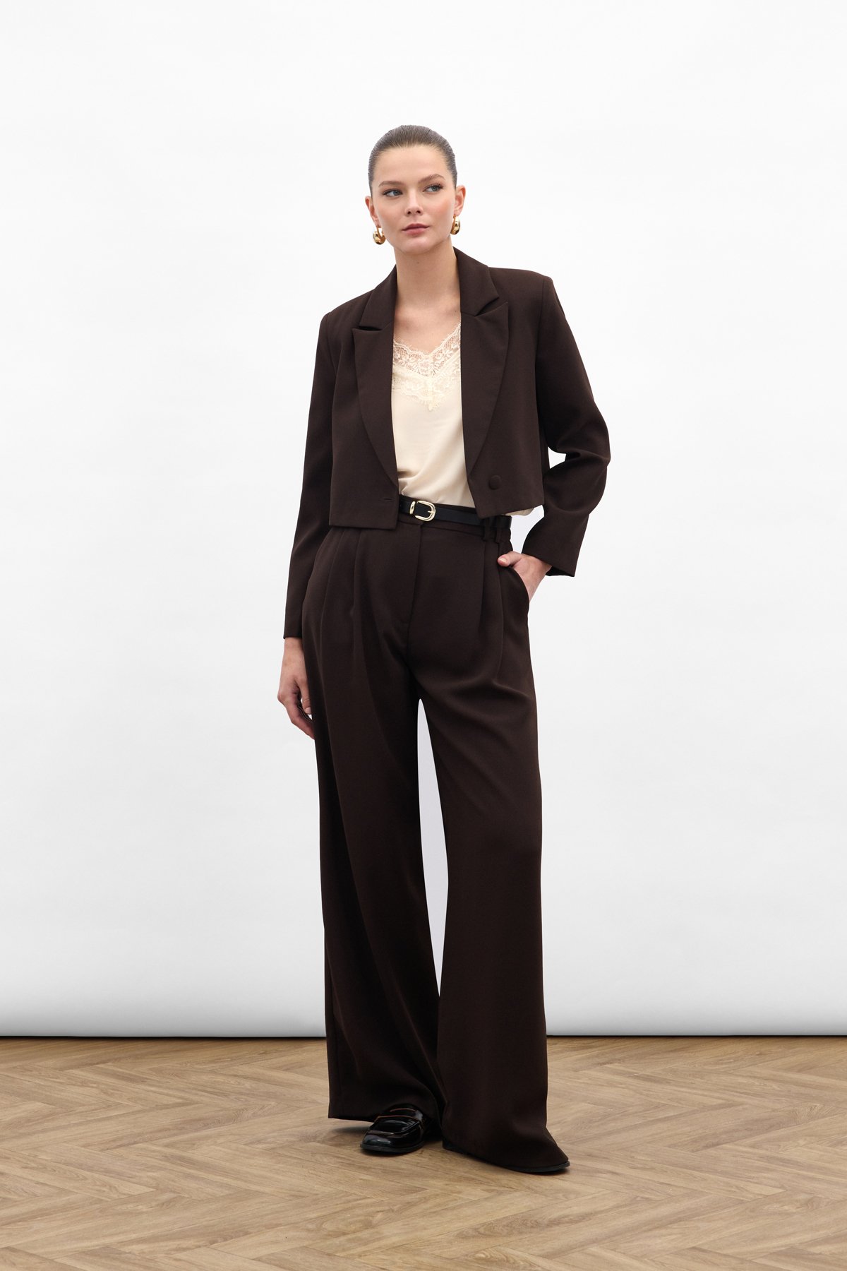 Luna Krep Pantolon - Kahve