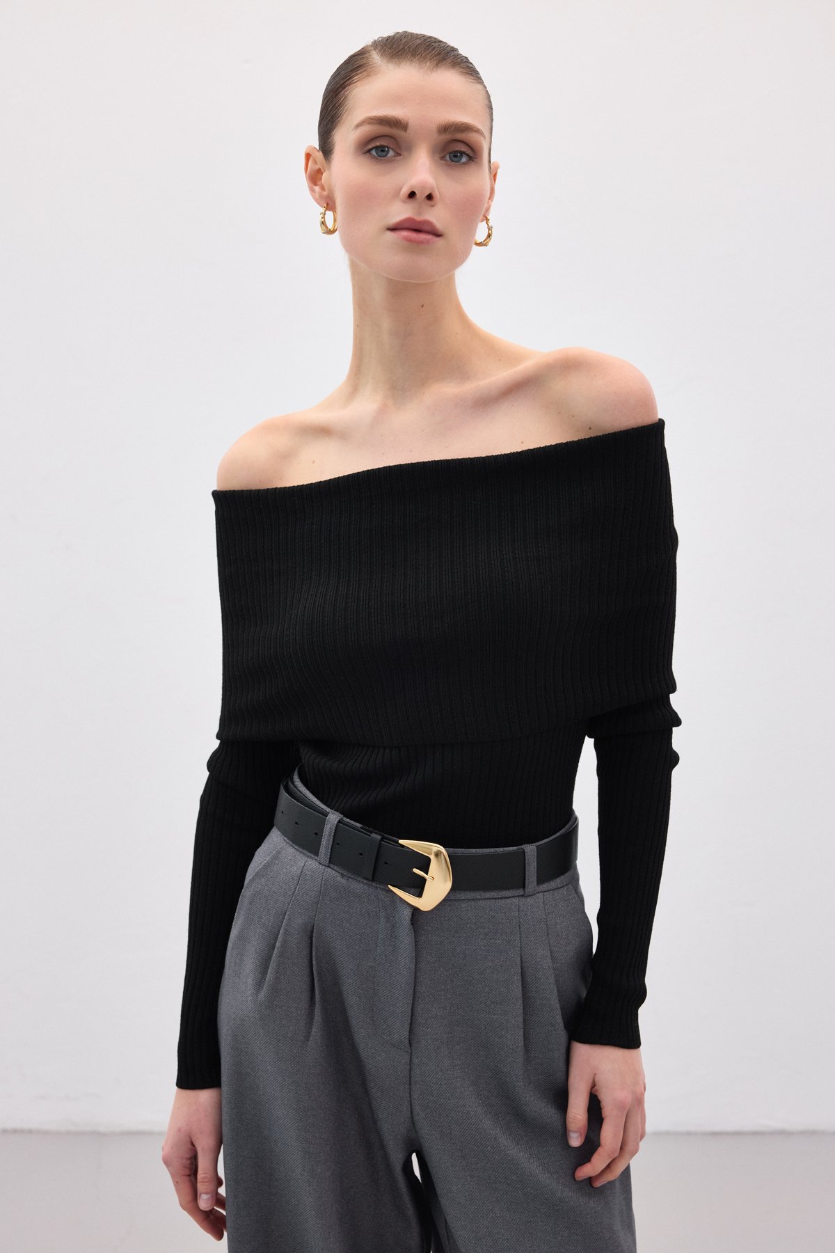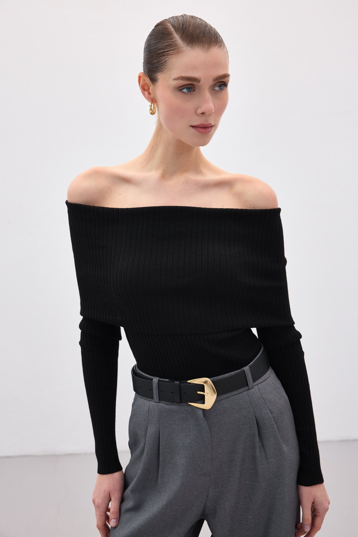 Madonna Yaka Triko - Siyah