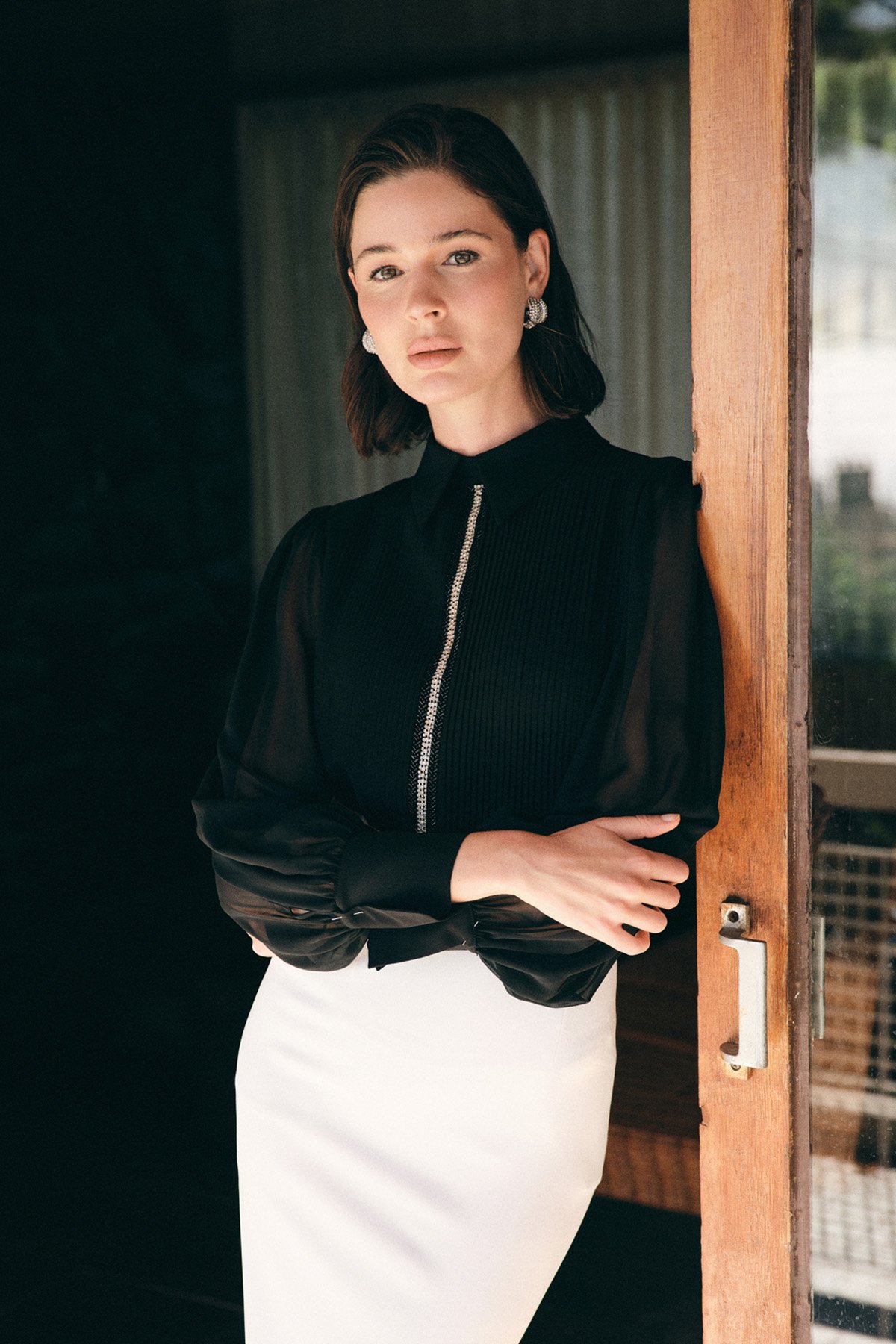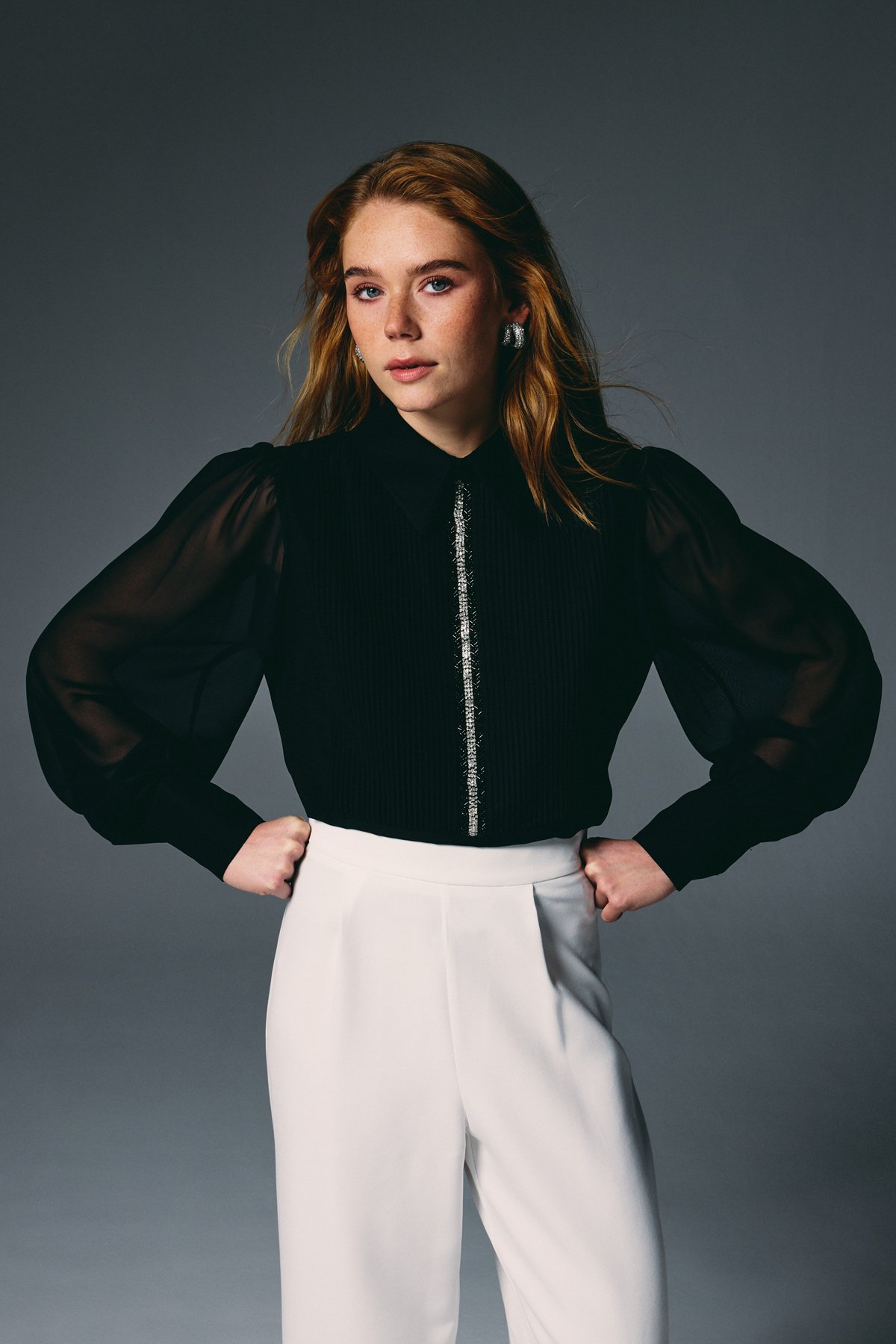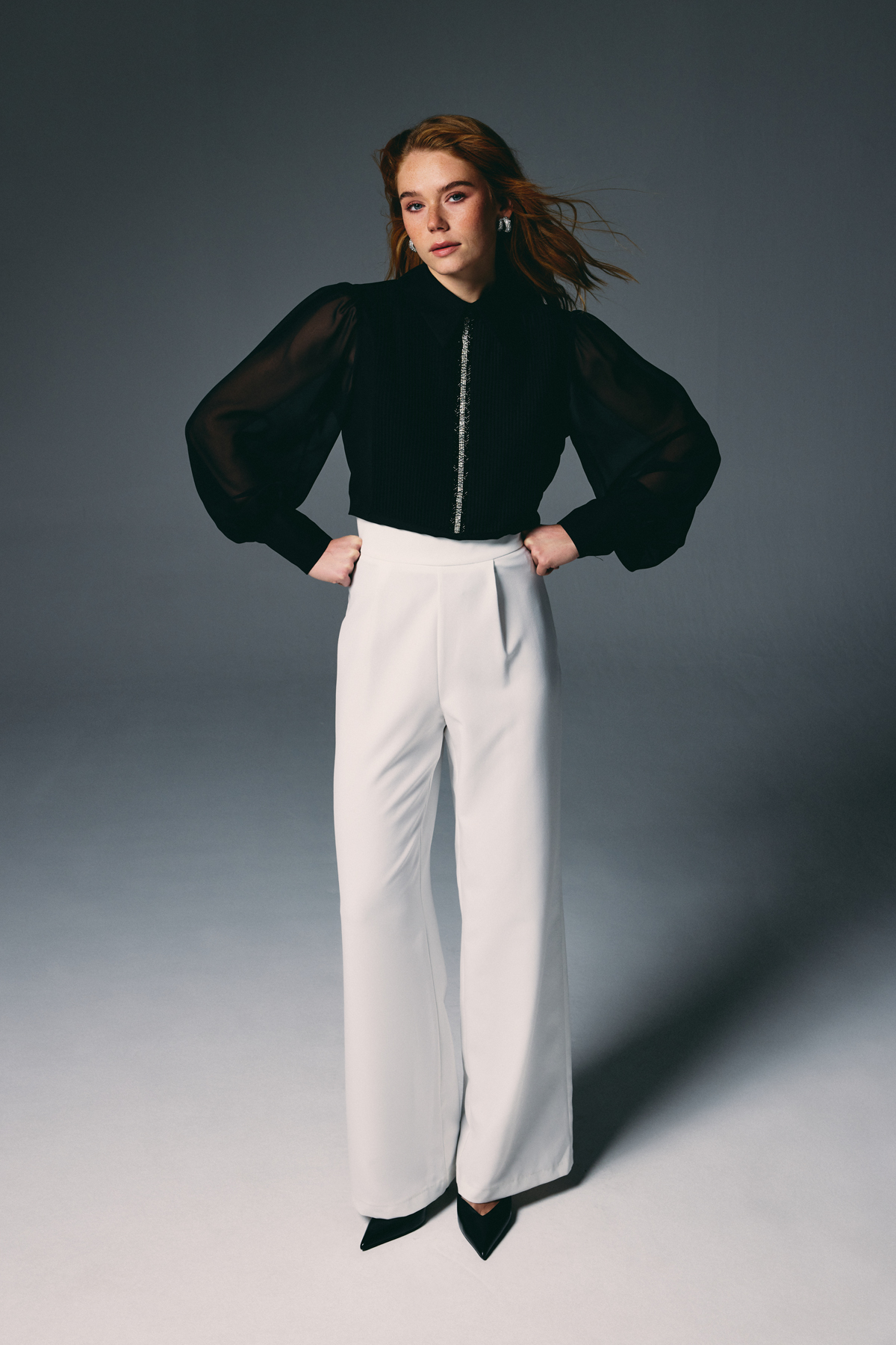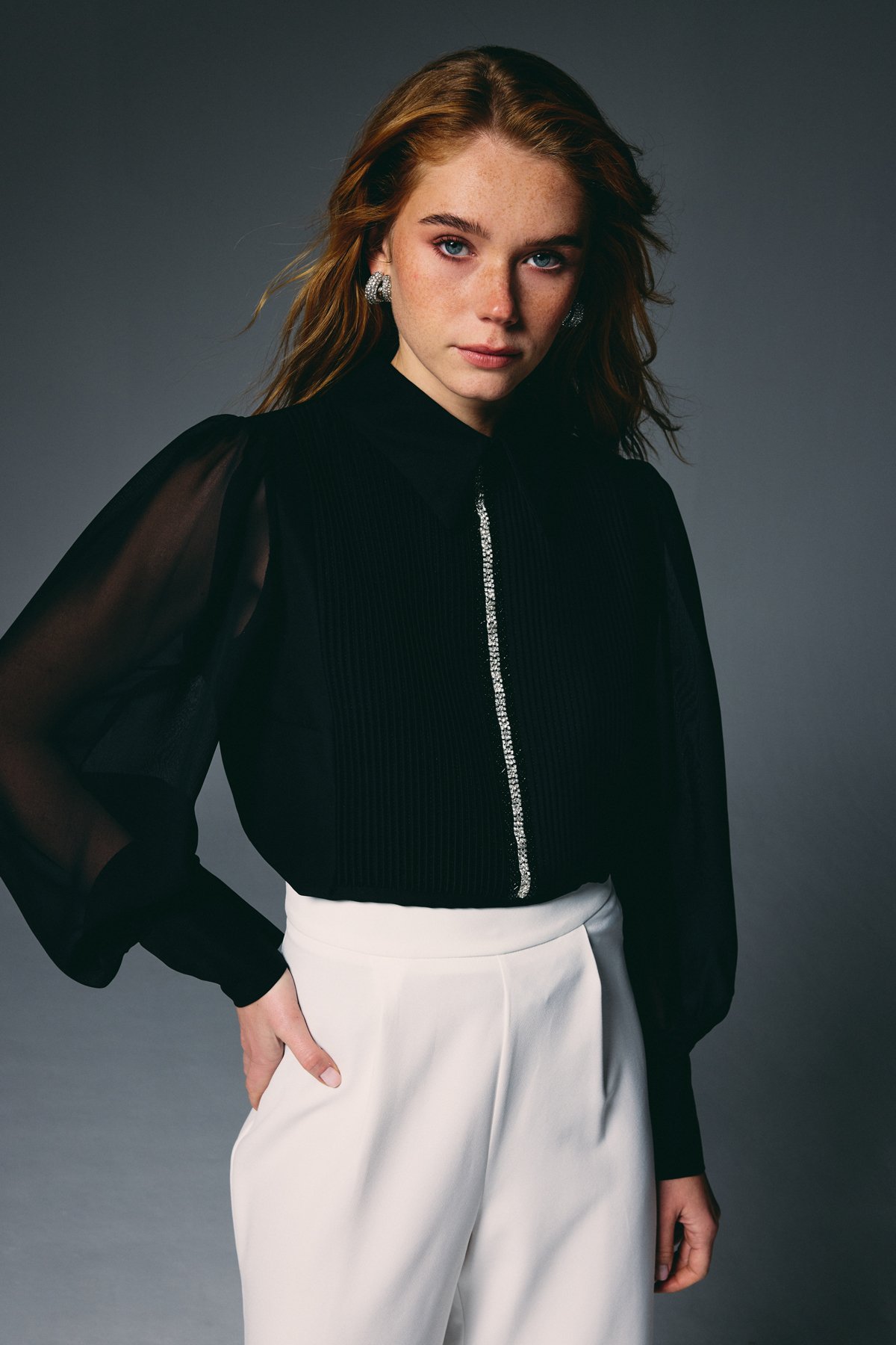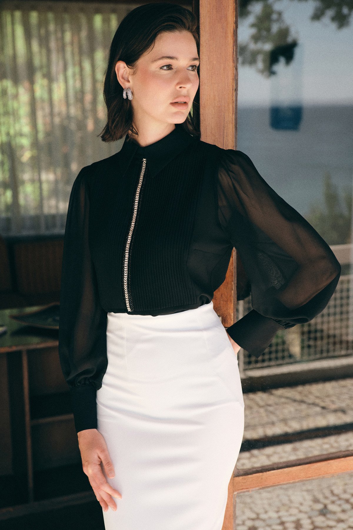 1916-1600 TAŞLI ŞERİT VE NERVÜR DETAYLI BLUZ