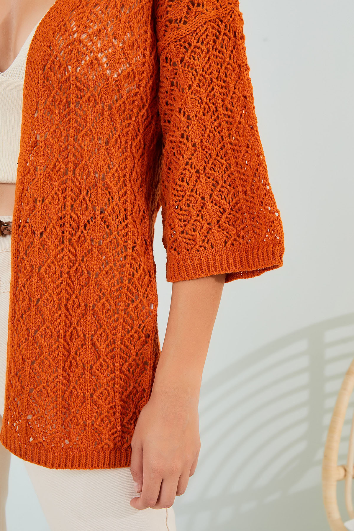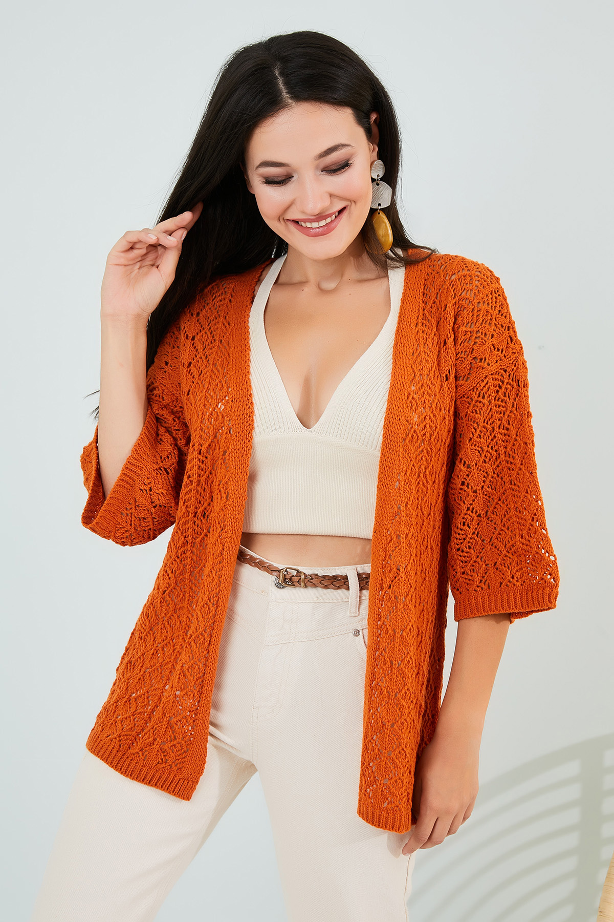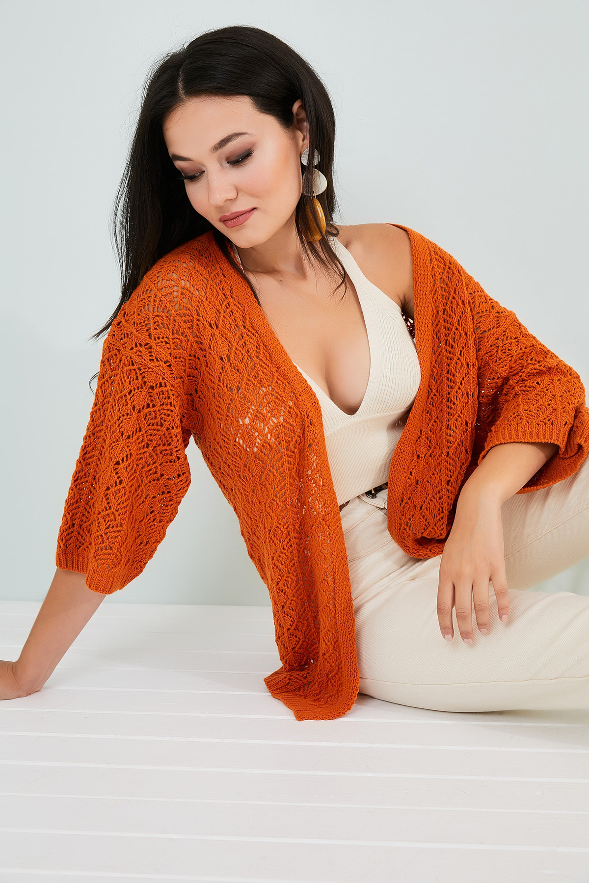 Düz yaka, geniş truvakar kol, örgü desenli hırka.Boy Uzunluğu: 71 cmModelin Üzerindeki Ürün STD Bedendir.Modelin Ölçüleri:Boy:1,73, Göğüs:89, Bel:64, Kalça:92