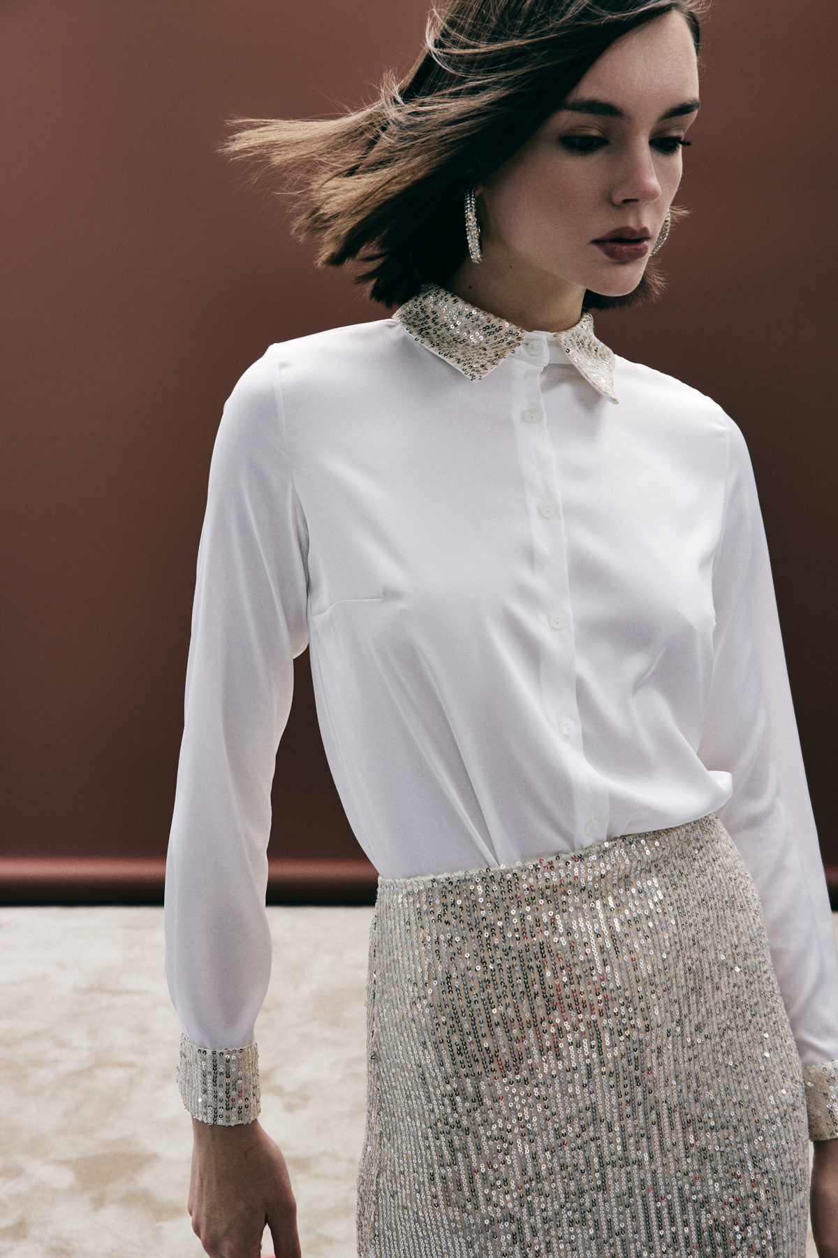 1281-2524 YAKASI KOLLARI PAYETLİ SATEN GÖMLEK