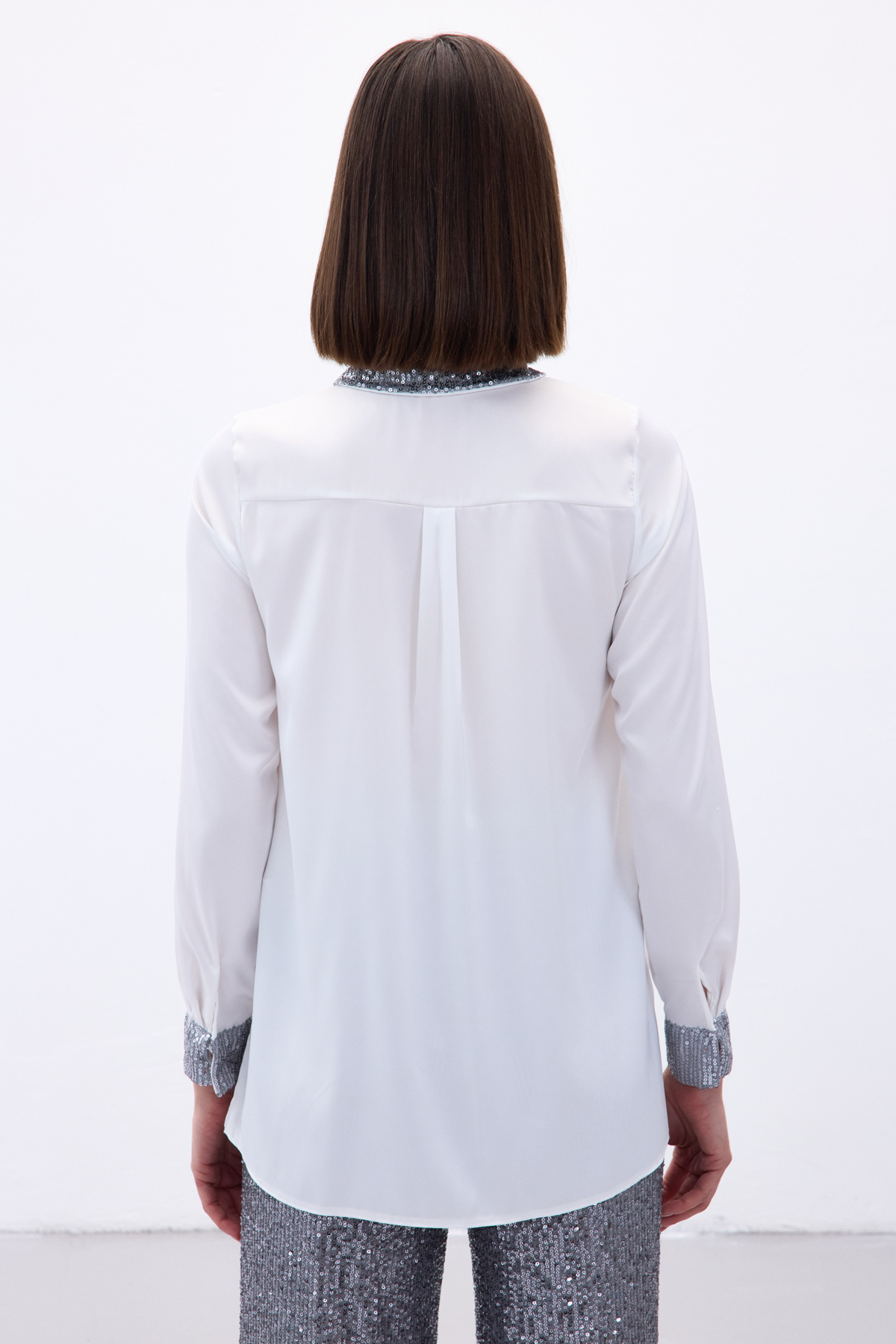 1281-2524 YAKASI KOLLARI PAYETLİ SATEN GÖMLEK