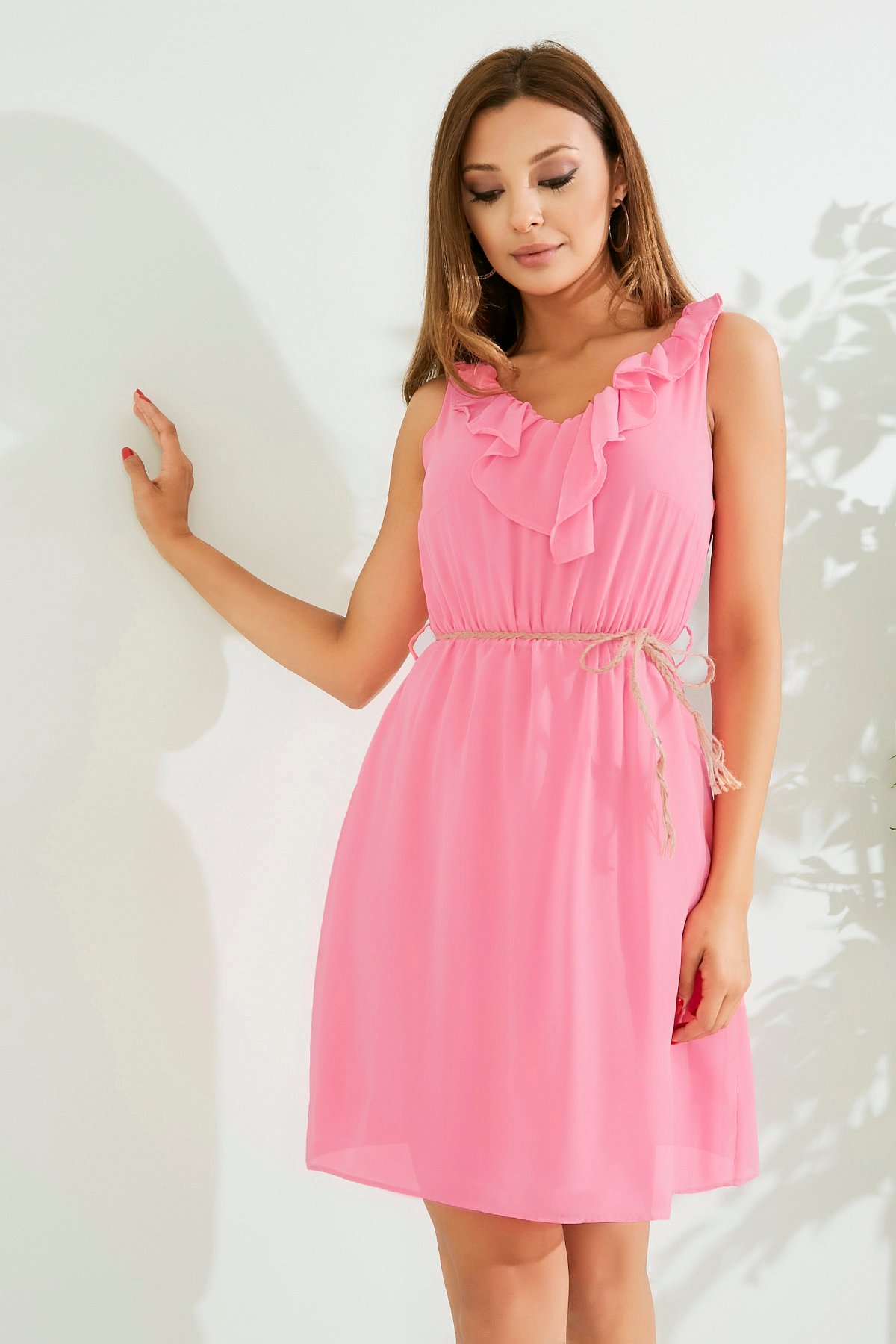 Kumaş Türü: Şifon *Volanlı - V Yaka *Kolsuz *Beli Lastikli *Hasır İp Detaylı *Astarlı *Tam Kalıp *Boy Uzunluğu: 90cm Modelin Üzerindeki Ürün 36/S Bedendir.