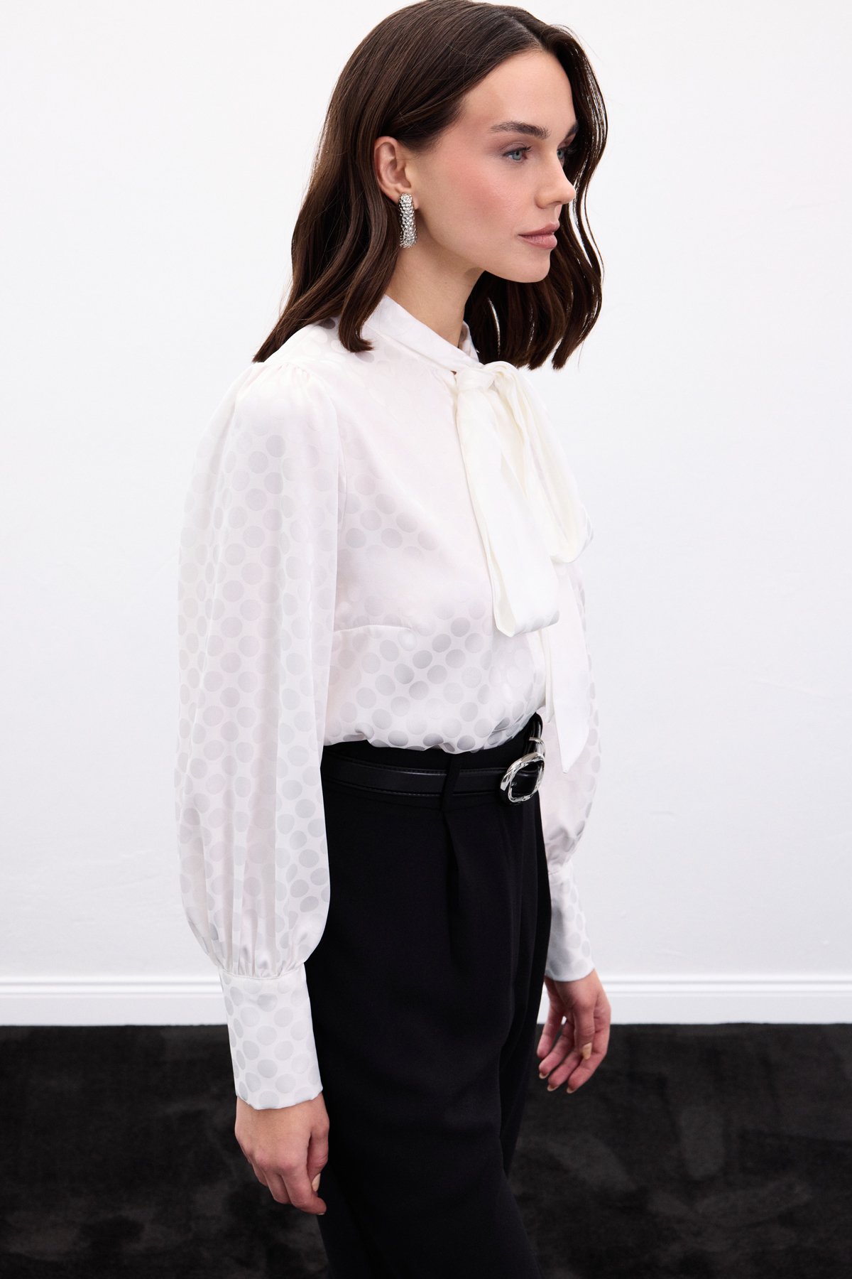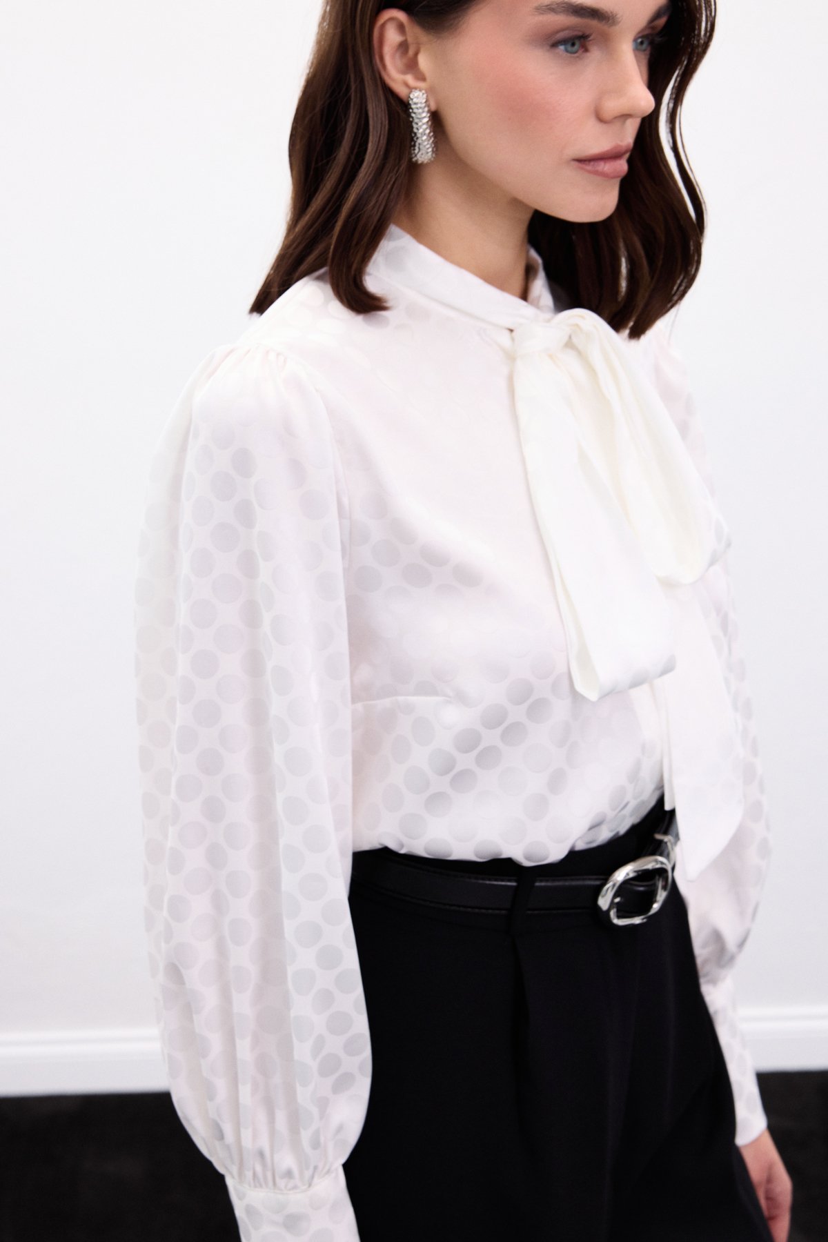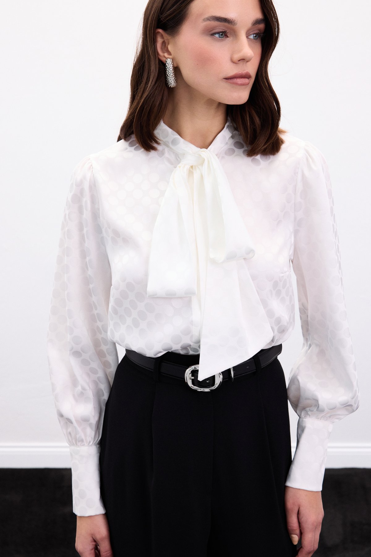 Puantiye Desenli Gömlek - Ekru