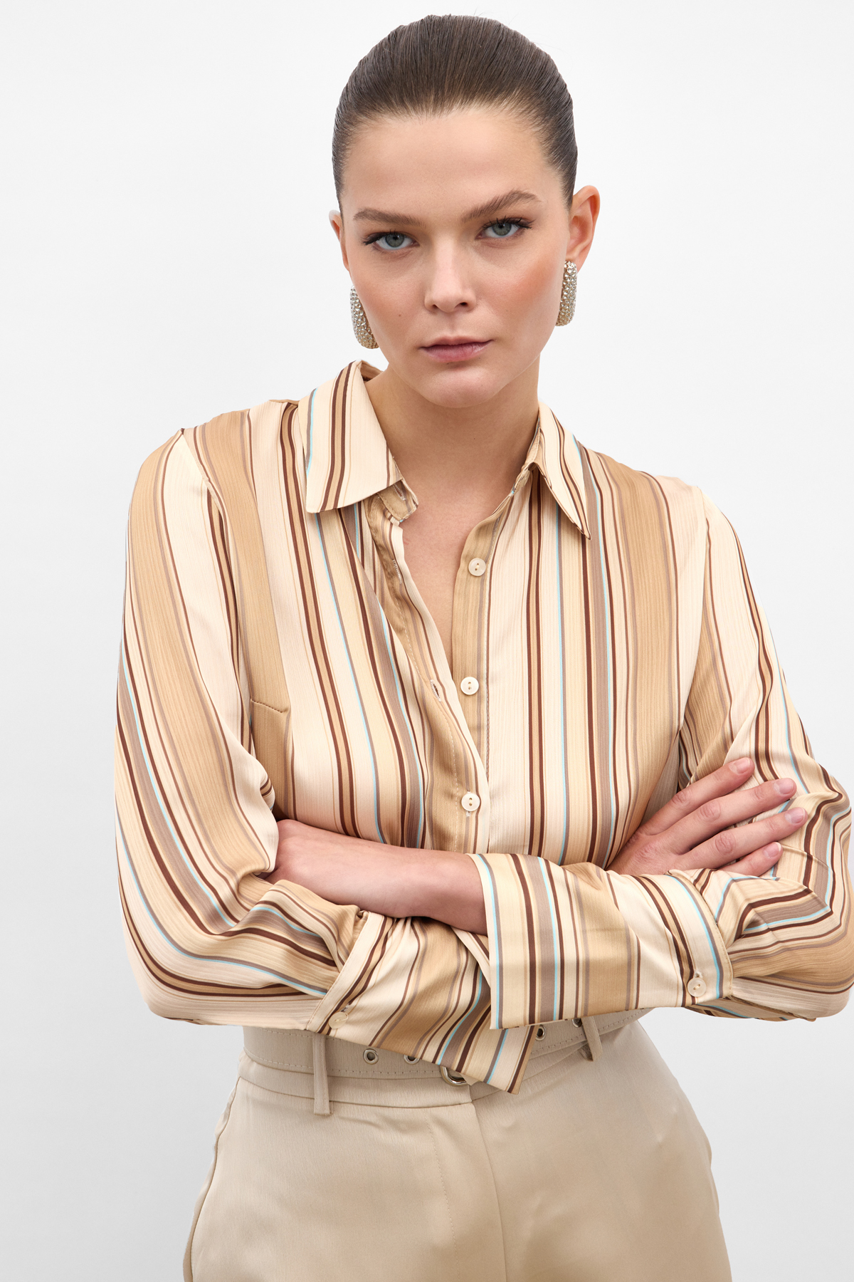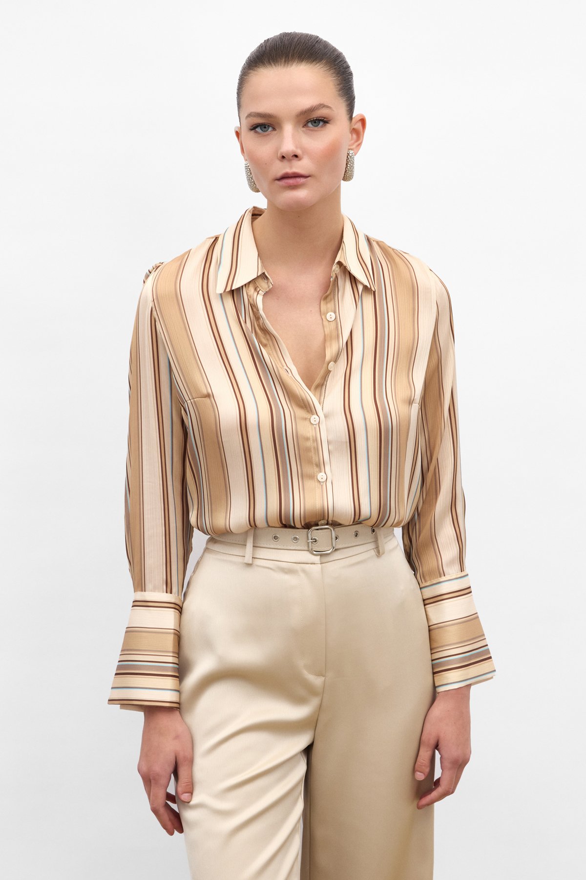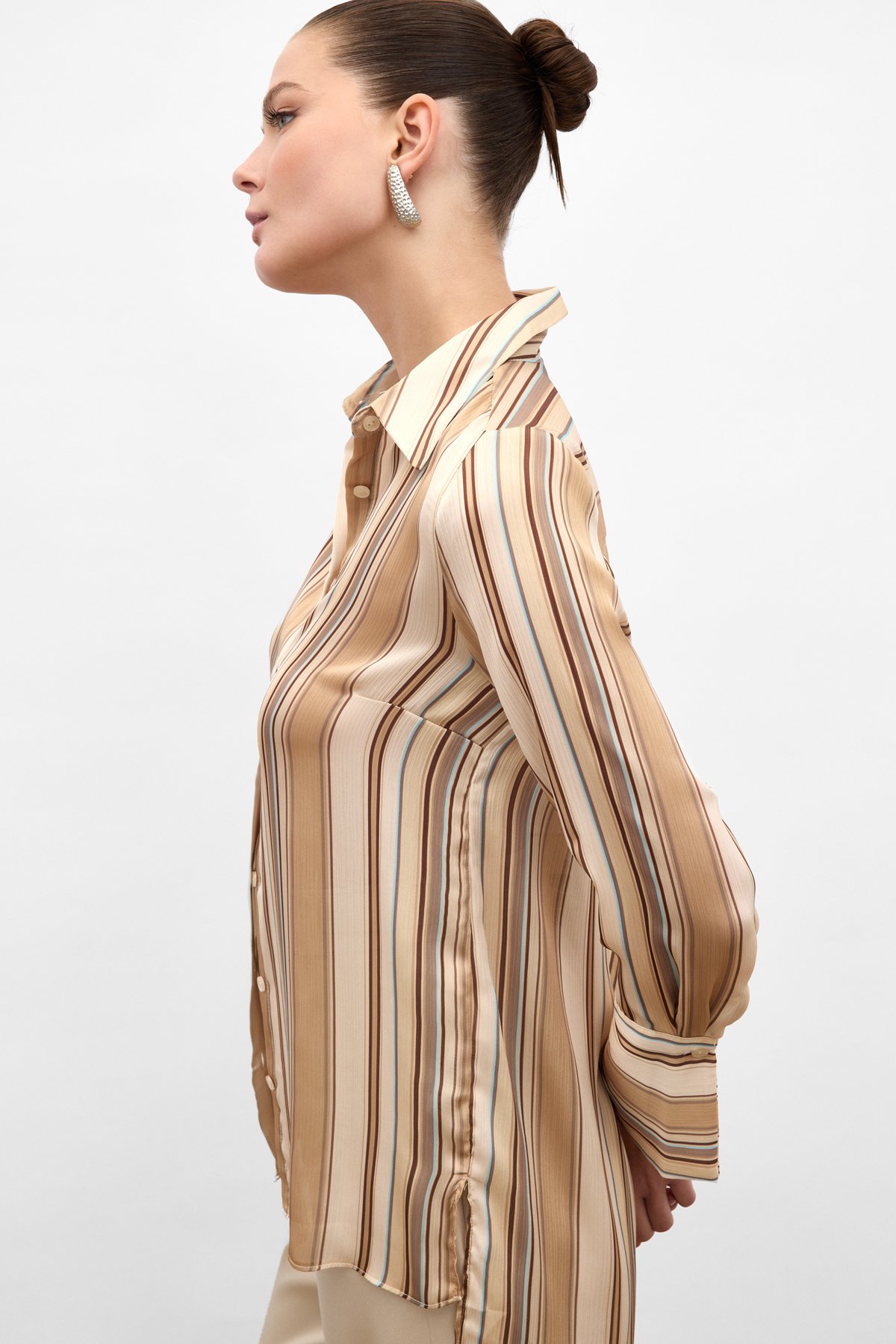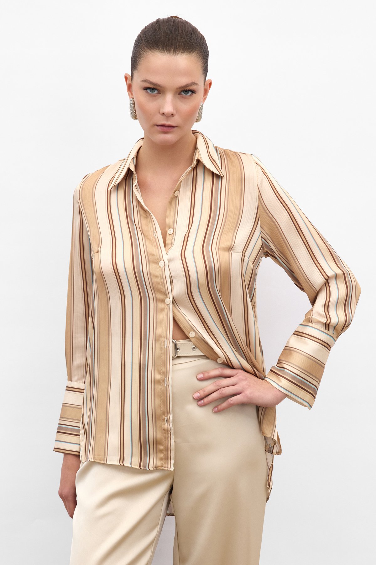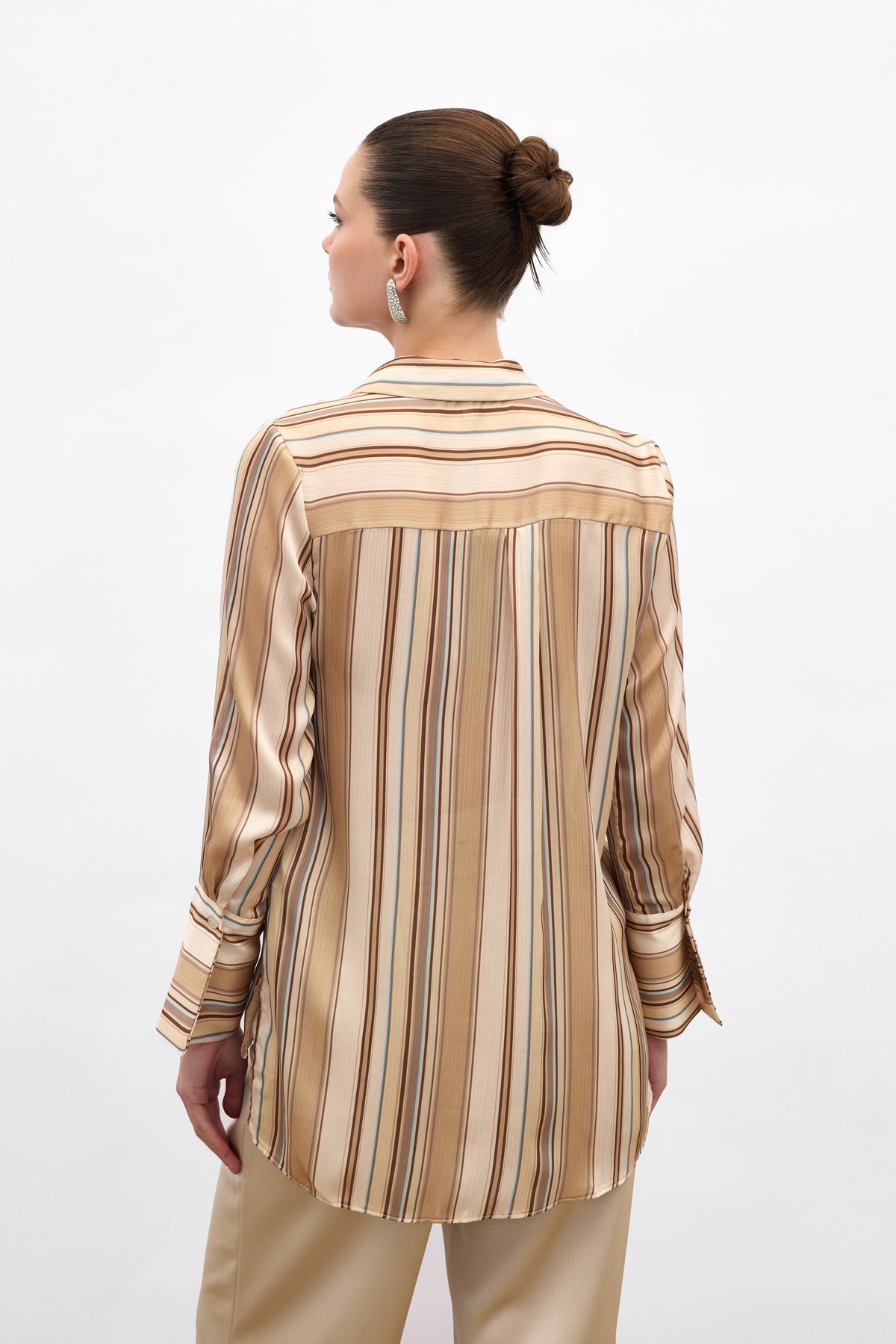 Renkli Çizgili Gömlek - Camel