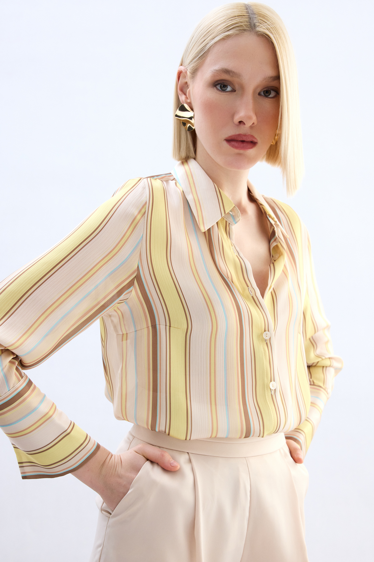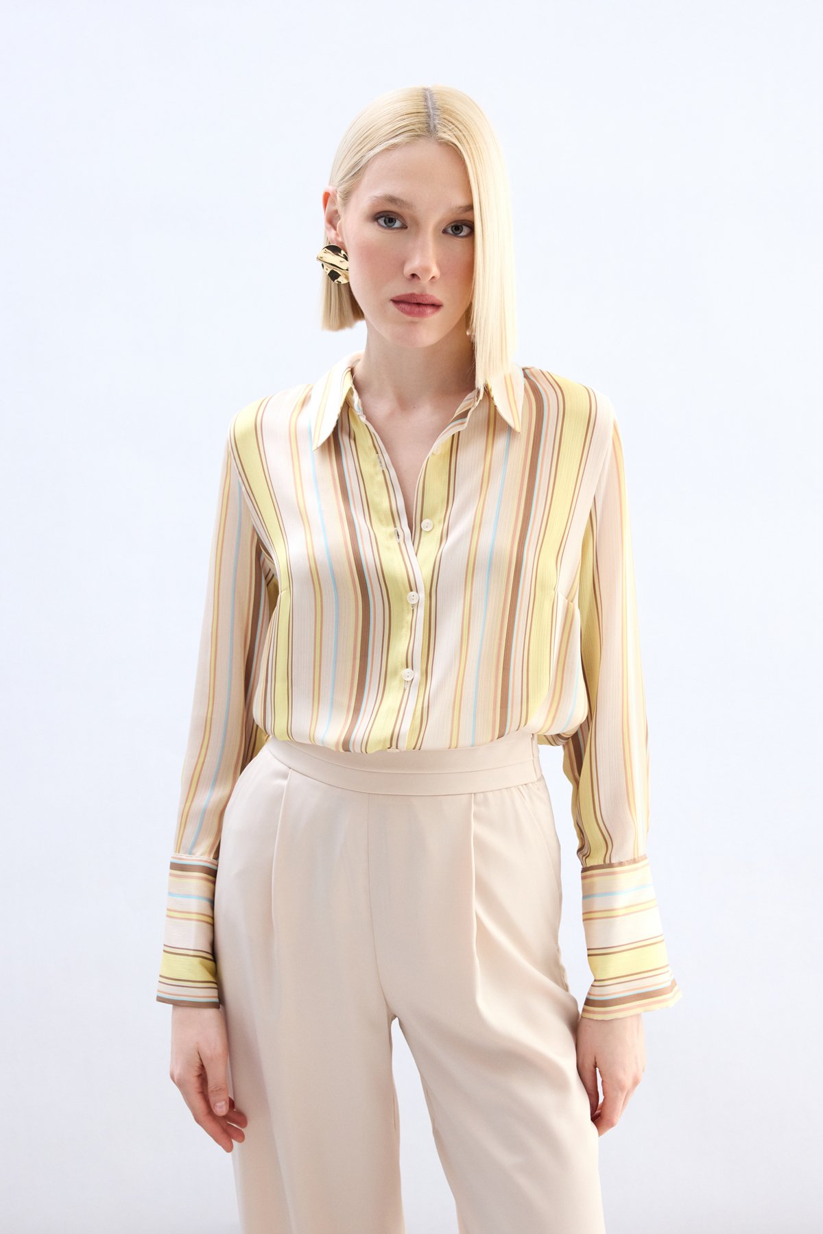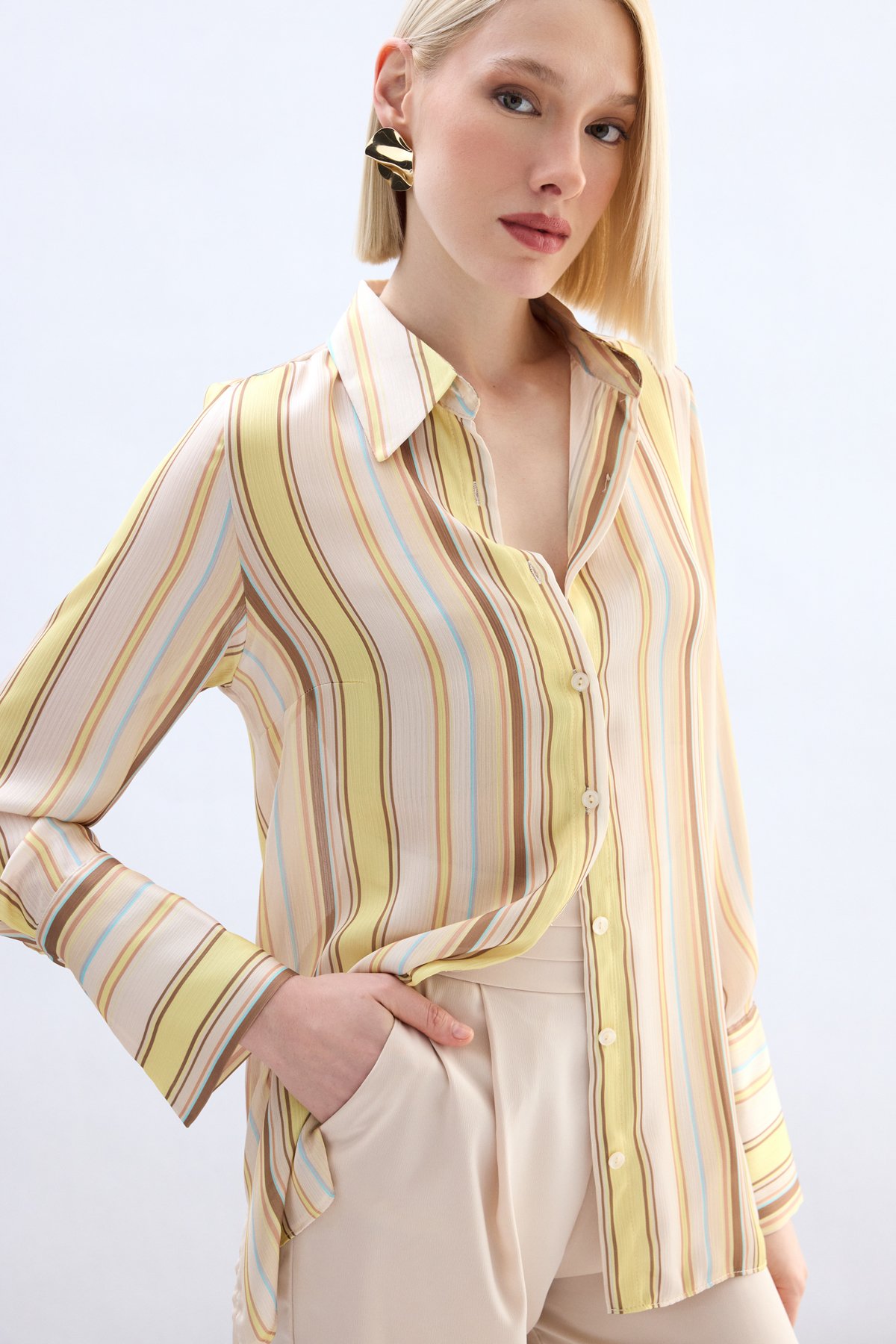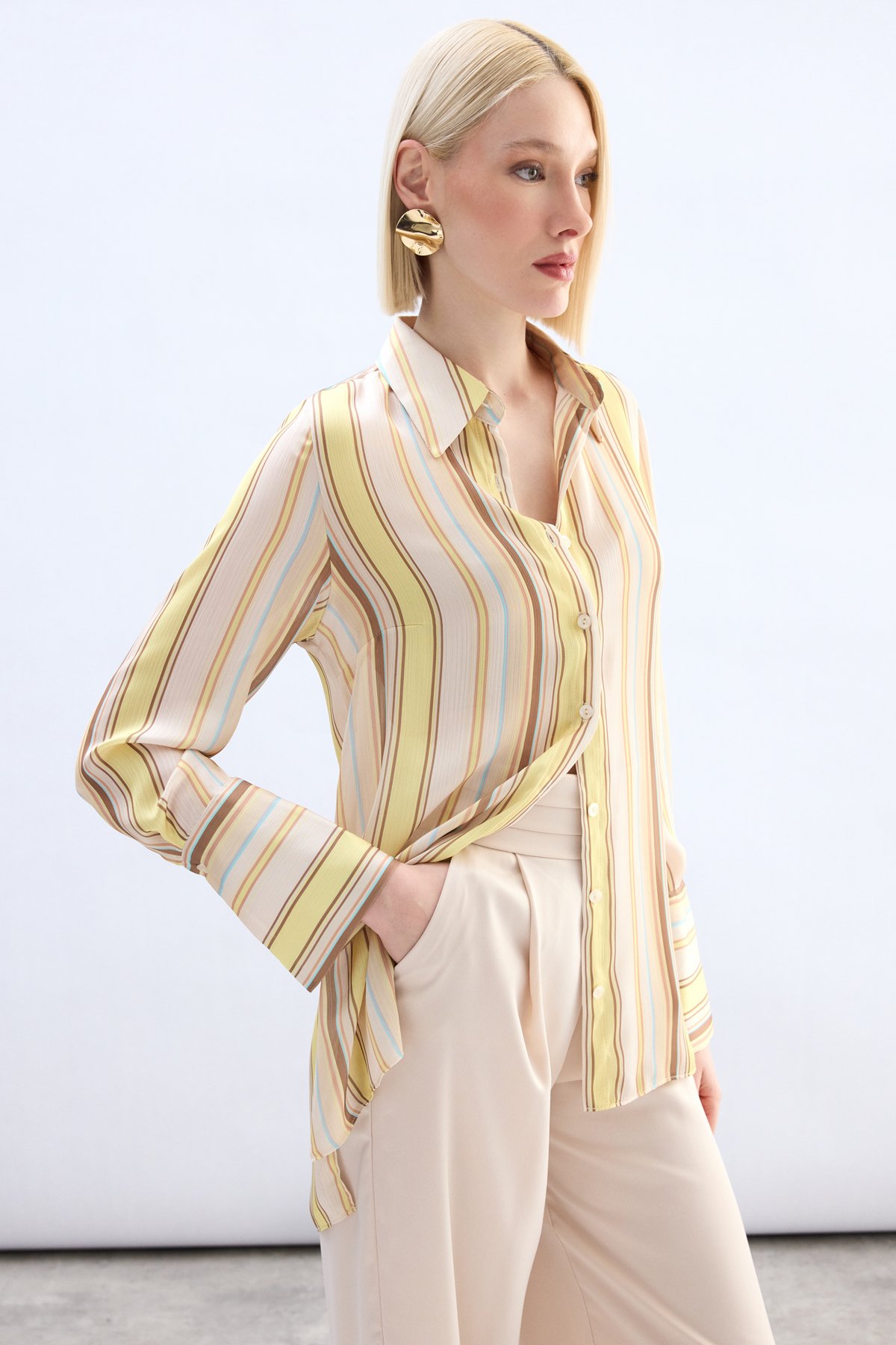 Renkli Çizgili Gömlek - Sarı