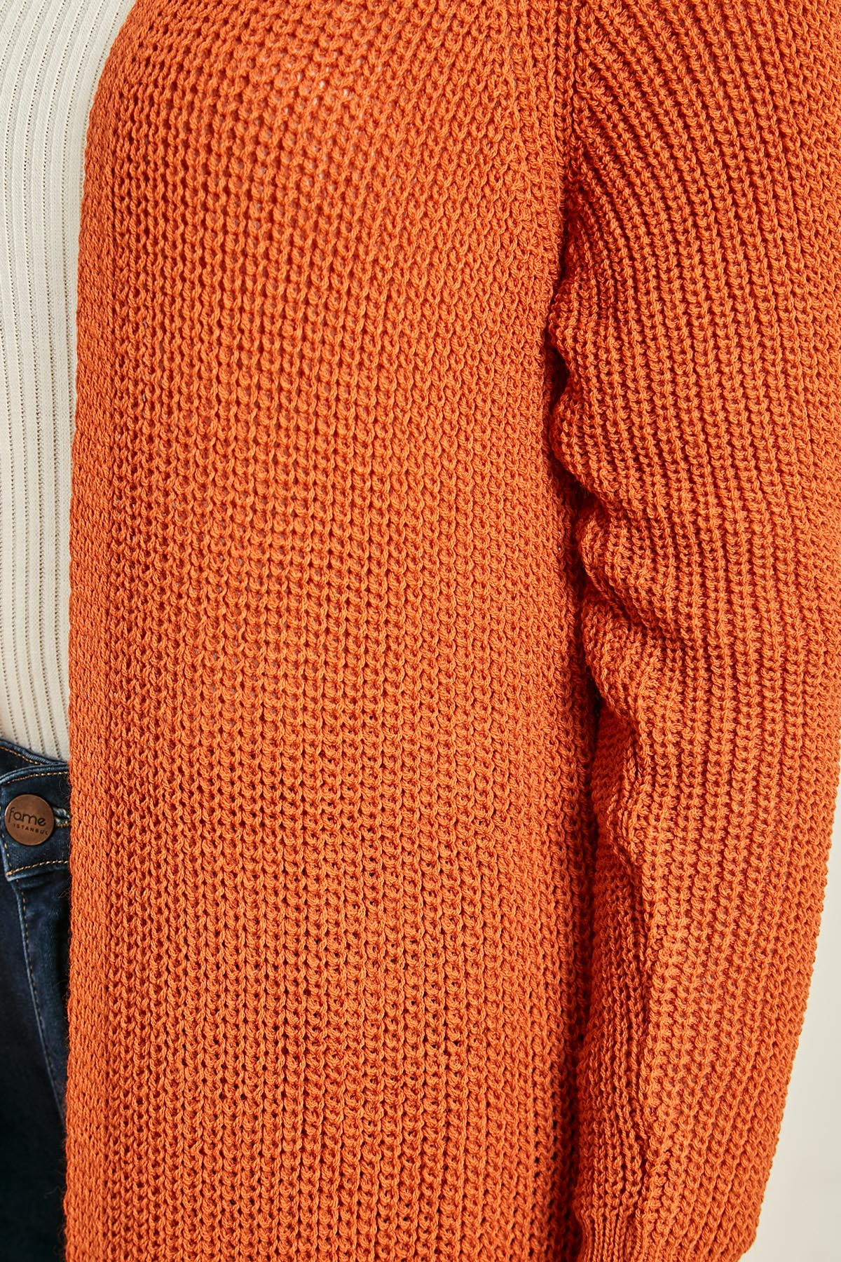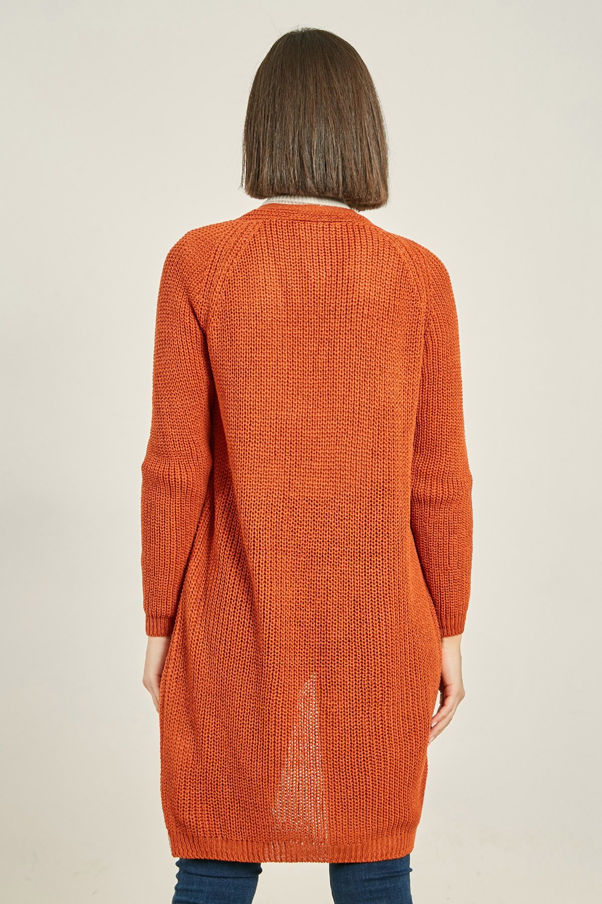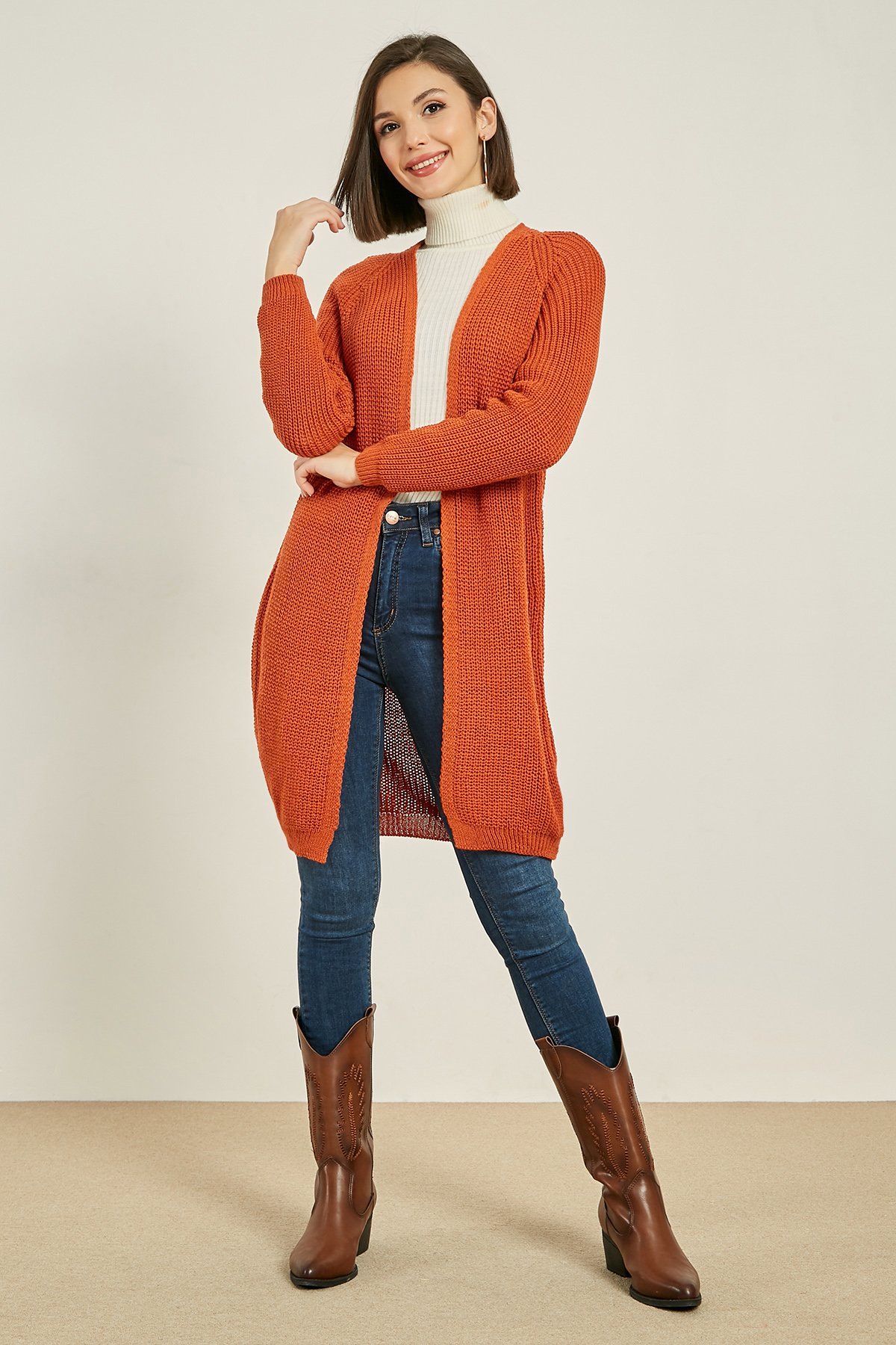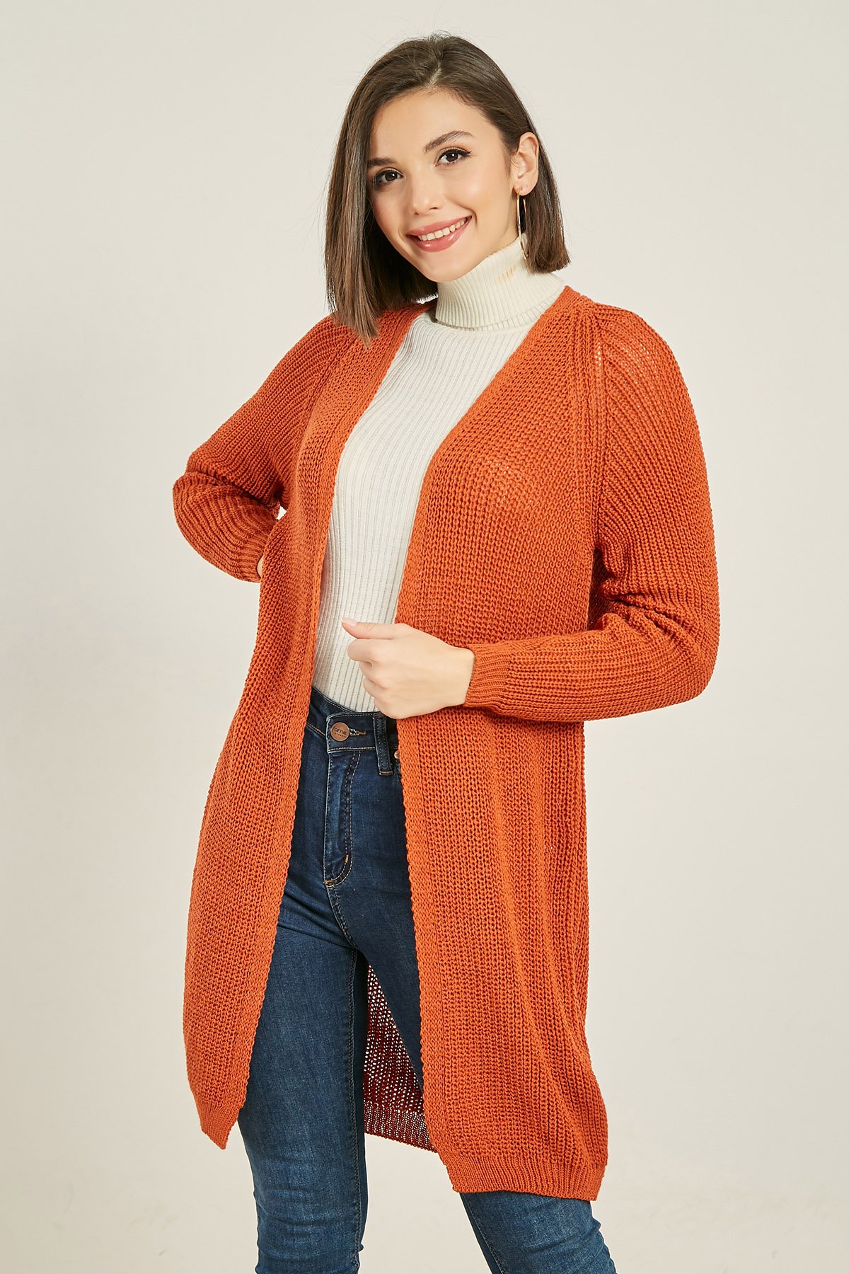 Düz yaka, mısır örgü detaylı, manşetleri ve eteği lastik örgülü, uzun kol, yumuşacık rahat kalıp hırka.