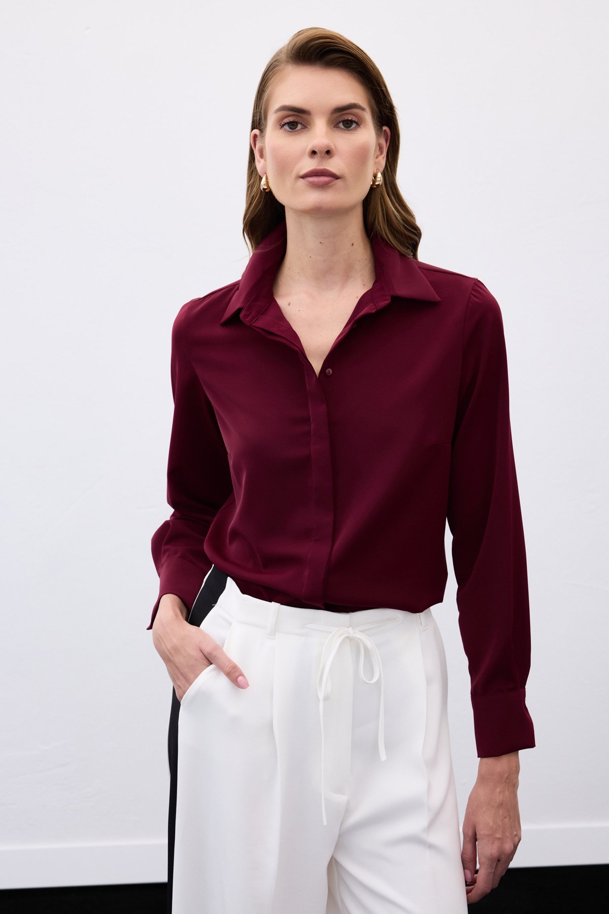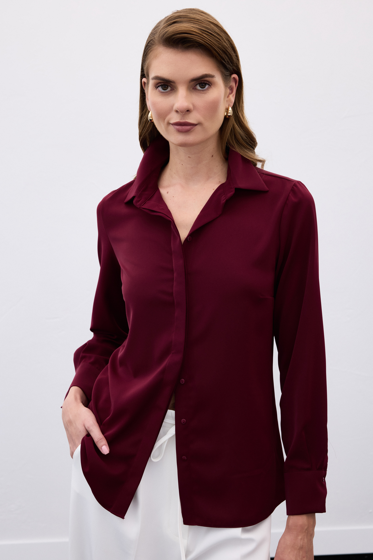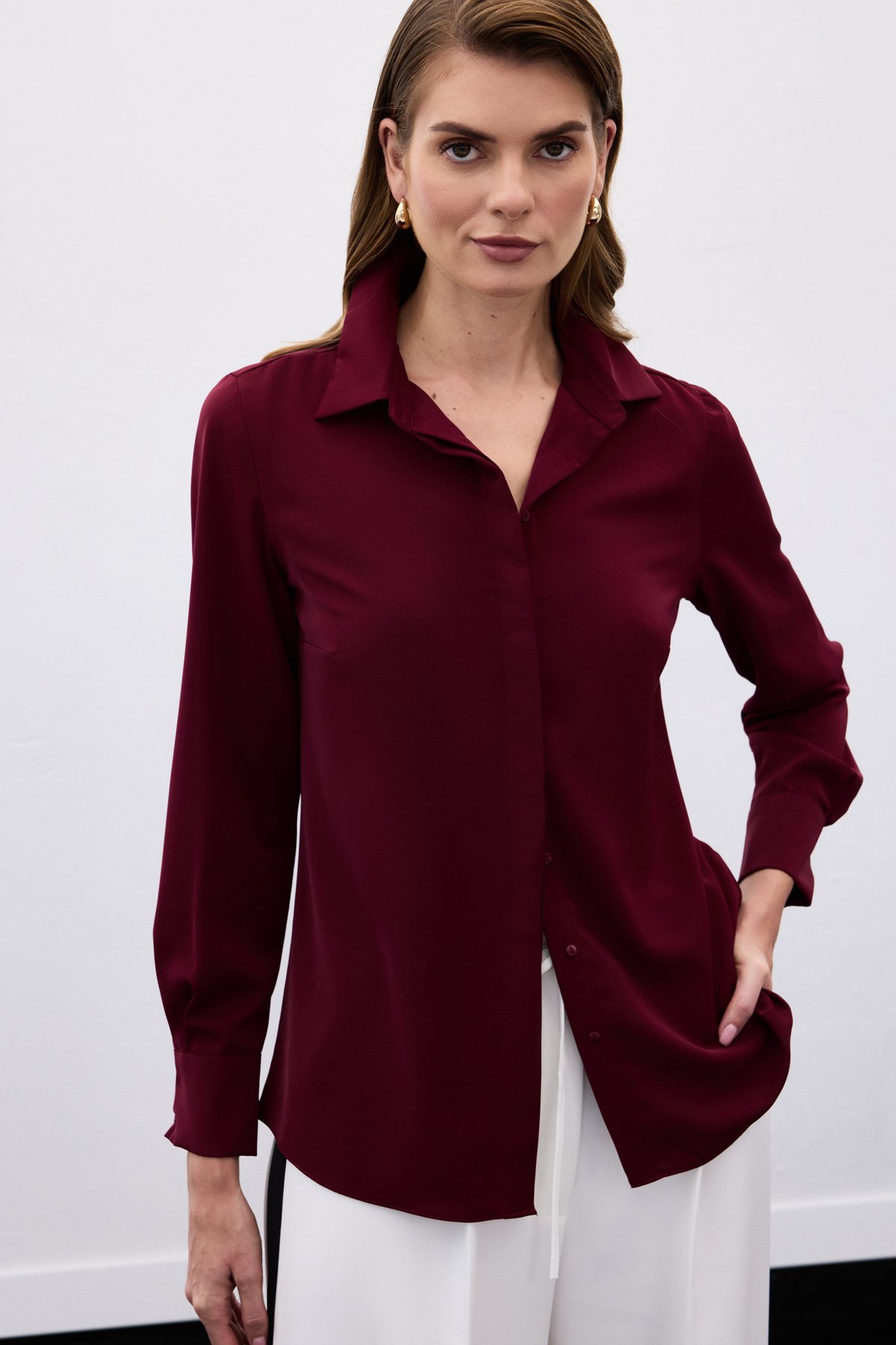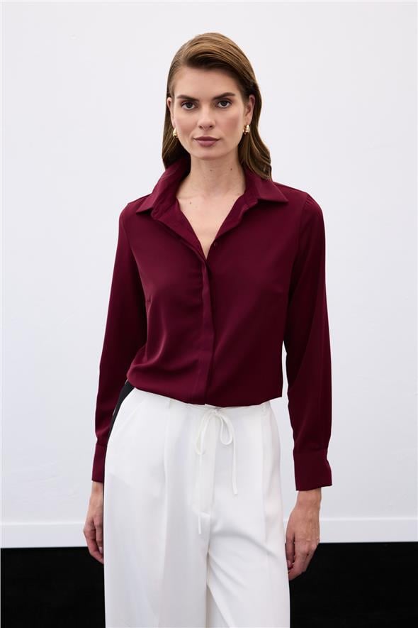Klasik Düz Gömlek - Bordo