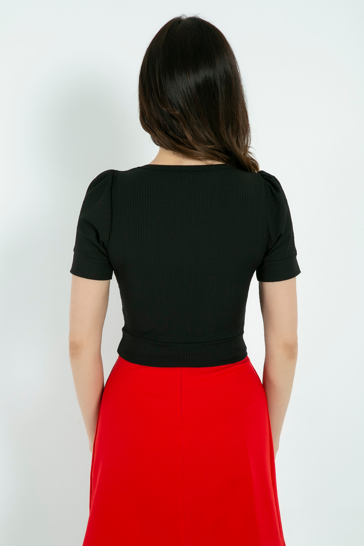 %95 Viskon %5 Likra *V Yaka *Kısa Kol*Ön Lastikli*Crop Bluz *Tam Kalıp*Boy Uzunluğu:38 cmNumune Bedeni: 36/S/1Modelin Ölçüleri :Boy:1,72, Göğüs:84, Bel:60, Kalça:90