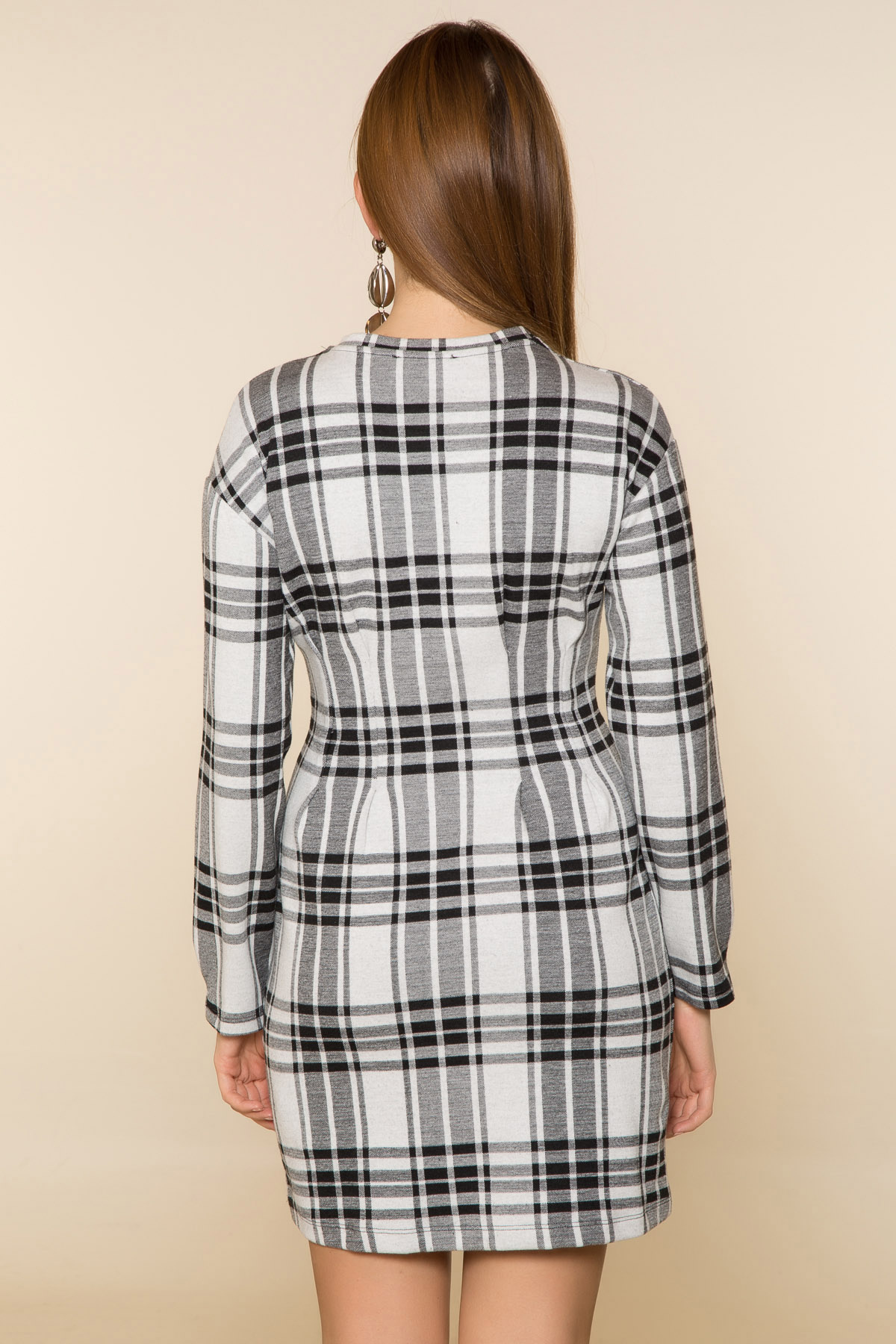 %75 Polyester %23 Viskon %2 Likra *Mini Boy*Bisiklet Yaka *Uzun Kol *Ekose Desenli*Astarsız *Rahat Kalıp*Boy Uzunluğu:87 cmNumune Bedeni: 36/S/1Modelin Ölçüleri : Boy:1,77, Göğüs:88, Bel:64, Kalça:89