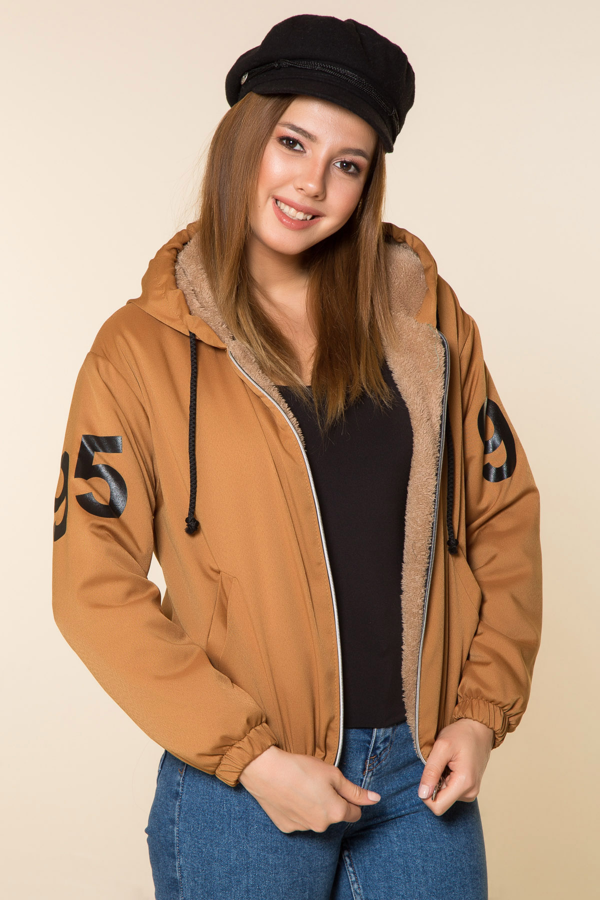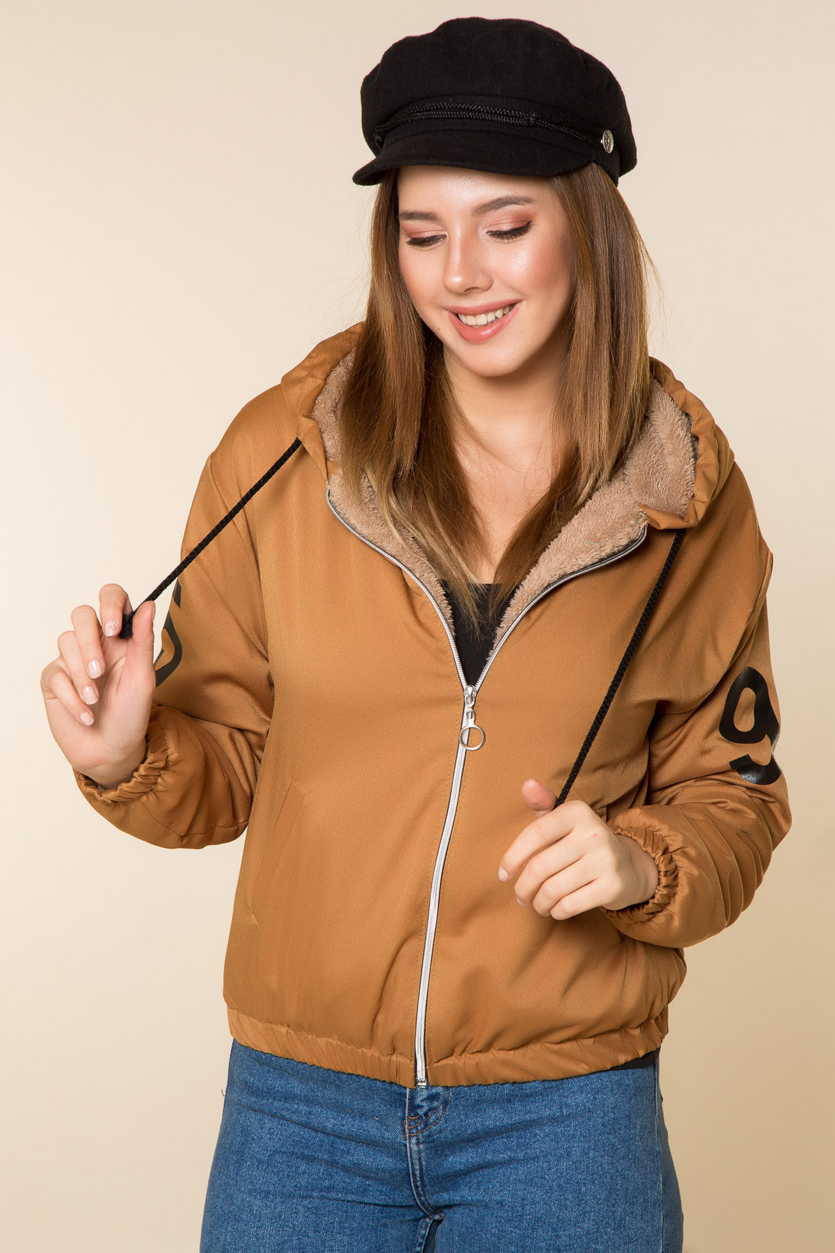 %100 Polyester *Birleşik Kapüşonlu*Uzun Kol *Kol-Etek Ucu Lastikli*Cepli*Baskılı*Ön Fermuarlı*İçi Peluş*Boy Uzunluğu:55 cm Numune Bedeni: 36/S/1Modelin Ölçüleri : Boy:1,77, Göğüs:88, Bel:64, Kalça:89
