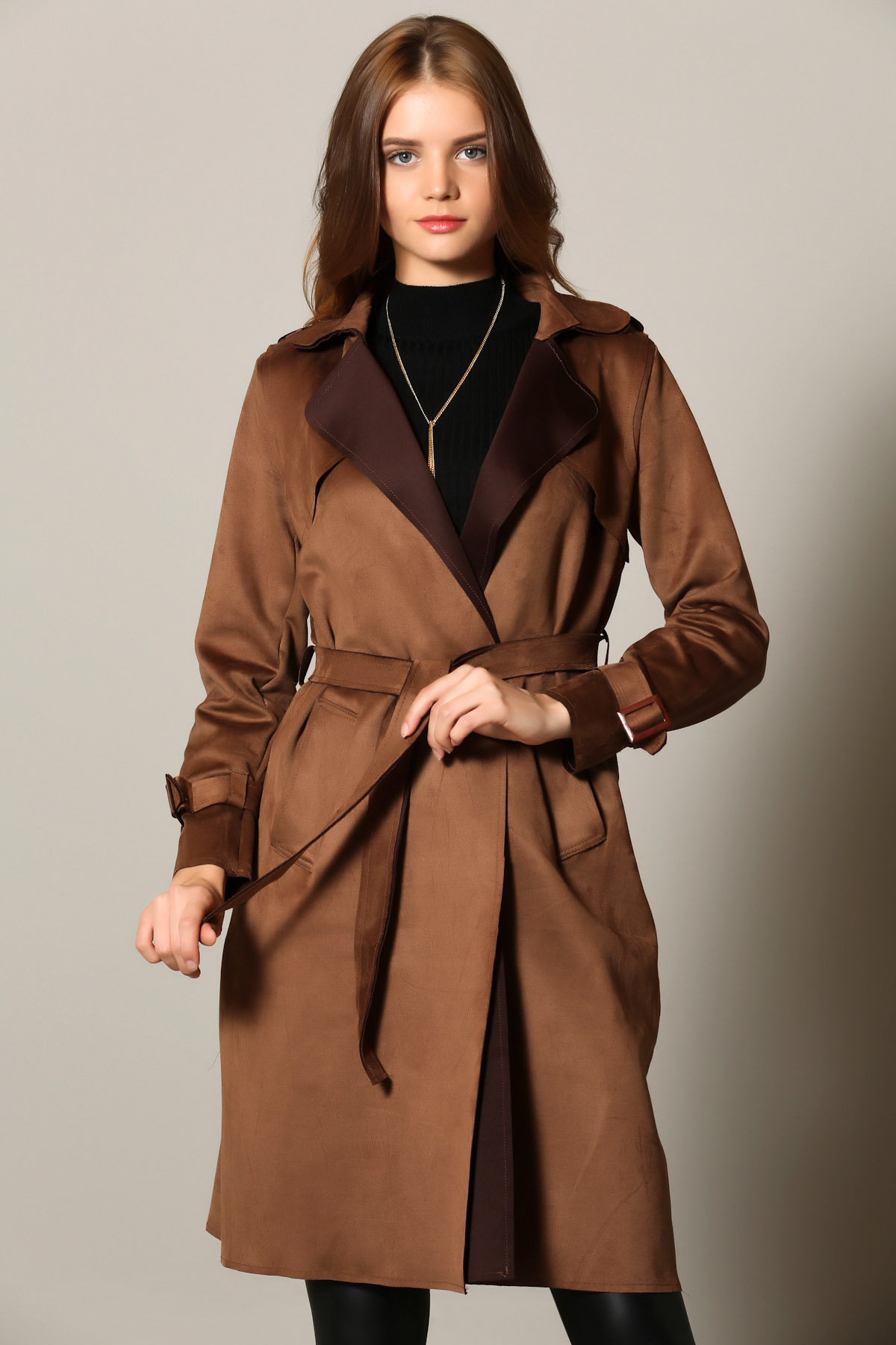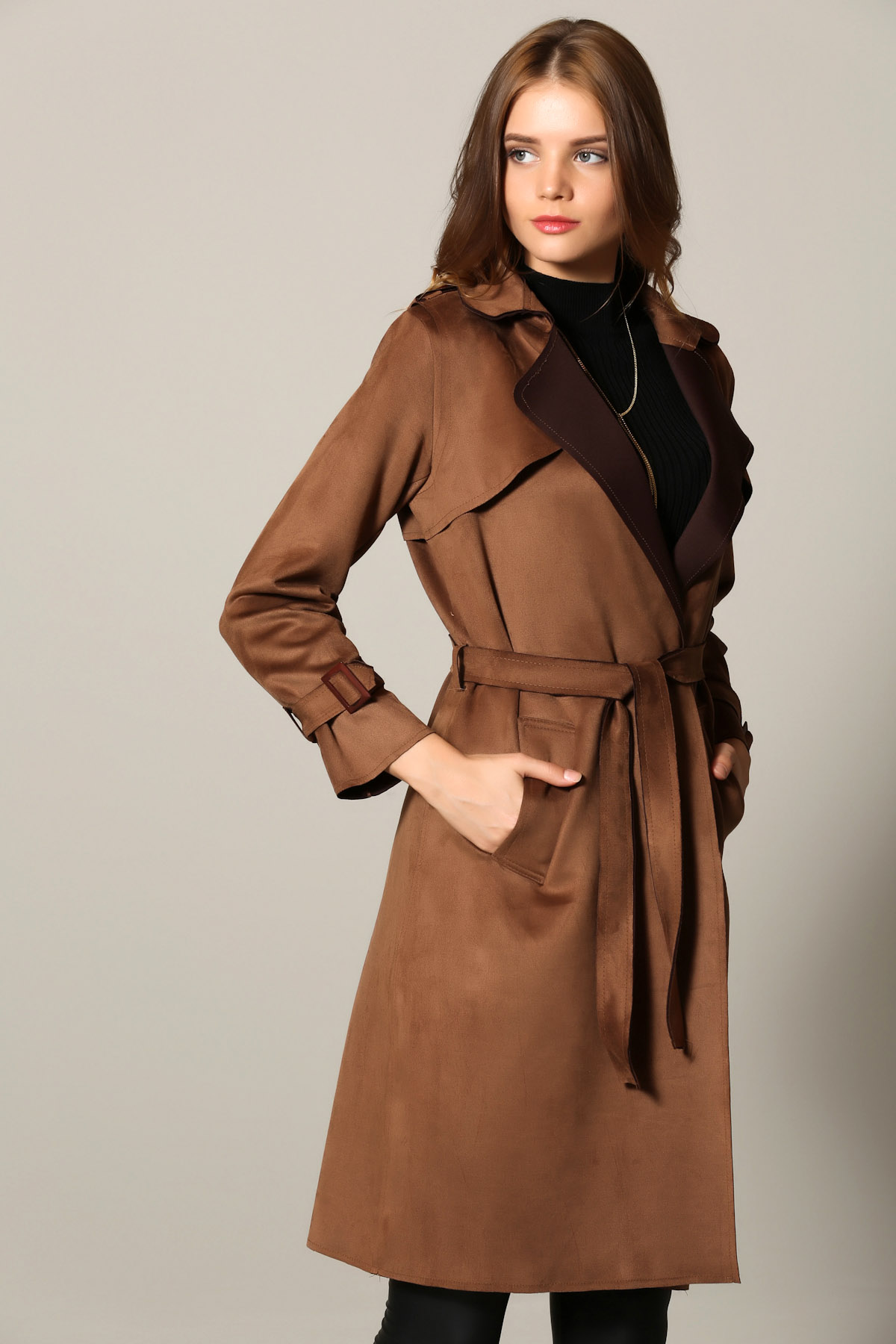 %70 Polyester %20 Pamuk %10 Likra*Süet*Uzun Kol*Belden Bağlamalı*Çift Cepli*Astarsız*Boy Uzunluğu:98 cmNumune Bedeni: 36/S/1Modelin Ölçüleri : Boy:1,75, Göğüs:86, Bel:61, Kalça:91