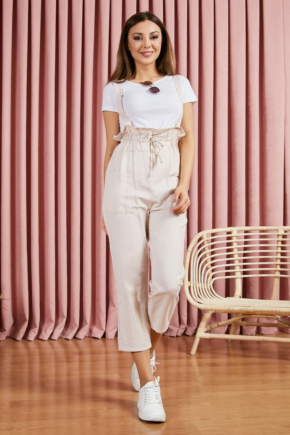 Üst: Bisiklet yaka, kısa kol, rahat kalıp t-shirt.Alt: Kalın askılı, beli büzgü ipli, çift cepli, rahat kalıp tulum.%65 Pamuk %35 PolyesterBoy Uzunluğu: 128 cmModelin Üzerindeki Ürün 36/S Bedendir.Modelin Ölçüleri :Boy:1,74, Göğüs:89, Bel:59, Kalça:93