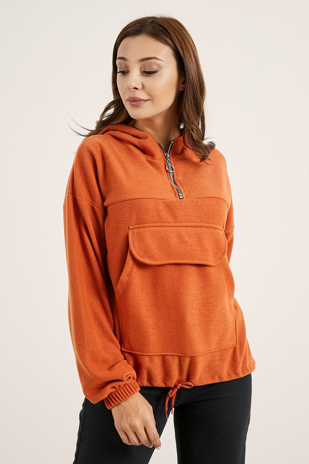 *Birleşik Kapüşonlu *Yaka Yarım Fermuarlı *Cepli *Uzun Kol Ucu Lastikli *Etek Ucu Büzgülü *Rahat Kalıp %60 Pamuk %40 Polyester *Boy Uzunluğu: 58 cm Numune Bedeni: 36/S/1 Modelin Ölçüleri :Boy:1,74, Göğüs:89, Bel:59, Kalça:93