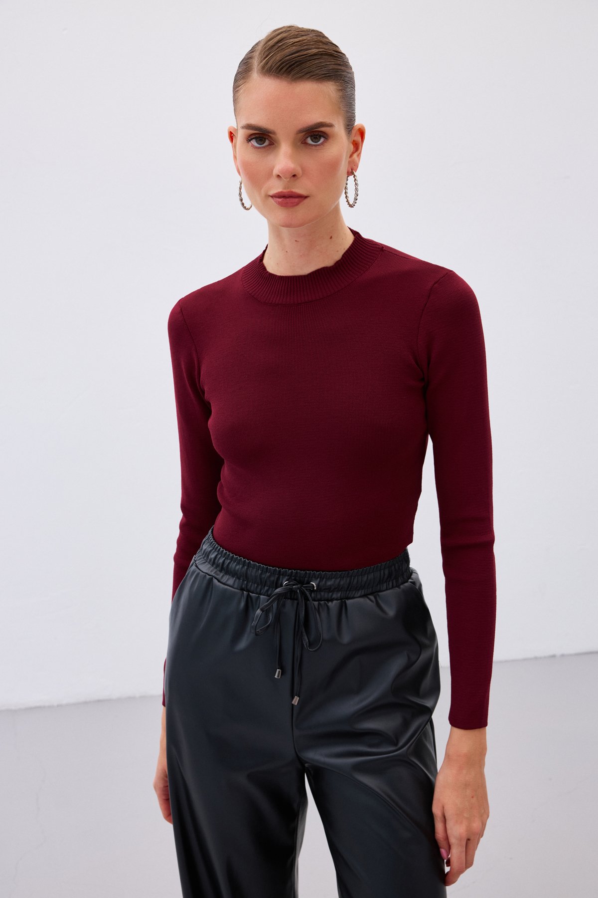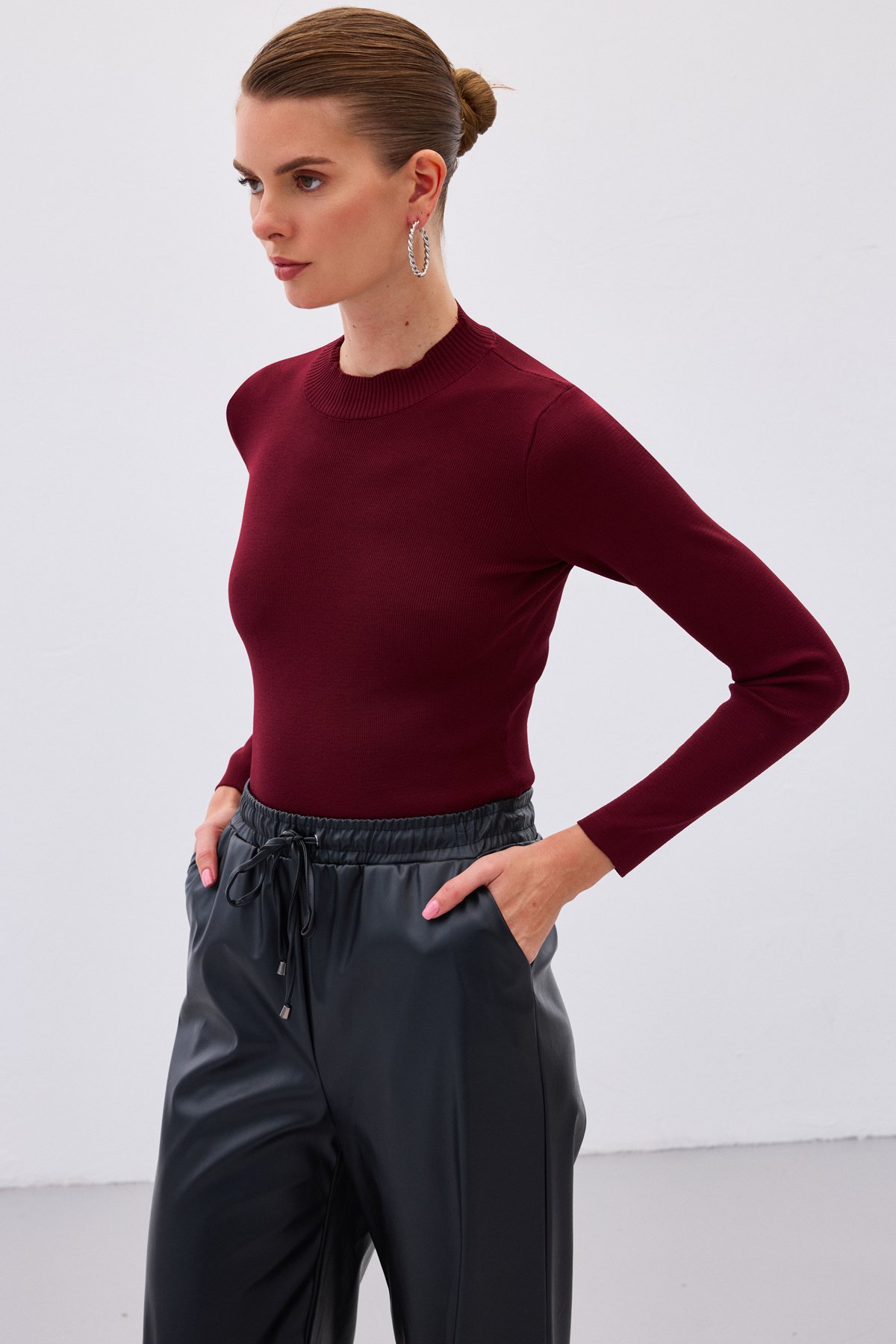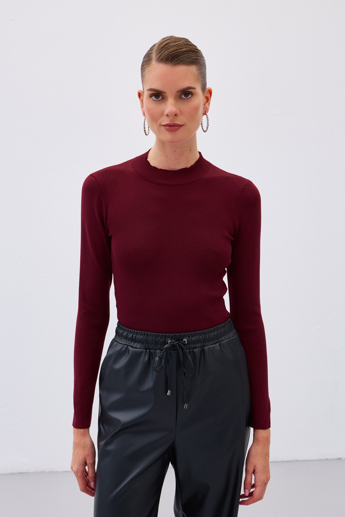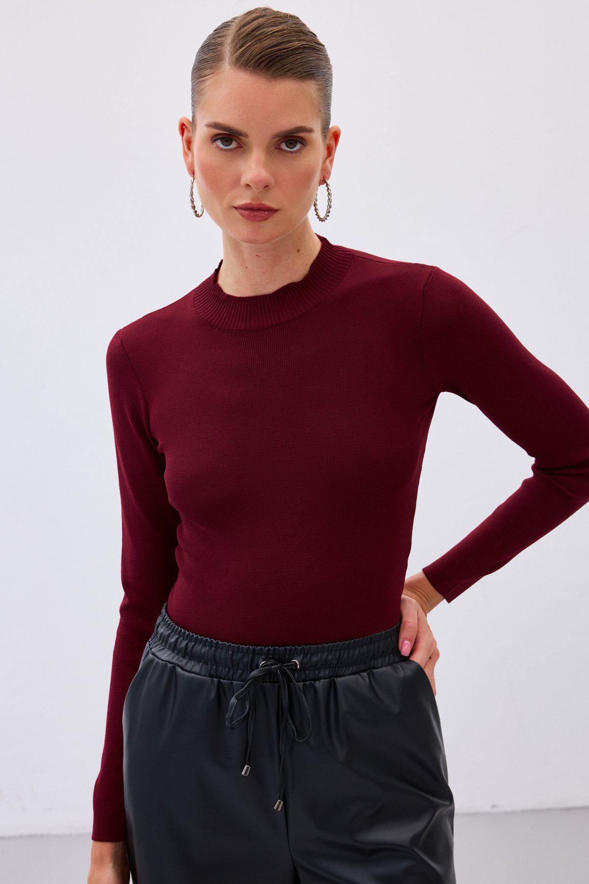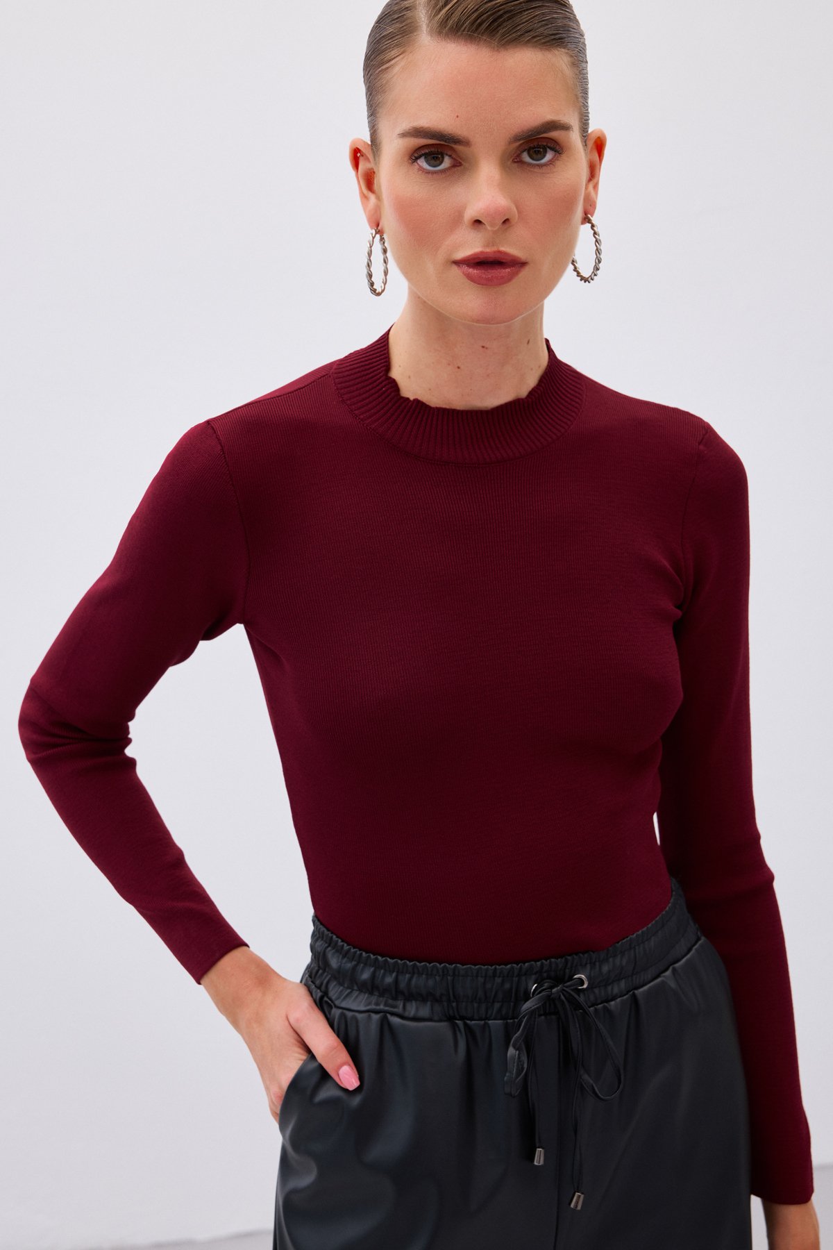 Yarım Balıkçı Triko Bluz - Bordo