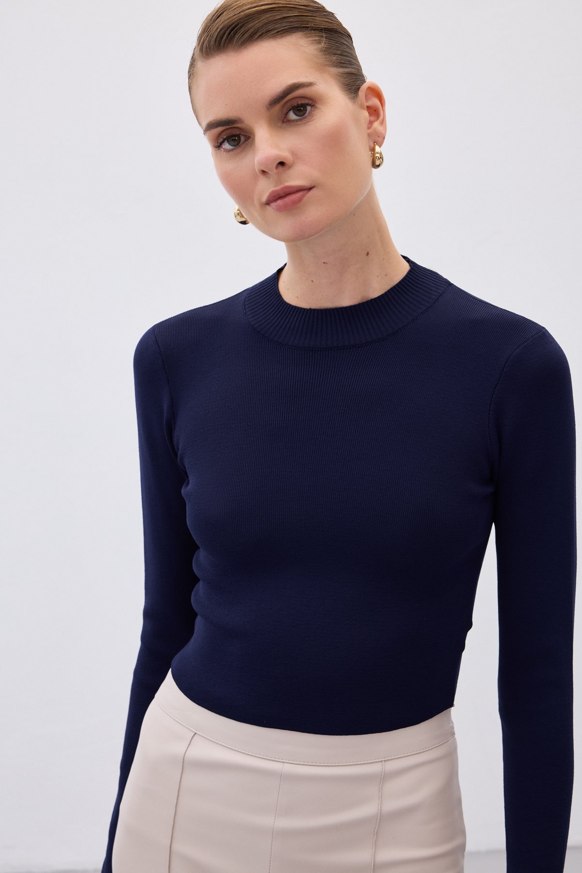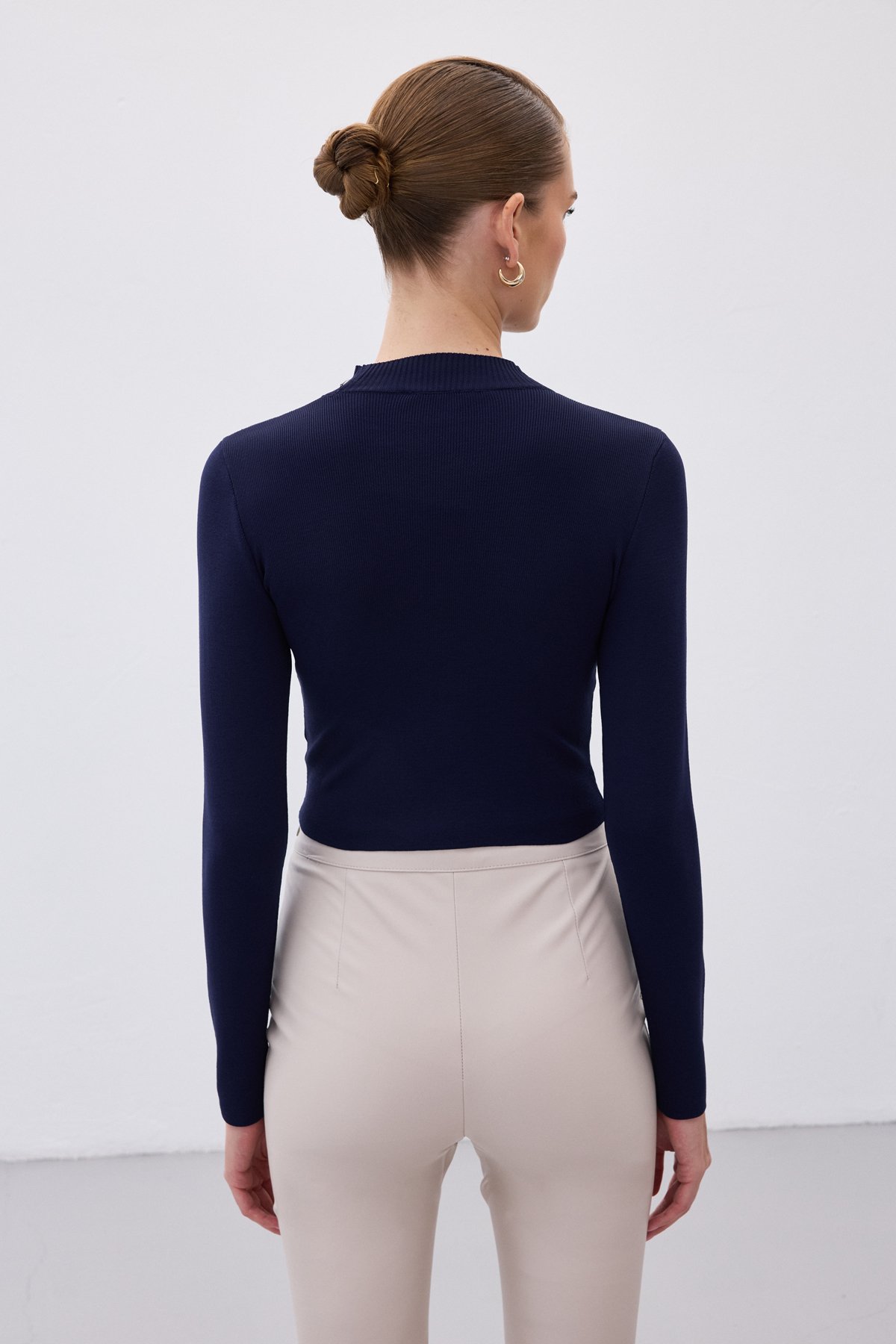 Yarım Balıkçı Triko Bluz - Lacivert