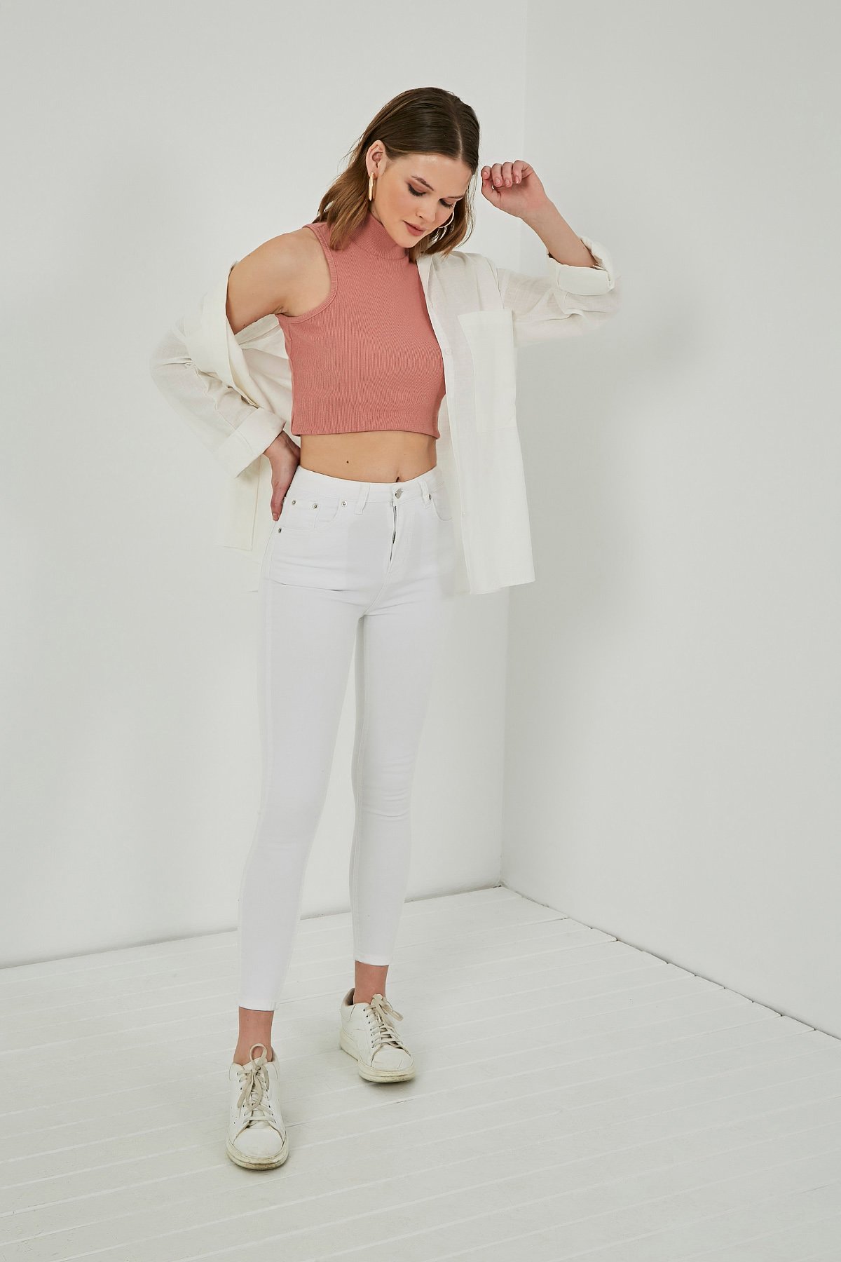 Yüksek bel, çift cepli, dar paça pantolon%95 Pamuk %5 LikraBoy Uzunluğu: 92 cmModelin Üzerindeki Ürün 36/S Bedendir.Modelin Ölçüleri :Boy:1,76, Göğüs:87, Bel:62, Kalça:92