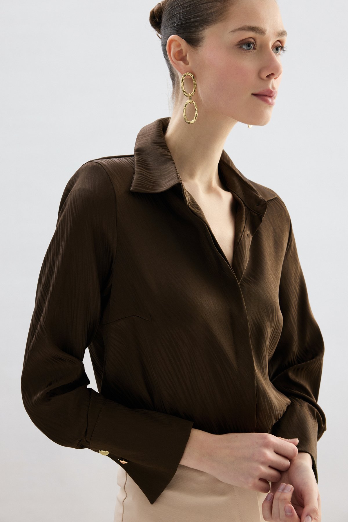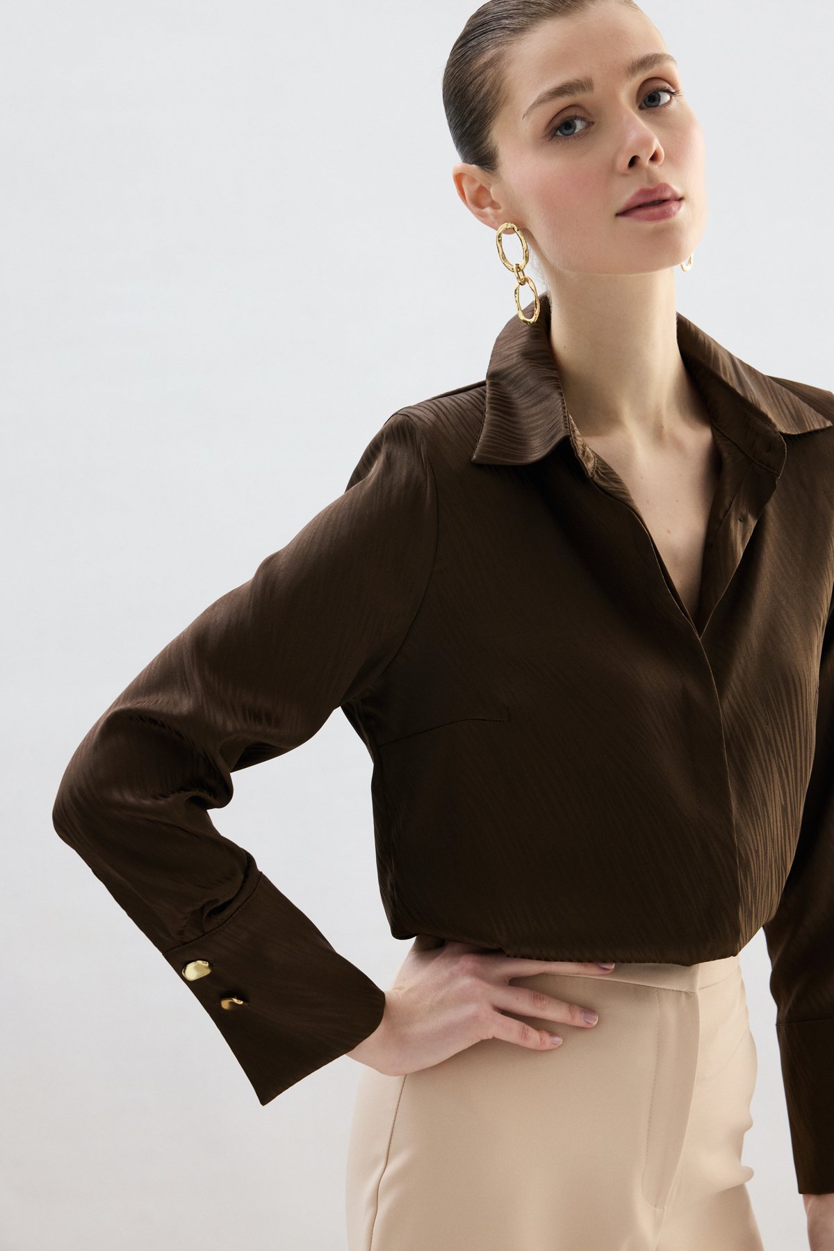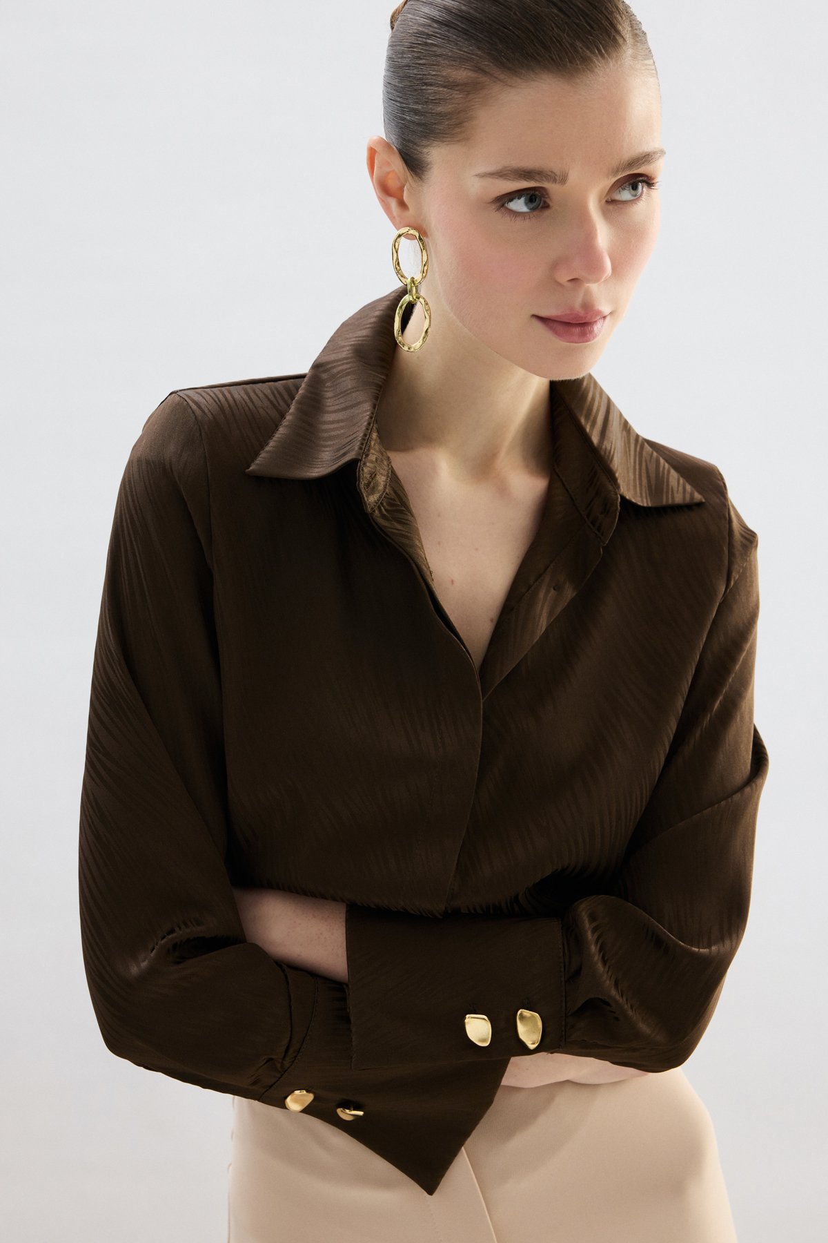 Zebra Desenli Gömlek - Kahve
